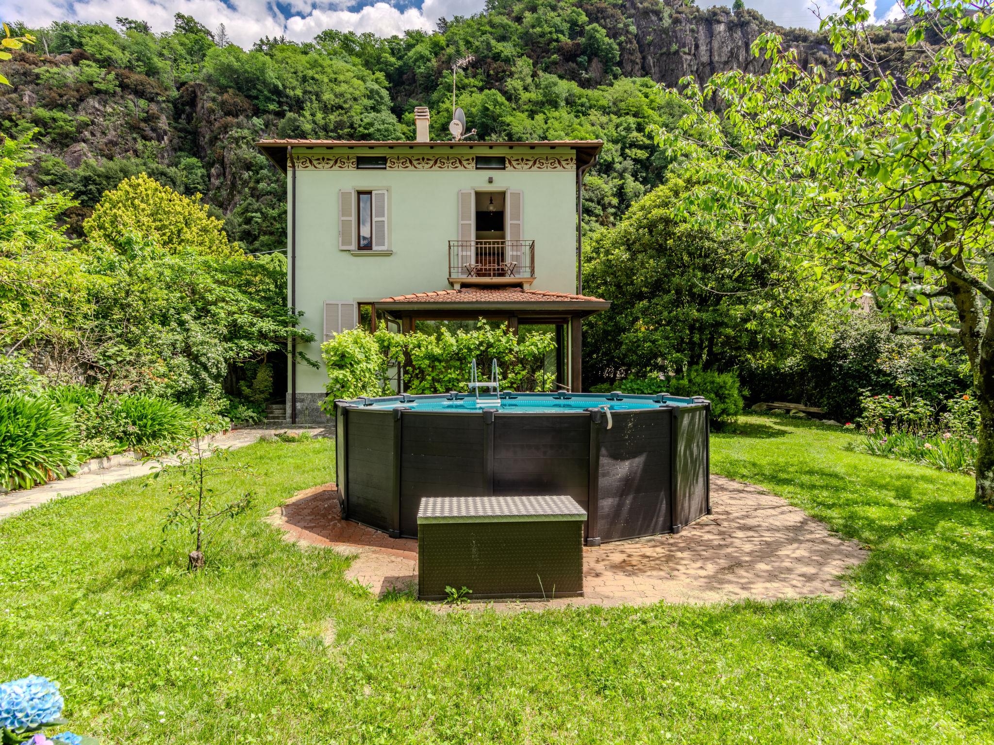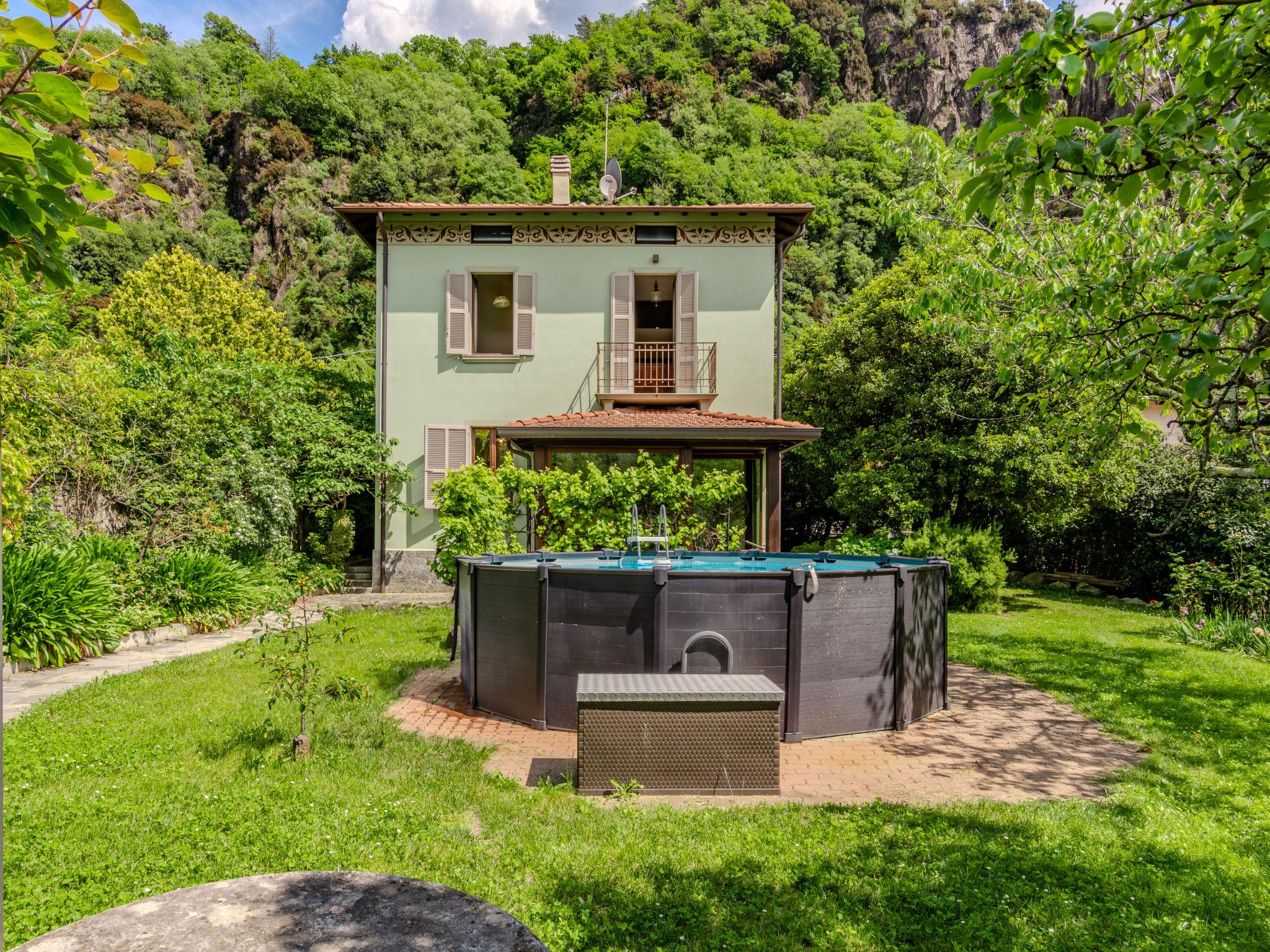 Comfortable, historical house "La Rina", 3 storeys. In the resort Dervio, 9 km from the centre of Varenna, 30 km from the centre of Lecco, 900 m from the lake. Private: property 1'000 m2 (fenced), beautiful garden to relax, swimming pool (above ground) round (4 m diameter, depth 160 cm, seasonal availability: 01.May. - 15.Oct.). Outdoor shower, pool house with fridge and cooking stove, barbecue, pool maintenance by the owner/gardener. In the house: storage room for bicycles, washing machine. Linen change (suppl. charge extra). Towel change (suppl. charge extra). Room cleaning on request (extra). Parking (for 3 cars). Shop 150 m, grocery 180 m, supermarket 400 m, restaurant 130 m, bar, bakery 450 m, 5 minute walk to the centre, bus stop 300 m, grass beach "Dervio" 850 m. Marina 1 km, surf school, sailing school 800 m, walking paths from the house 10 m, children's playground 900 m. Nearby attractions: Torre di Orezia 1 km, Corenno Plinio 3 km, Orrido di Bellano 4 km, Menaggio 13 km. Well-known ski regions can easily be reached: Madesimo 57 km, Chiesa in Valmalenco 65 km, St. Moritz 80 km. Well-known lakes can easily be reached: Lago di Mezzola. Hiking paths: Monti di Dervio e Muggiasca, Sentiero del Viandante, Sentieri Valvarrone. Groups of teenagers on request only.
