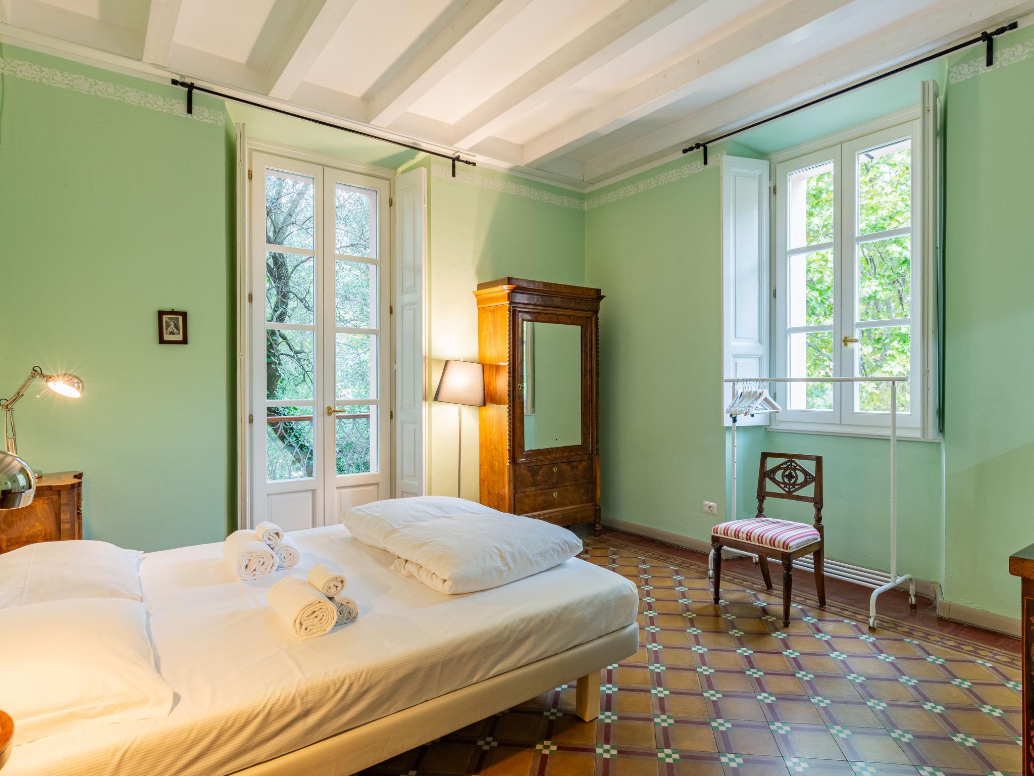 Comfortable villa "Eugenia", 3 storeys, from the 19th century, renovated in 2015. In the resort Dervio, 9 km from the centre of Varenna, 30 km from the centre of Lecco, in a central position, 700 m from the lake, in a cul-de-sac. Private: park 2'500 m2 (fenced), natural garden, meadow, swimming pool (4 x 10 m, depth 140 cm, seasonal availability: 15.May. - 15.Oct.). Pool maintenance by the owner/gardener. Linen change (suppl. charge extra). Room cleaning on request (extra). Parking (for 5 cars). Shop 150 m, supermarket 110 m, restaurant 240 m, bar, bakery 100 m, bus stop 270 m, railway station 450 m, ferry 700 m, pebble beach "Dervio" 600 m. Marina 1 km, surf school 600 m, sailing school 800 m, children's playground 600 m. Nearby attractions: Torre di Orezia 1 km, Corenno Plinio 3 km, Orrido di Bellano 4 km, Menaggio 13 km. Well-known ski regions can easily be reached: Madesimo 57 km, Chiesa in Valmalenco 65 km, St. Moritz 80 km. Well-known lakes can easily be reached: Lago di Mezzola. Hiking paths: Monti di Dervio e Muggiasca, Sentiero del Viandante, Sentieri Valvarrone. The owner does not accept any youth groups. Please note: railway line 50 m from the property.