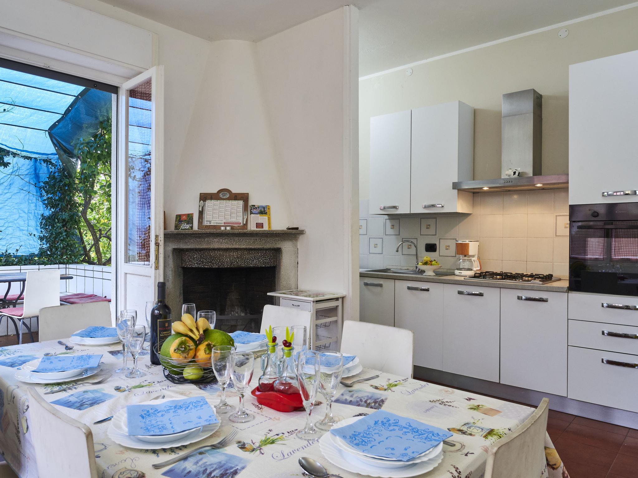 8-room house 200 m2 on 2 levels. Comfortable and cosy furnishings: living room with satellite TV. 1 room with 1 french bed (160 cm). 1 room with 1 x 2 bunk beds. Interconnecting room with 1 french bed (160 cm). 1 room with 1 x 2 bunk beds, shower/WC. Open kitchen (oven, dishwasher, 4 gas rings, toaster, kettle, microwave, freezer, electric coffee machine) with open-hearth fireplace (only for decoration), dining table. Exit to the terrace. Shower/WC. Upper floor: (exterior staircase) living room with sloping ceilings with dining table and satellite TV. Exit to the terrace. 1 room with sloping ceilings with 1 french bed (160 cm). 1 room with sloping ceilings with 1 bed and 1 pull-out bed. Open kitchen (oven, dishwasher, 4 gas rings, freezer, electric coffee machine). Shower/WC. Gas heating. Parquet floors. Small terrace 12 m2 partly roofed, large terrace 30 m2. Terrace furniture, deck chairs (5), box-room. Facilities: washing machine, iron, children's high chair, baby cot for up to 2 year olds. Internet (WiFi, extra). Please note: non-smokers only. Maximum 2 pets/ dogs allowed. No internal connecting door between the floors. IT097030C2KRJUCCQT