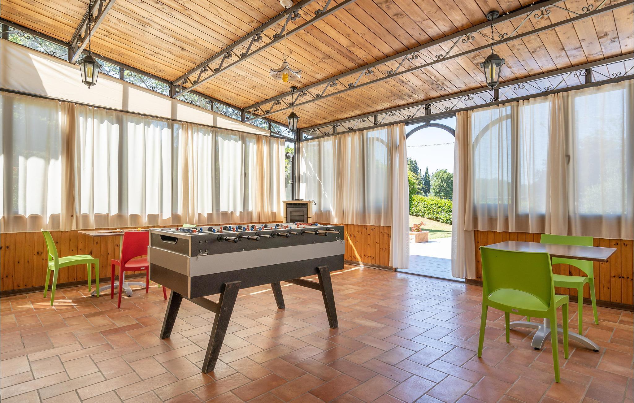 Cirka otte km fra Dicomarco ligger dette feriehus med privat saltvandspool, i en romantisk daludløber i Mugello, i udkanten af en lille landsby. Fra forhaven og terrassen er der adgang til køkkenalrummet, som de forskellige soveværelser og badeværelser er ligger op ad. I stueetagen står der en taverne med bordfodbold til rådighed for jer. Ovenfor huset findes det solrige poolområde med liggestole og parasoller med skøn udsigt til kirken og den smukke dal. Huset er velegnet til feriegæster der gerne opholder sig i det fri og gerne vil kombinere afslapning og aktiviteter i ferien. På grunden er der børnelegeplads, bordtennis og på lidt større afstand en hel bane til boldspil. Også forskellige vandre- og cykelstier gennemskærer naturparken ved Monte Falterona. Den venlige husejer bor i huset ved siden af og står gerne til rådighed med gode udflugtsideer. Som supplement til de mange aktiviteter på grunden kan en afslappende dag ved poolen eller en udflugt til Firenze anbefales. Firenze kan nås via Mugello-banen, som afgår fra landsbyen Dicomano. Barneseng ved forespørgsel.
