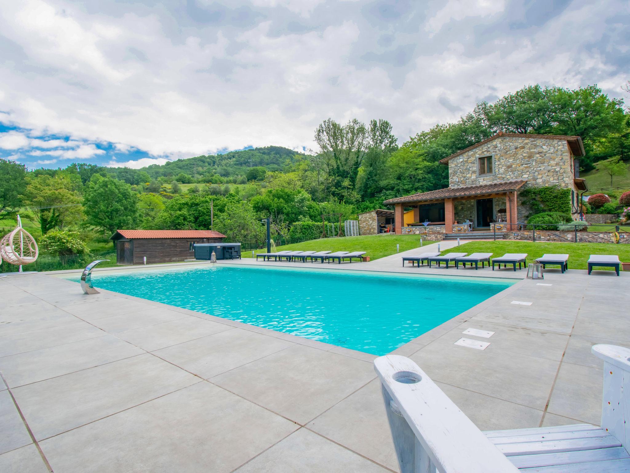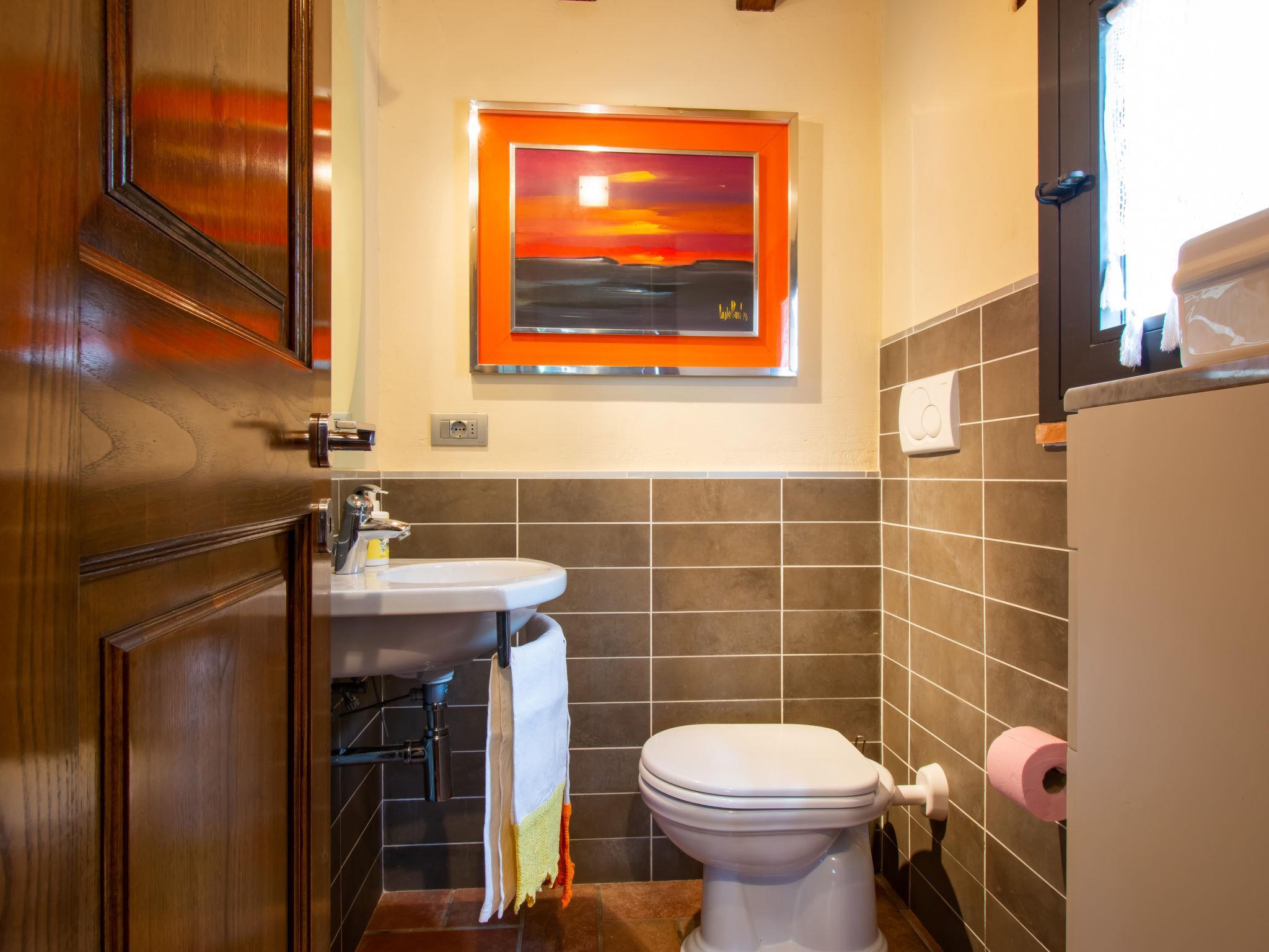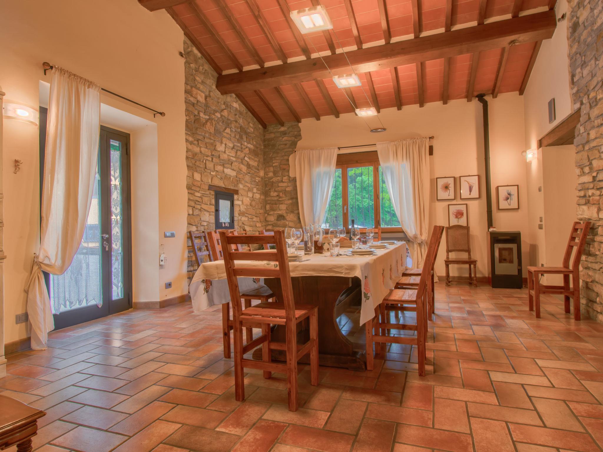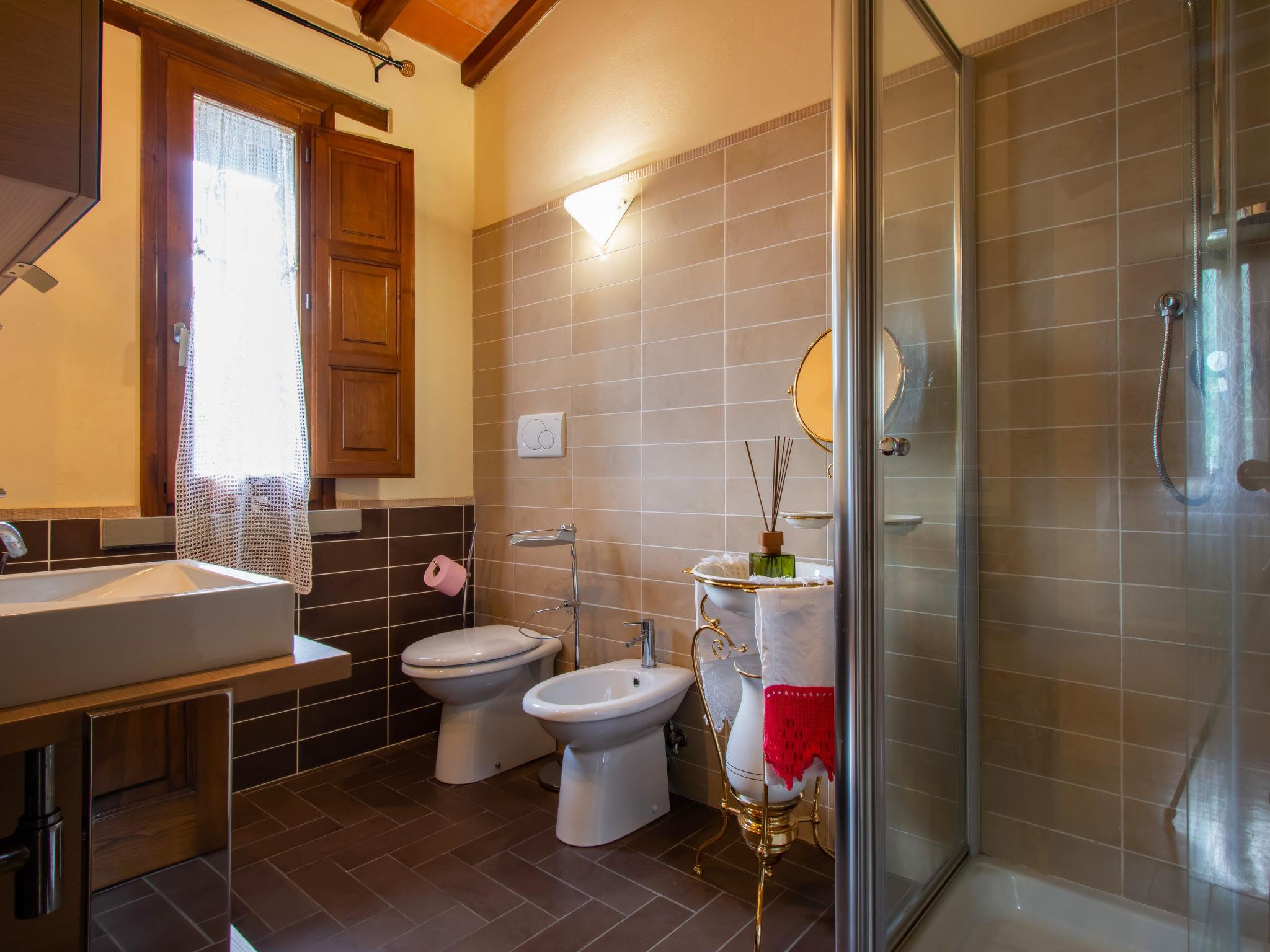 Cosy, comfortable farmhouse "La Ginepraia", 162 m a.s.l., 3 storeys, detached, built in 2006, surrounded by trees and meadows. Outside the resort, 500 m from the centre of Dicomano, in a quiet, sunny position, in the countryside. Private: property 4 ha (fenced), wildlife garden and flowers, natural garden 500 m2 (fenced), swimming pool (12 x 6 m, depth 140 - 140 cm, seasonal availability: 01.May. - 30.Sep.) with salt water. Outdoor shower, hot tub, garden furniture, barbecue, pool maintenance by the owner/gardener. In the house: fitness room. Parking (for 6 cars). Grocery 500 m, supermarket 1 km, shopping centre 2 km, bar 500 m, bus stop 5 m, railway station "Dicomano" 500 m, bathing lake "Bilancino" 30 km. Nearby attractions: Firenze 40 km, Volterra 110 km, Siena 100 km. Please note: the owner lives on the same property.
