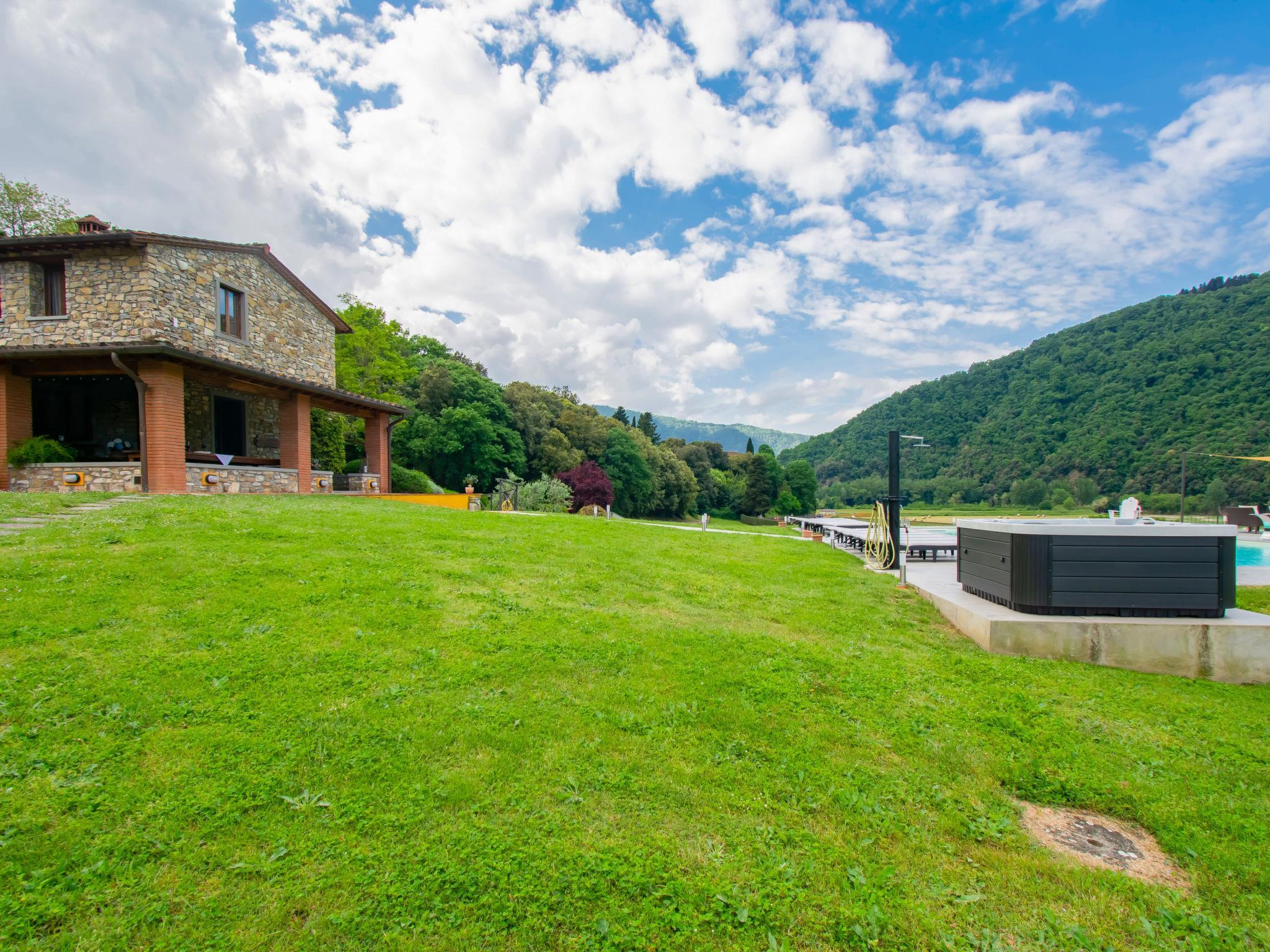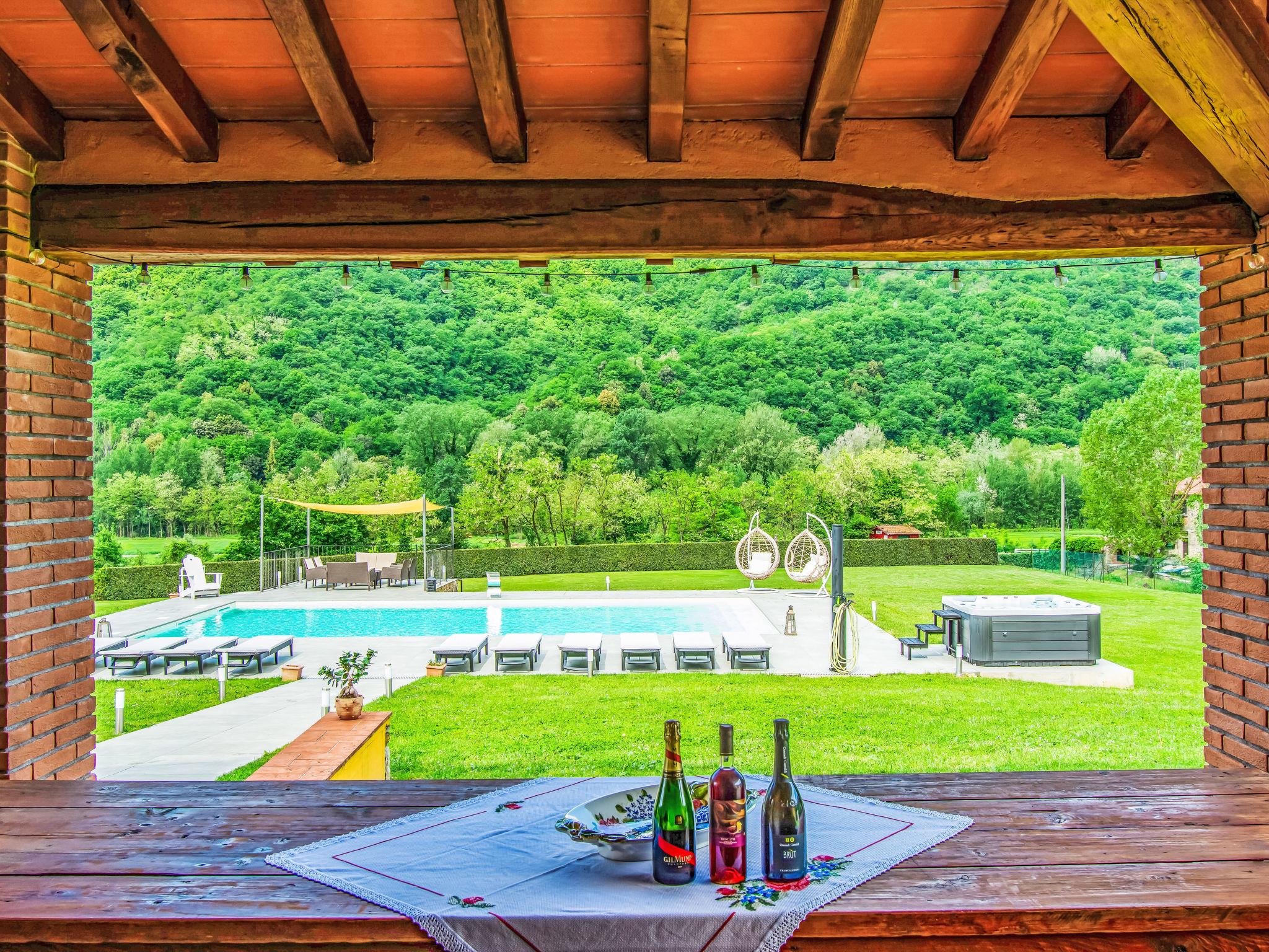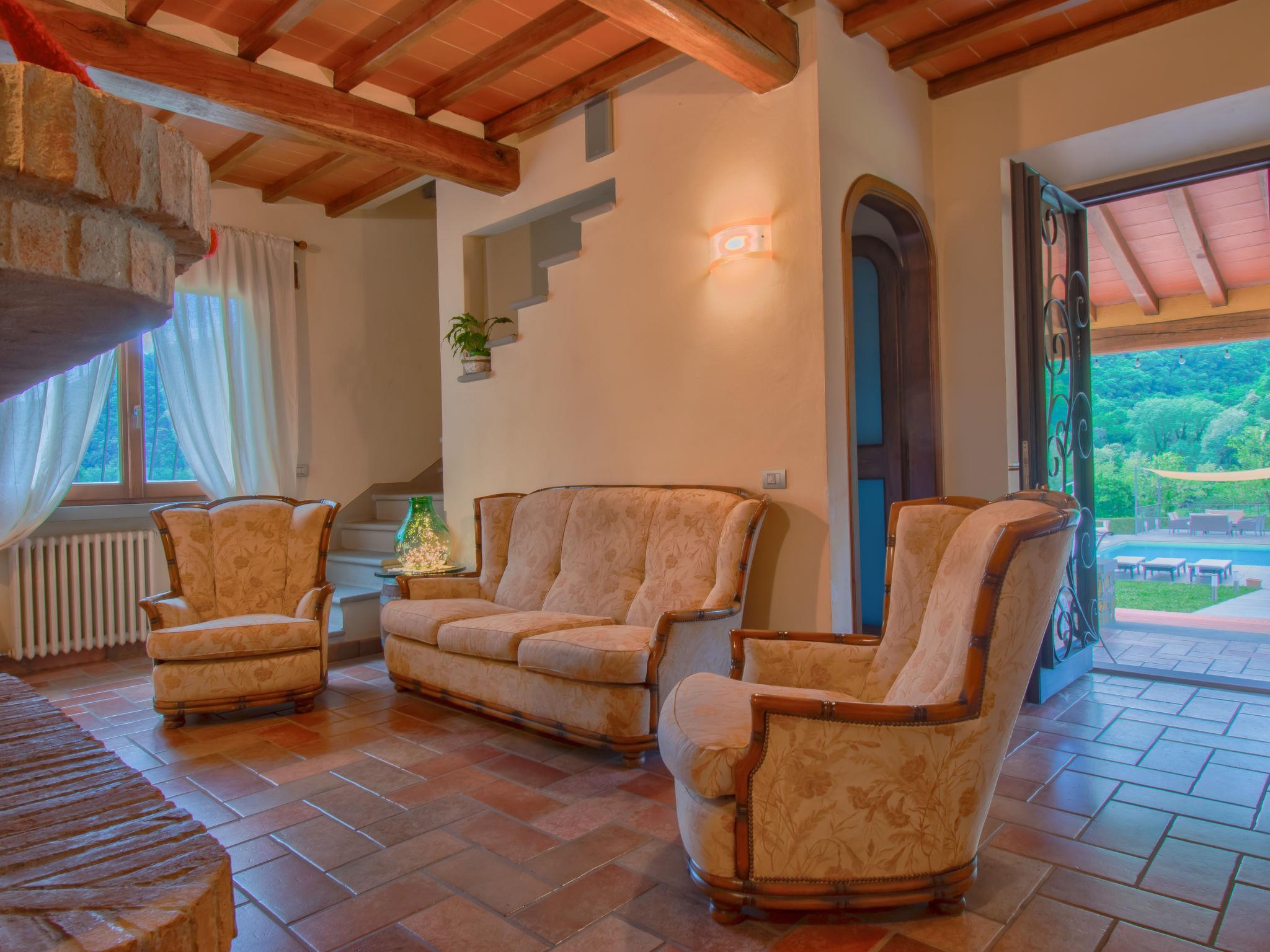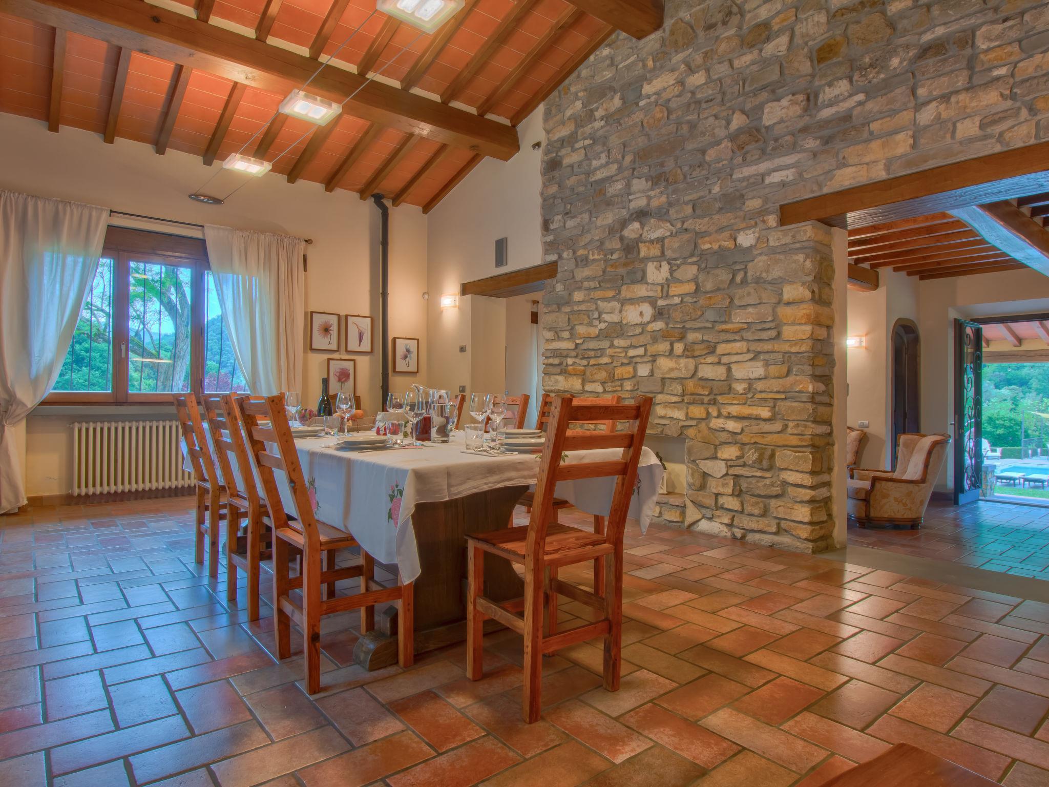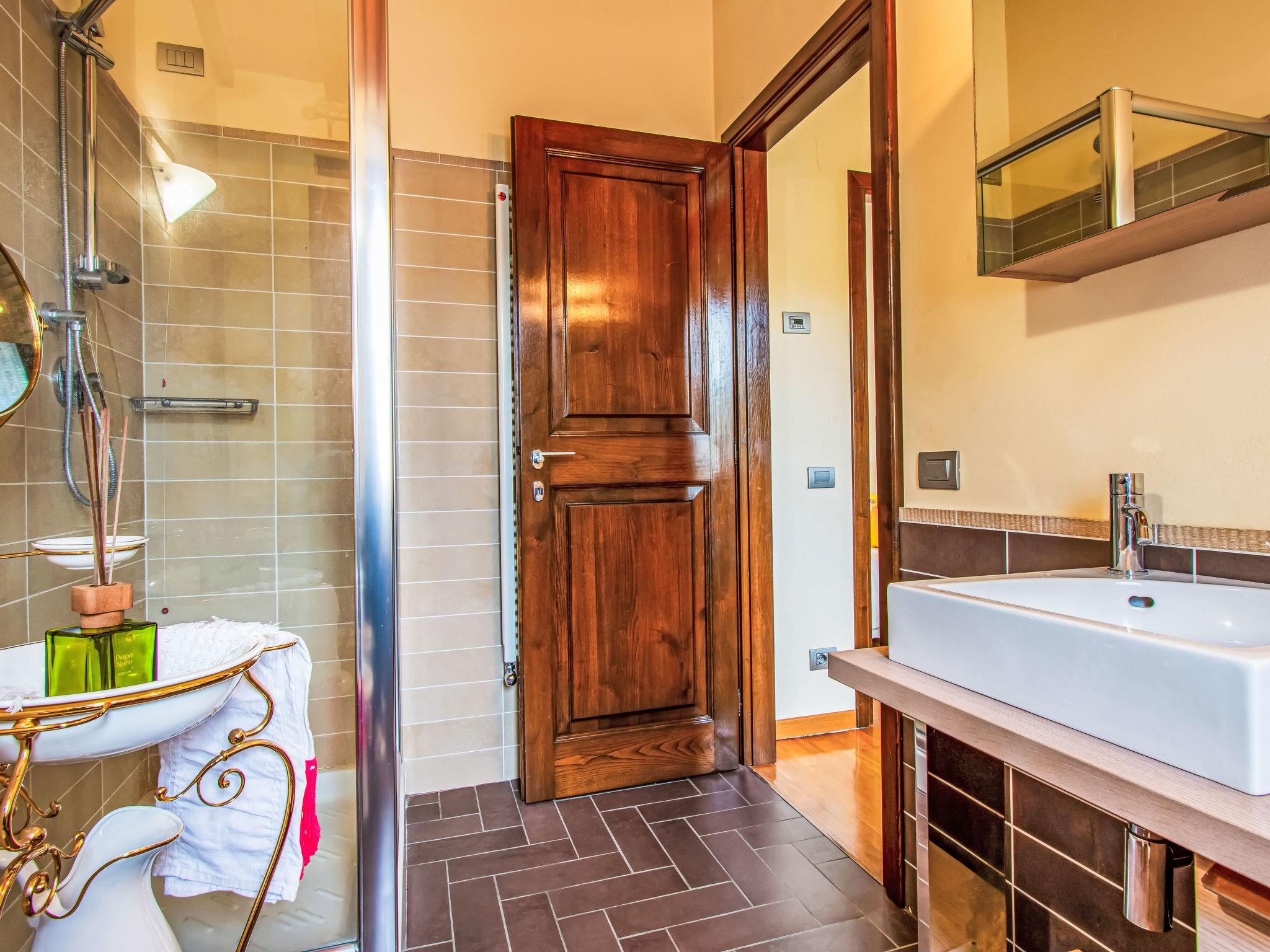 Cosy, comfortable farmhouse "La Ginepraia", 162 m a.s.l., 3 storeys, detached, built in 2006, surrounded by trees and meadows. Outside the resort, 500 m from the centre of Dicomano, in a quiet, sunny position, in the countryside. Private: property 4 ha (fenced), wildlife garden and flowers, natural garden 500 m2 (fenced), swimming pool (12 x 6 m, depth 140 - 140 cm, seasonal availability: 01.May. - 30.Sep.) with salt water. Outdoor shower, hot tub, garden furniture, barbecue, pool maintenance by the owner/gardener. In the house: fitness room. Parking (for 6 cars). Grocery 500 m, supermarket 1 km, shopping centre 2 km, bar 500 m, bus stop 5 m, railway station "Dicomano" 500 m, bathing lake "Bilancino" 30 km. Nearby attractions: Firenze 40 km, Volterra 110 km, Siena 100 km. Please note: the owner lives on the same property.