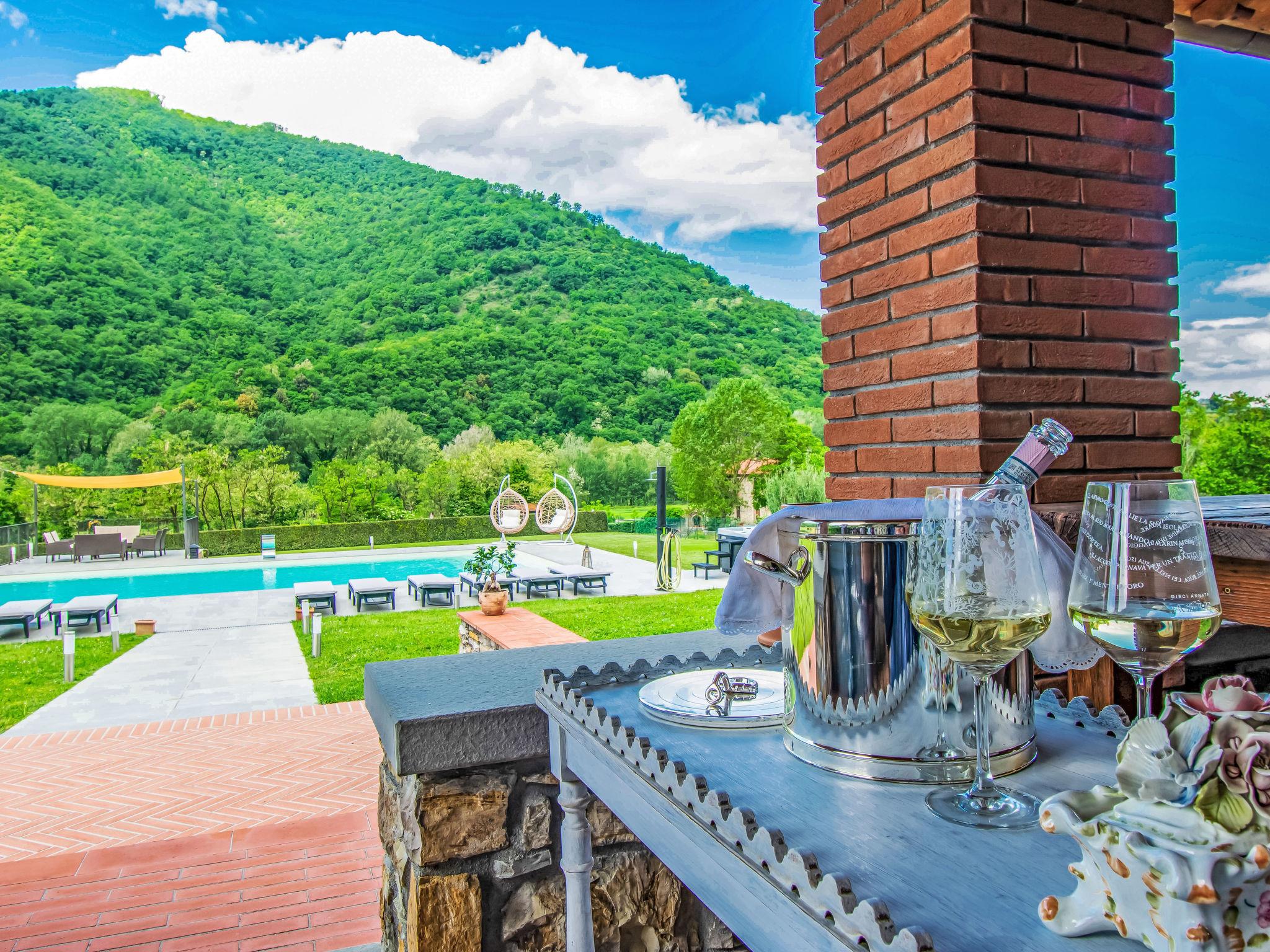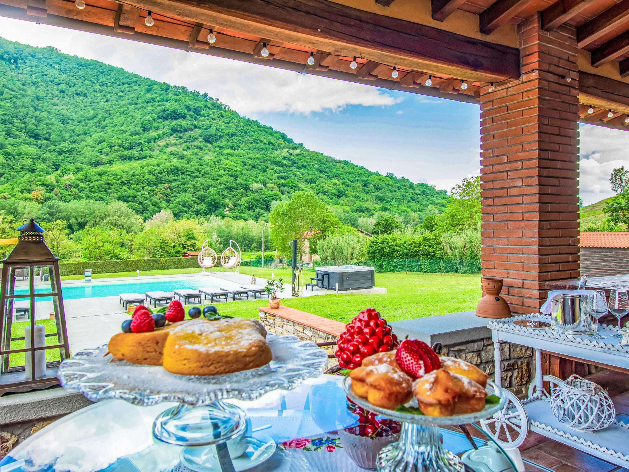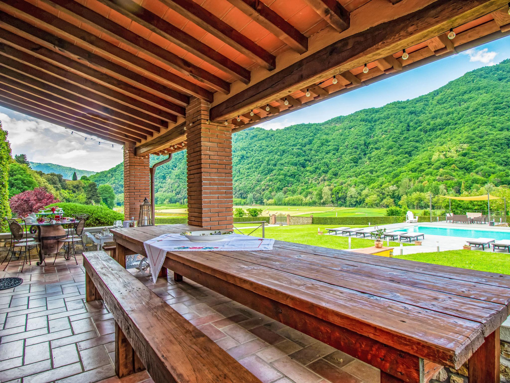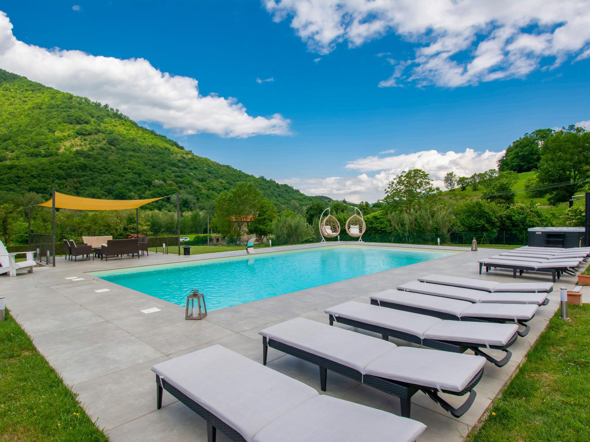 Cosy, comfortable farmhouse "La Ginepraia", 162 m a.s.l., 3 storeys, detached, built in 2006, surrounded by trees and meadows. Outside the resort, 500 m from the centre of Dicomano, in a quiet, sunny position, in the countryside. Private: property 4 ha (fenced), wildlife garden and flowers, natural garden 500 m2 (fenced), swimming pool (12 x 6 m, depth 140 - 140 cm, seasonal availability: 01.May. - 30.Sep.) with salt water. Outdoor shower, hot tub, garden furniture, barbecue, pool maintenance by the owner/gardener. In the house: fitness room. Parking (for 6 cars). Grocery 500 m, supermarket 1 km, shopping centre 2 km, bar 500 m, bus stop 5 m, railway station "Dicomano" 500 m, bathing lake "Bilancino" 30 km. Nearby attractions: Firenze 40 km, Volterra 110 km, Siena 100 km. Please note: the owner lives on the same property.
