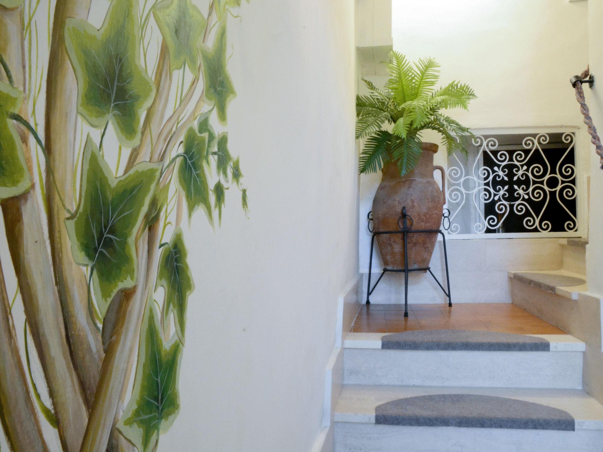 "Daniela (DOL295)", 4-room apartment 120 m2 on 2nd floor. Beautiful and cosy furnishings: living/sleeping room with veranda with 1 double sofabed, 2 folding beds, open-hearth fireplace, satellite TV and heating stove. 1 room with 1 french bed (160 cm). 1 room with 2 beds (80 cm). 1 room, window onto the courtyard with 1 bed (80 cm). Kitchen (oven, dishwasher, 4 gas rings, toaster, kettle, microwave, freezer, electric coffee machine, Capsules for coffee machine (SAECO)) with dining table. Exit to the terrace, to the veranda. Shower/WC. Heating. Terrace. Terrace furniture, barbecue (portable), deck chairs (2), conservatory. Beautiful panoramic view of the valley, the countryside and the ocean. Facilities: washing machine, iron, mosquito net, children's high chair, baby cot, hair dryer. Internet (WiFi, free). Maximum 2 small pets/ dogs allowed. Bed layout is flexible. There are more sleeping options available than the maximum number of people allowed which may, however, not be exceeded. IT008030C2VLX3KBK8