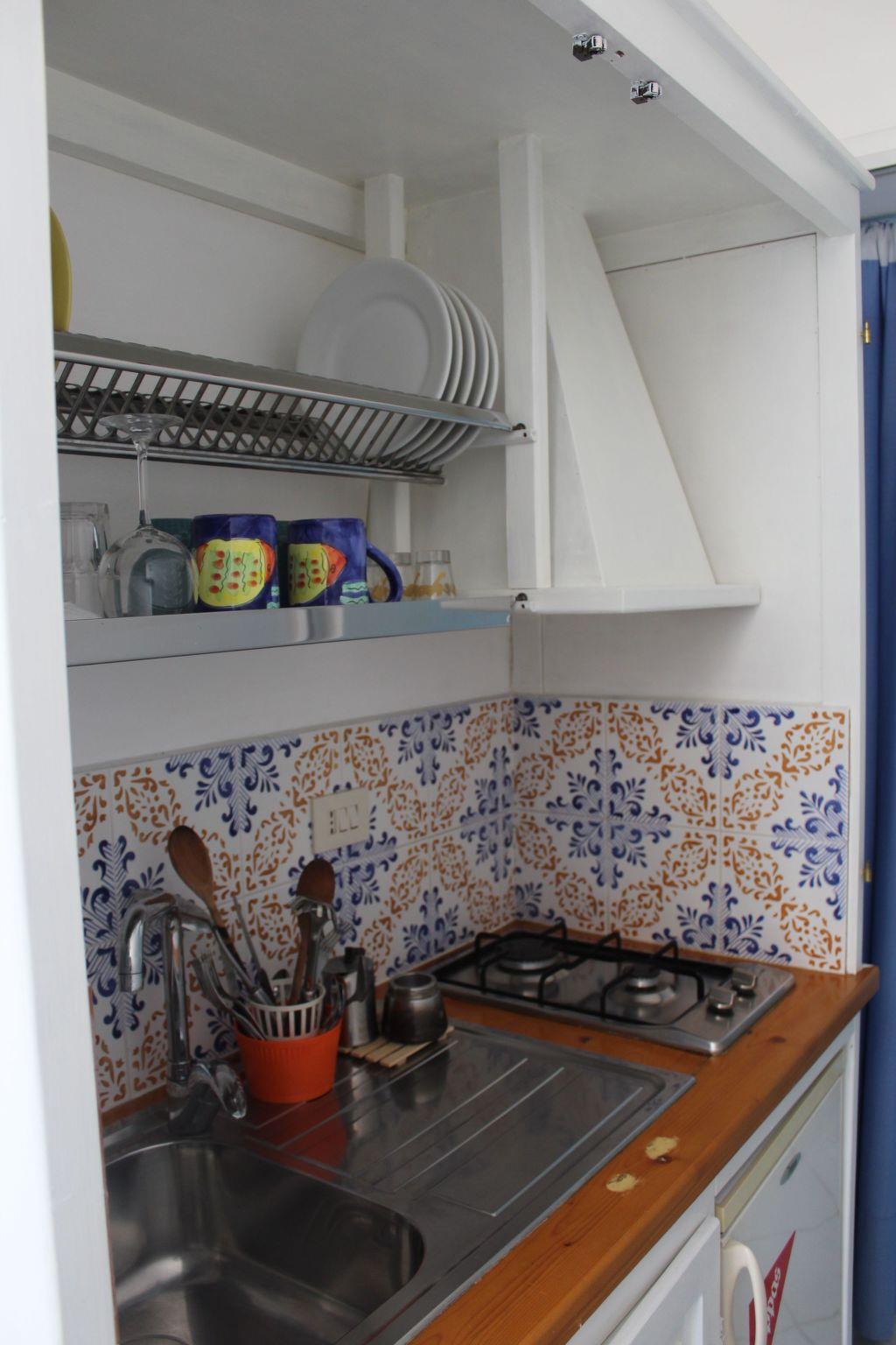 Inside, the flat features a built-in kitchen, equipped with a practical two-burner cooker and a coffee maker to start the day with a good Italian coffee. The air conditioning, which is partially available, keeps the rooms cool on hot summer days. Perfect for those looking for a practical, no-frills retreat, the studio opens onto a sea-facing balcony that invites moments of pure tranquillity, while the TV provides entertainment for quiet evenings after a day exploring the island.