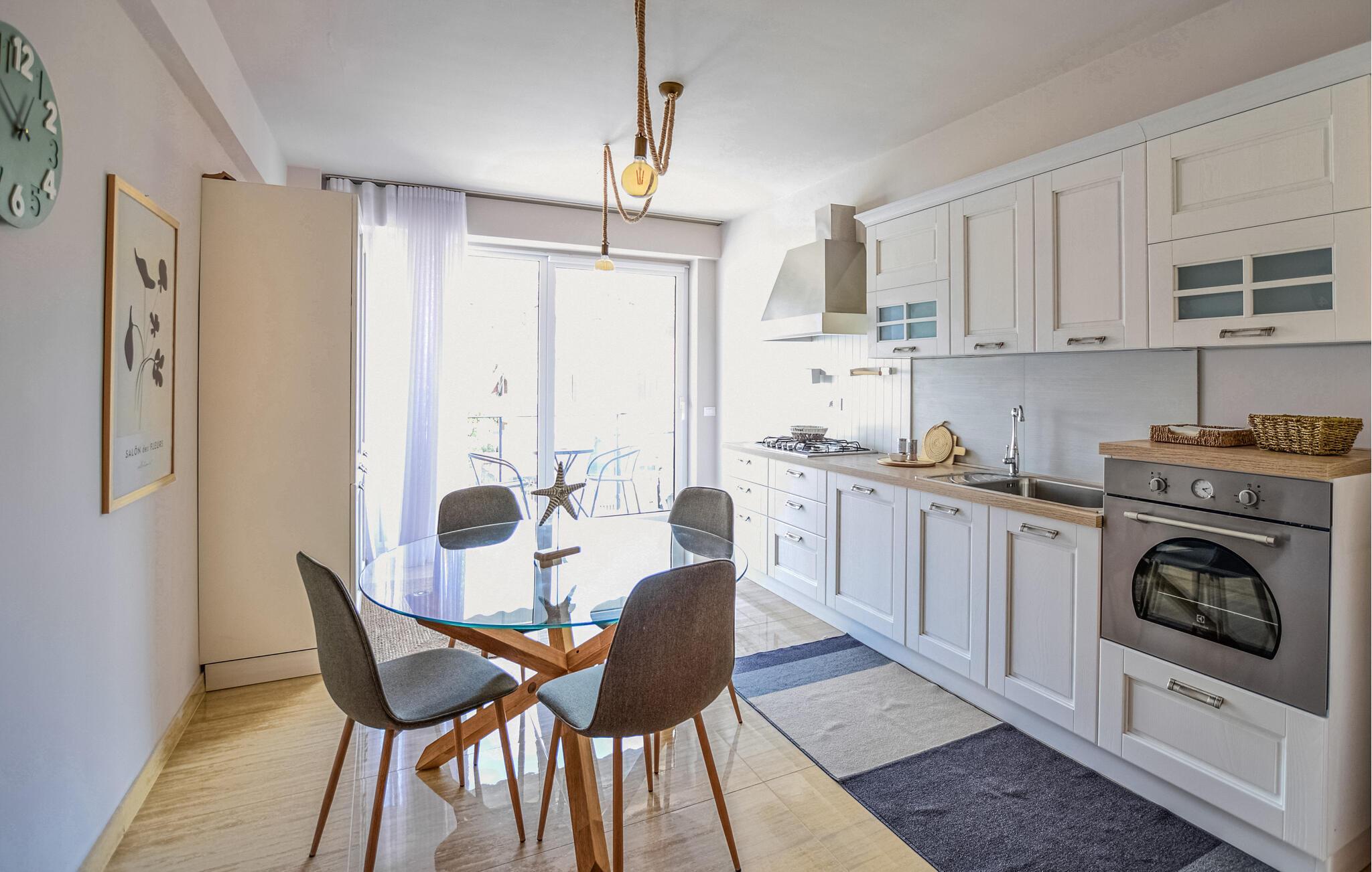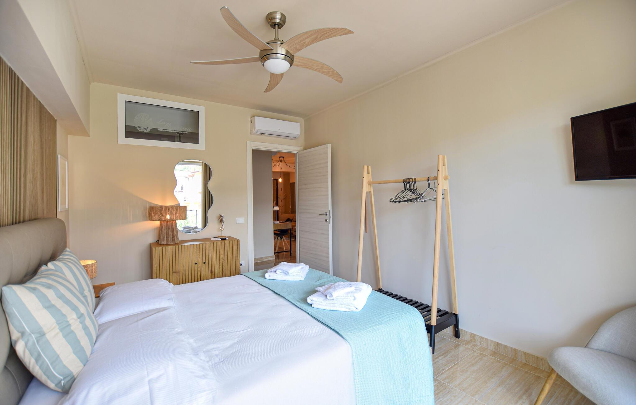 I denne lyse ferielejlighed møder du en elegant atmosfære, der indbyder til ren velvære. Den kvalitetsfulde indretning skaber en behagelig stemning, og beliggenheden tæt på stranden gør det let at nyde solrige dage ved havet. Perfekt for par eller familier er denne lejlighed et ideelt tilflugtssted – både til fælles hygge og privatliv, da huset rummer flere komfortable ferielejligheder.