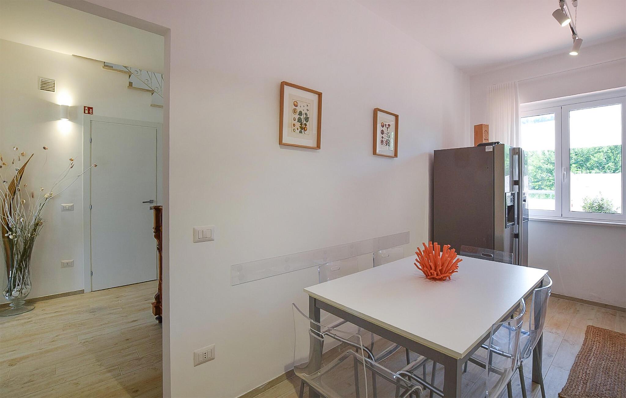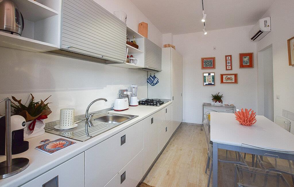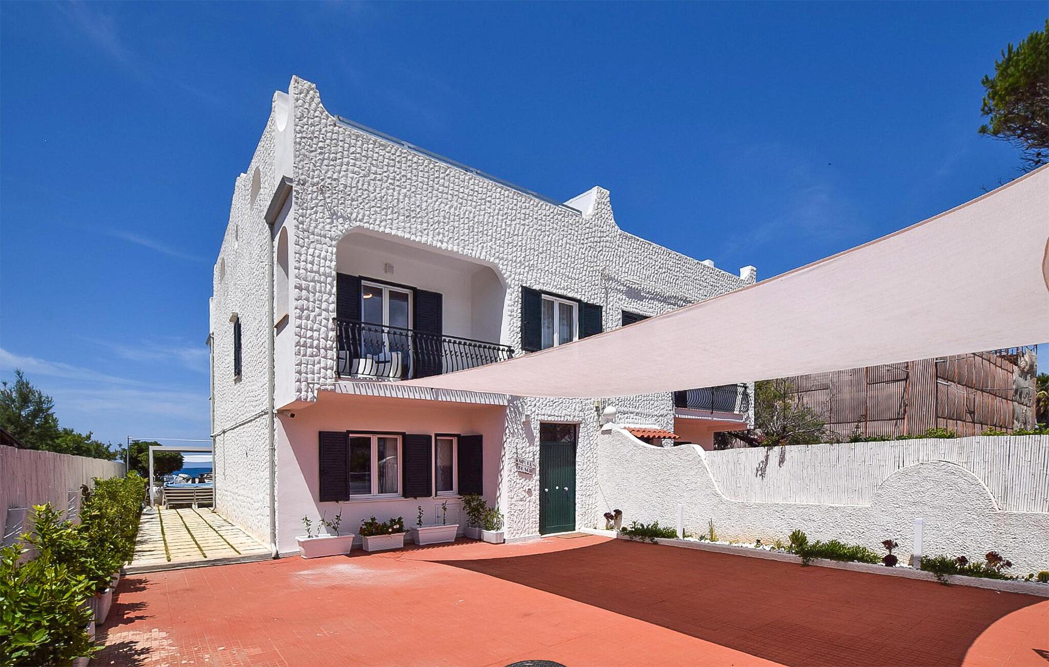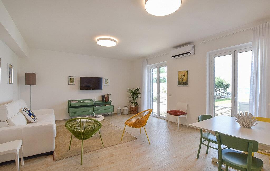 Nyd en dejlig ferie i dette fortryllende feriehus ved stranden. I kan næppe være tættere på stranden end i denne rummelige og komfortable villa – Det Tyrrhenske Hav ligger lige for jeres fødder. Det lyse og smagfuldt indrettede interiør byder på masser af plads til venner eller familie – glæd jer til sjov madlavning med venner, hyggelige måltider og hyggelige aftener foran fjernsynet. Jeres have grænser op til stranden – så I kan forfriske jer i havet og vende tilbage til jeres skyggefulde område under teltet for kølige drinks og stemningsfulde måltider. Om aftenen kan I tænde grillen og lytte til den blide lyd af bølgerne med vin og stearinlys. Gå en tur gennem den charmerende gamle bydel i Pizzo og prøv den berømte Tartufo-is, besøg det imponerende Castello Murat, eller tag en bådtur langs den maleriske kyst i Tropea med dens turkisblå bugter. Vandr gennem naturparken Serre og nyd regionale specialiteter i en hyggelig trattoria.
