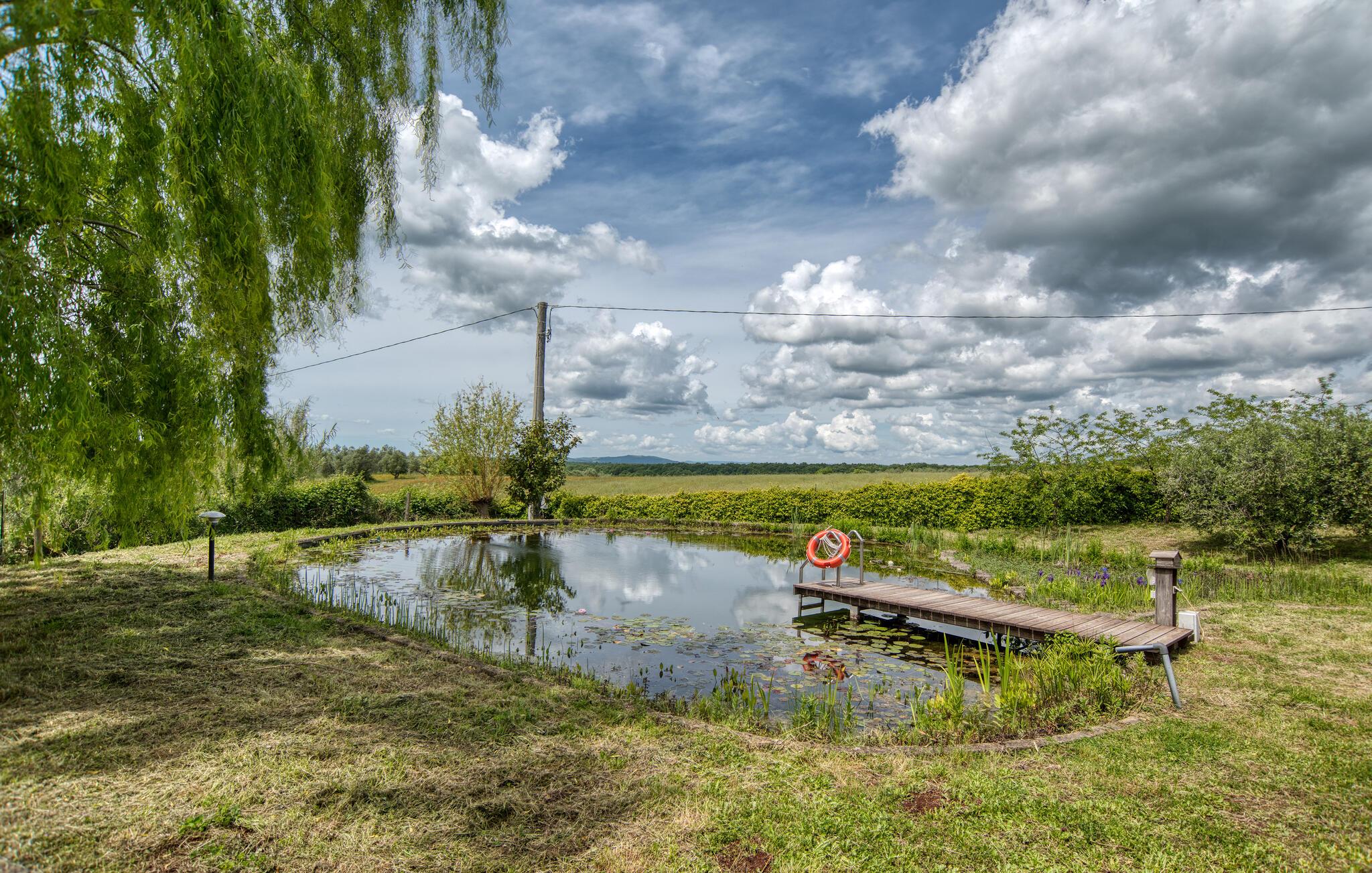 Nyd dejlige timer udendørs på den skønne ejendom, udstrakt solbadning på en af ??engene, eller med en bog og en vidunderlig udsigt over landskabet på terrassen. Gå en tur til den økologiske badedam på den vidunderligt store plads og Snup en frisk dukkert i en naturlig atmosfære. Afslut dagen med kolde drinks og et lækkert måltid fra grillen under åben himmel og nyd den perfekte ferieafslapning.