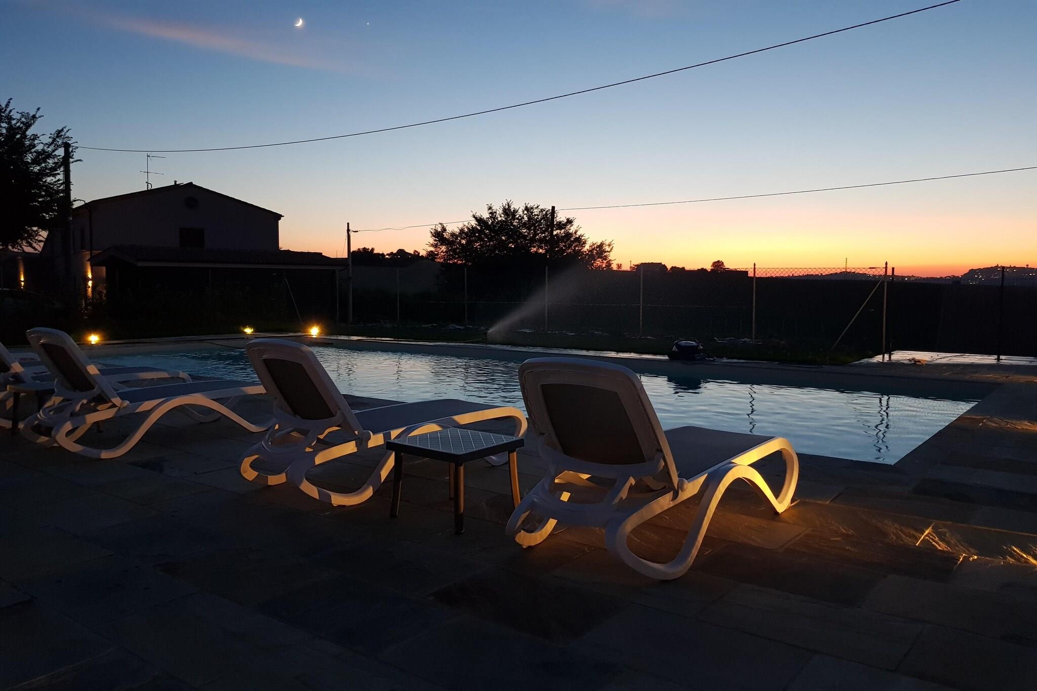 Flygt til et unikt tilflugtssted og forkæl dig selv med charmen ved glamping på vores bondehus, der ligger i de maleriske Marche-bakker. Kun en kort afstand fra havet og omgivet af frodige grønne områder i Fermo, tilbyder vores telt en uforglemmelig oplevelse, der blander komfort med naturen. Teltet kan rumme op til 5 gæster fordelt på 2 soveværelser og sikrer et hyggeligt ophold med moderne bekvemmeligheder. Nyd udendørs spisning eller slap af med en god bog på verandaen, hvor den fredfyldte stemning på landet omslutter dig. En forfriskende swimmingpool på bondegården venter kun få meter væk, perfekt til afslapning og afkøling på varme dage. Du kan udforske den historiske by Fermo kendt for sin velbevarede arkitektur, herunder den imponerende Fermo-katedral og de romerske cisterner. En kort køretur fra stuehuset tager dig til Adriaterhavet, hvor du kan nyde sandstrande, vandsport og fiskerestauranter langs kysten. Solbad, svøm eller slap af ved havet. Inde i teltet finder du aircondition, et veludstyret køkken og et praktisk badeværelse med bruser, hvilket sikrer et behageligt og afslappende ophold. For dem, der søger ekstra forkælelse, kan en dejlig morgenmad nydes i hovedbygningen, omgivelserne tonen til en dag med udforskning eller afslapning i denne naturskønne region.