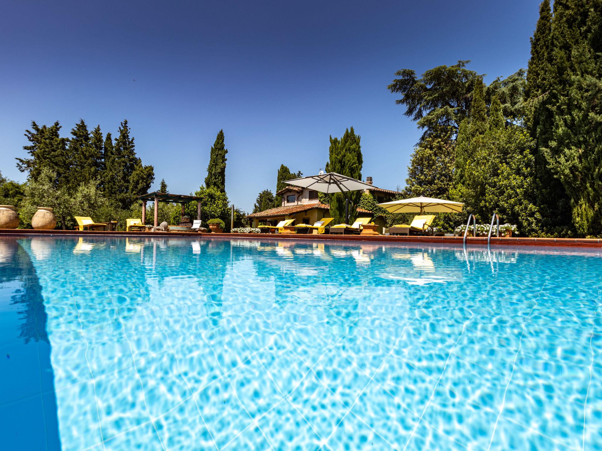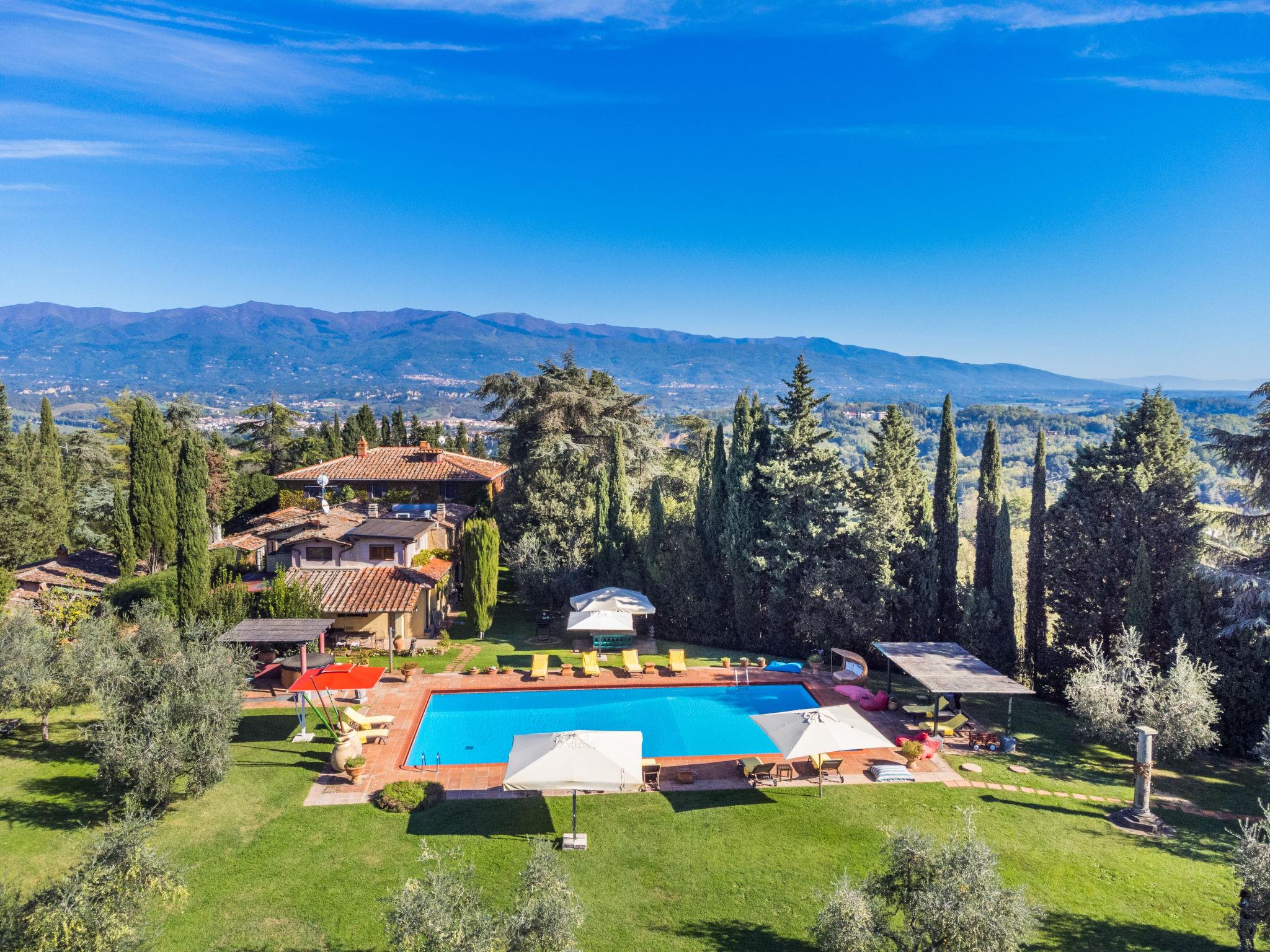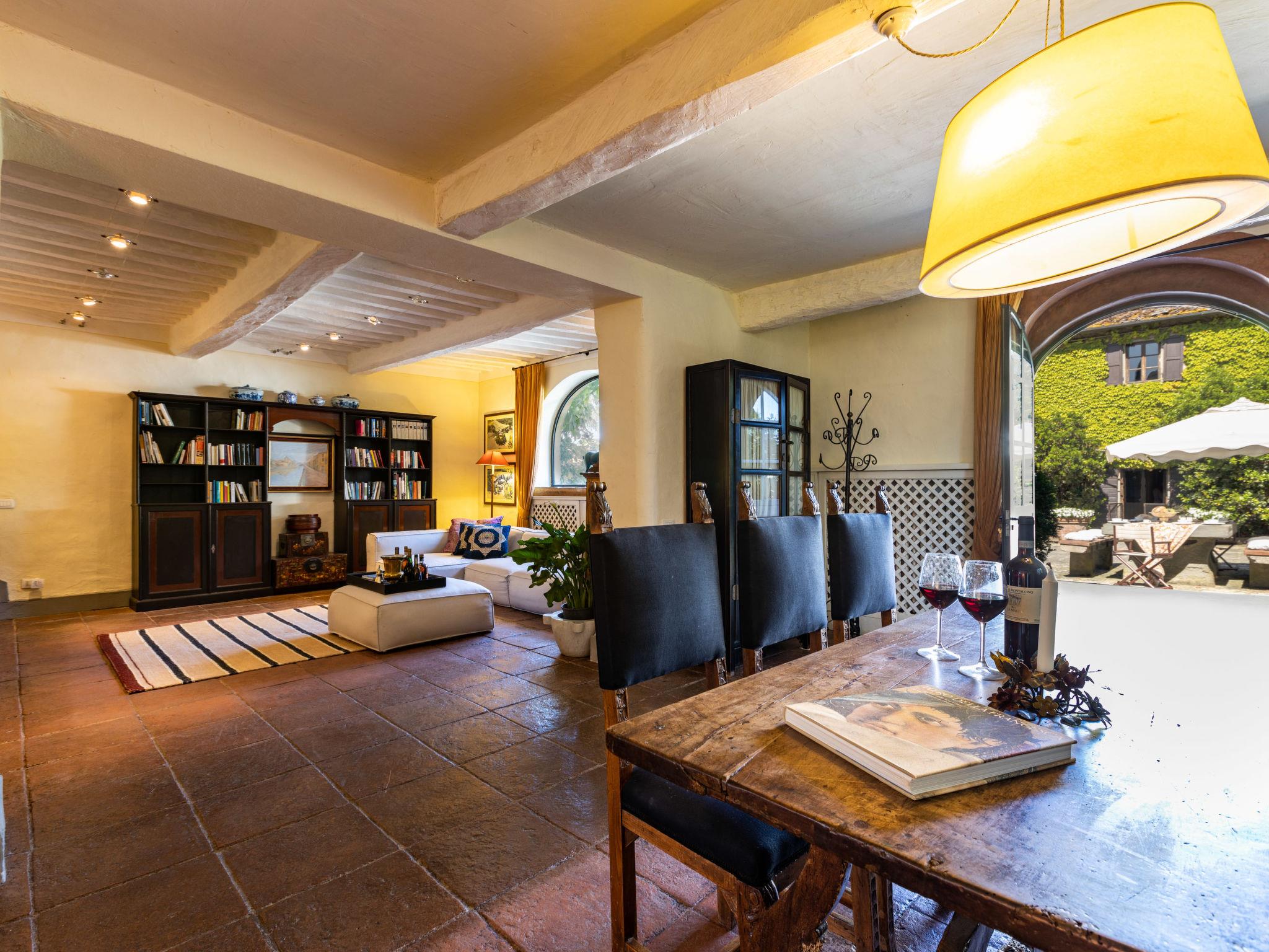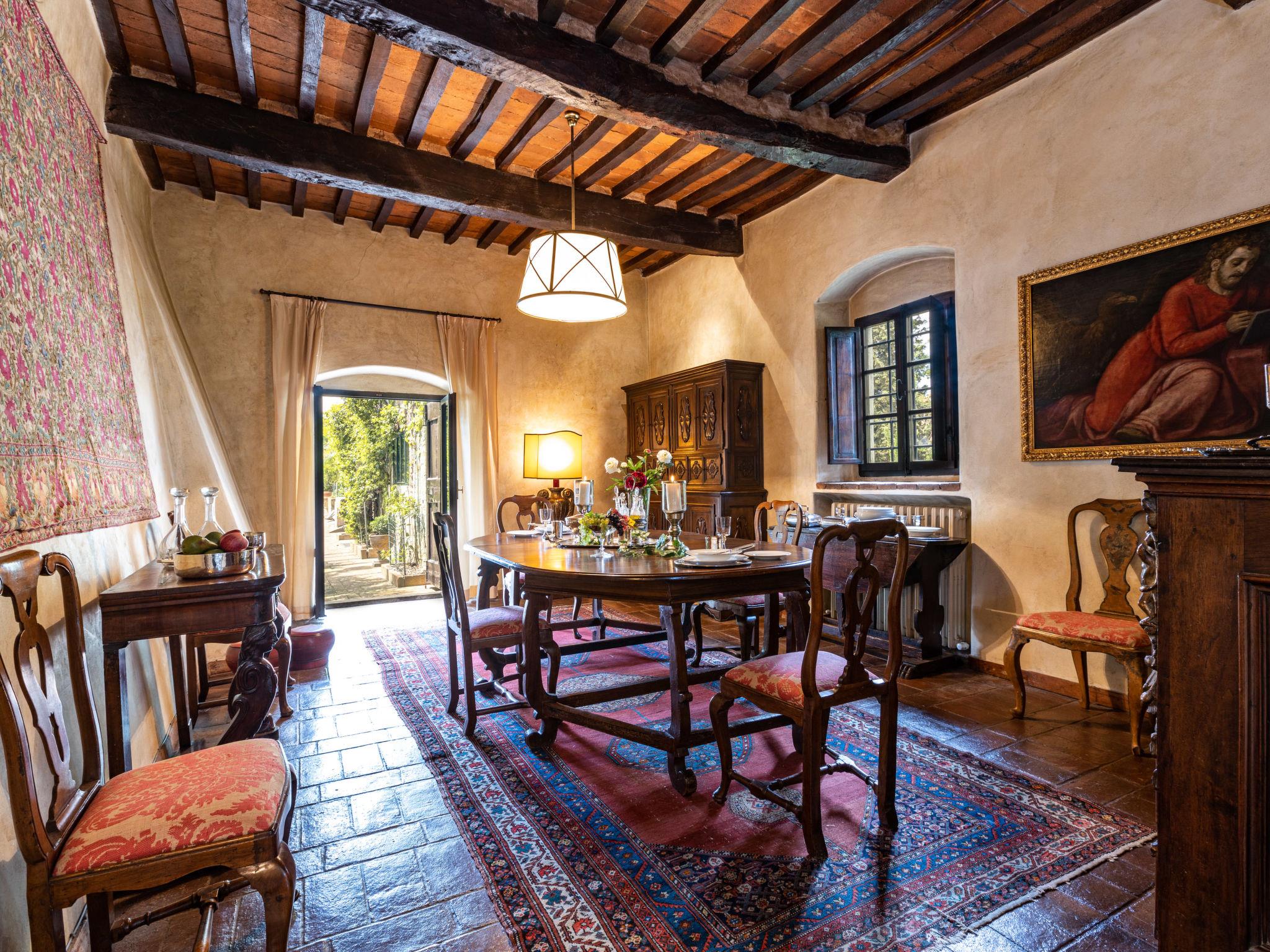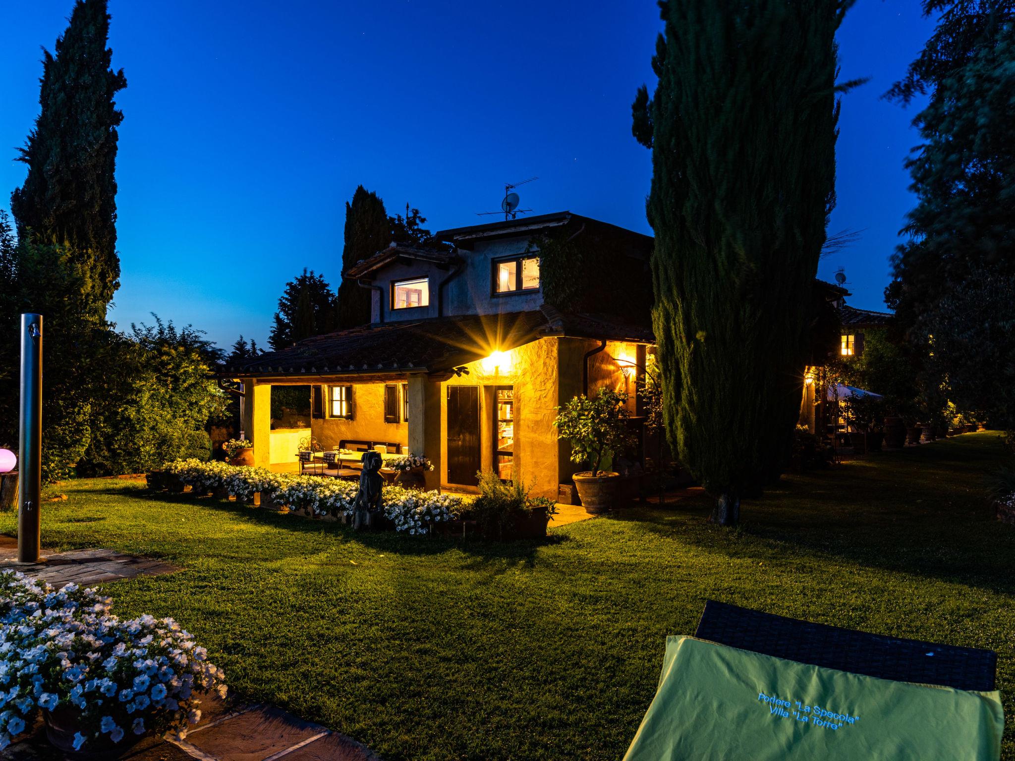 La Specola is an estate with 3 villas, each with fully equipped kitchen, that can be only booked together very beautiful, comfortable villa "La Torre", from the 12nd century, surrounded by trees and vineyards. 3 houses in the residence. Property composed of main house and outbuilding 4 km from the centre of Figline Valdarno, 7 km from the centre of Incisa Valdarno, 35 km from the centre of FIrenze, in a secluded, sunny position residential area (villas), in the countryside. Private: park (fenced), large, well-kept garden 5 ha with lawn and flowers, natural pond, swimming pool (9 x 18 m, depth 120 - 240 cm, seasonal availability: 01.Apr. - 31.Oct.). Outdoor shower, patio, arbour, pergola, terrace, garden furniture, barbecue, pool maintenance by the owner/gardener. In the house: hot tub (all included), billiard table, bicycle rental. Linen change weekly. Towel change weekly. Room cleaning 2 times per week (included). House maid on request (extra). Breakfast and half board possible (extra). Pre-arrival grocery service. Storeroom available. Airport transfer. Roofed, parking (for 10 cars) on the premises. E-charging station. Shop 3 km, grocery 3 km, supermarket 3 km, restaurant 3 km, bakery 3 km, bicycle rental 4 km, bus stop 300 m, railway station "incisa Valdarno" 7 km. Golf course (18 hole) 23 km, tennis 4 km, indoor tennis centre 4 km, riding stable 4 km, walking paths from the house 100 m. Nearby attractions: Greve in Chianti 17 km, Arezzo 50 km, San Gimignano 62 km, Siena 65 km. Please note: baby equipment (included). Groups of teenagers on request only. Suitable for events. On request: airport transfer to the holiday accommodation. Residence with electric gates. The owner lives on the same property. The owner has a dog. All houses/apartments are individually designed/furnished.