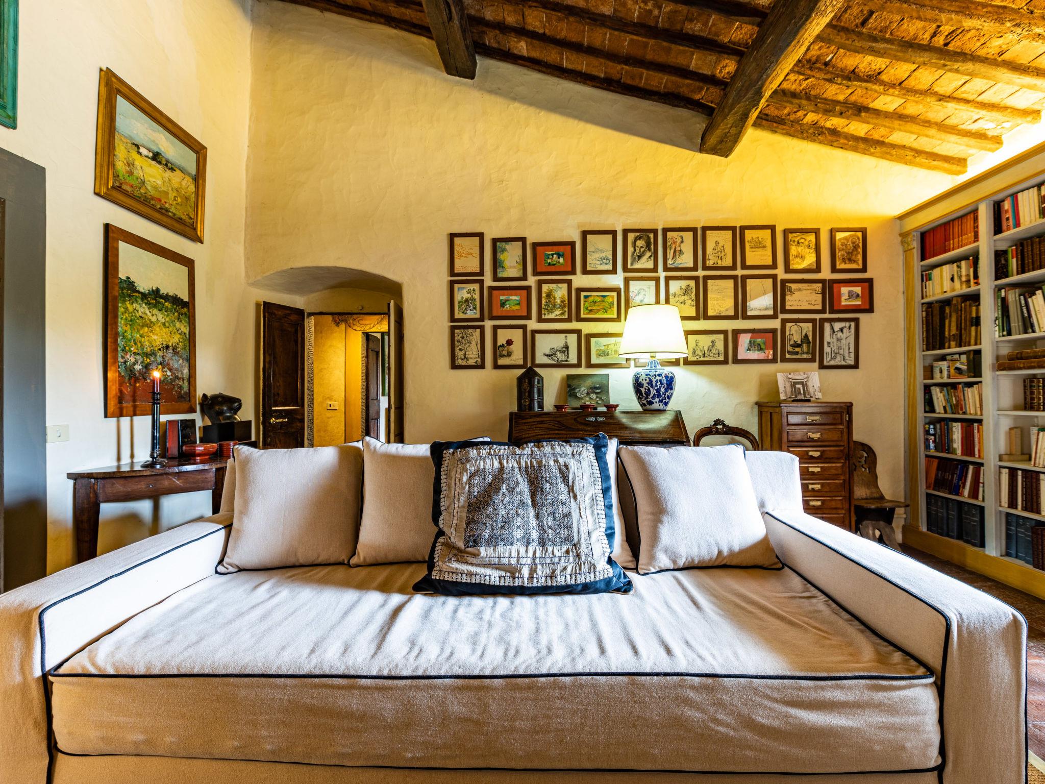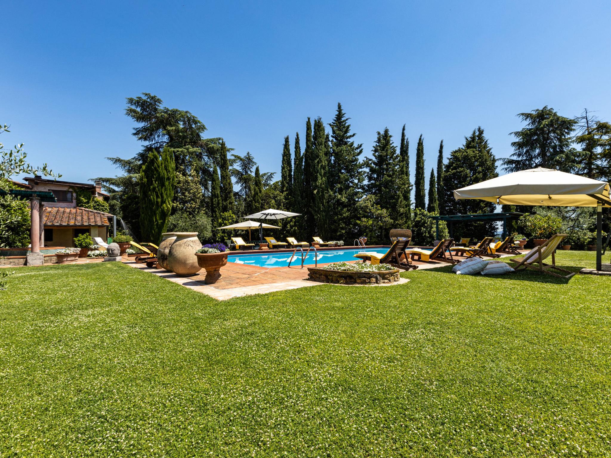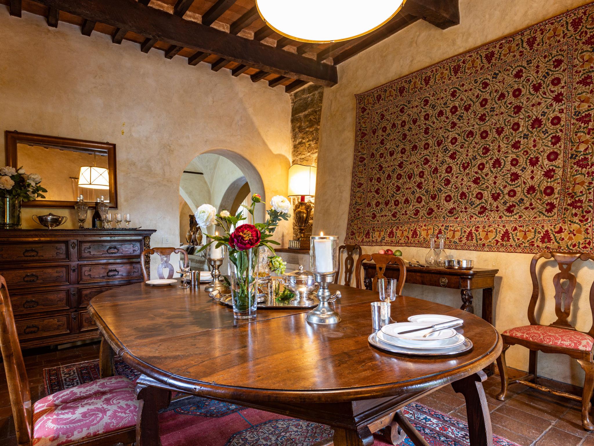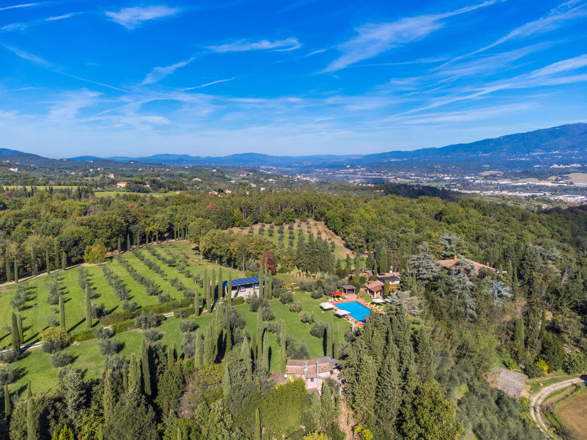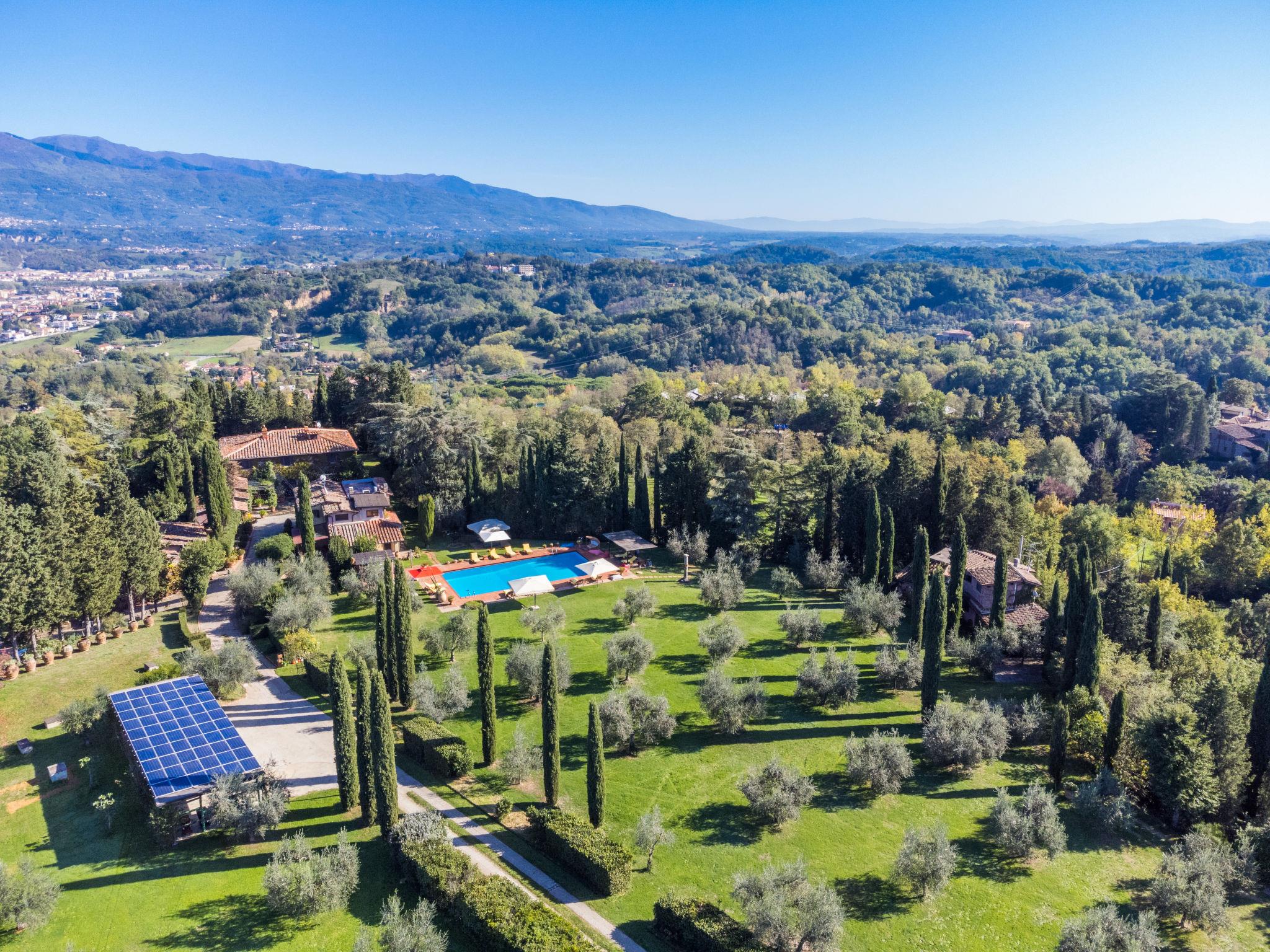 La Specola is an estate with 3 villas, each with fully equipped kitchen, that can be only booked together very beautiful, comfortable villa "La Torre", from the 12nd century, surrounded by trees and vineyards. 3 houses in the residence. Property composed of main house and outbuilding 4 km from the centre of Figline Valdarno, 7 km from the centre of Incisa Valdarno, 35 km from the centre of FIrenze, in a secluded, sunny position residential area (villas), in the countryside. Private: park (fenced), large, well-kept garden 5 ha with lawn and flowers, natural pond, swimming pool (9 x 18 m, depth 120 - 240 cm, seasonal availability: 01.Apr. - 31.Oct.). Outdoor shower, patio, arbour, pergola, terrace, garden furniture, barbecue, pool maintenance by the owner/gardener. In the house: hot tub (all included), billiard table, bicycle rental. Linen change weekly. Towel change weekly. Room cleaning 2 times per week (included). House maid on request (extra). Breakfast and half board possible (extra). Pre-arrival grocery service. Storeroom available. Airport transfer. Roofed, parking (for 10 cars) on the premises. E-charging station. Shop 3 km, grocery 3 km, supermarket 3 km, restaurant 3 km, bakery 3 km, bicycle rental 4 km, bus stop 300 m, railway station "incisa Valdarno" 7 km. Golf course (18 hole) 23 km, tennis 4 km, indoor tennis centre 4 km, riding stable 4 km, walking paths from the house 100 m. Nearby attractions: Greve in Chianti 17 km, Arezzo 50 km, San Gimignano 62 km, Siena 65 km. Please note: baby equipment (included). Groups of teenagers on request only. Suitable for events. On request: airport transfer to the holiday accommodation. Residence with electric gates. The owner lives on the same property. The owner has a dog. All houses/apartments are individually designed/furnished.