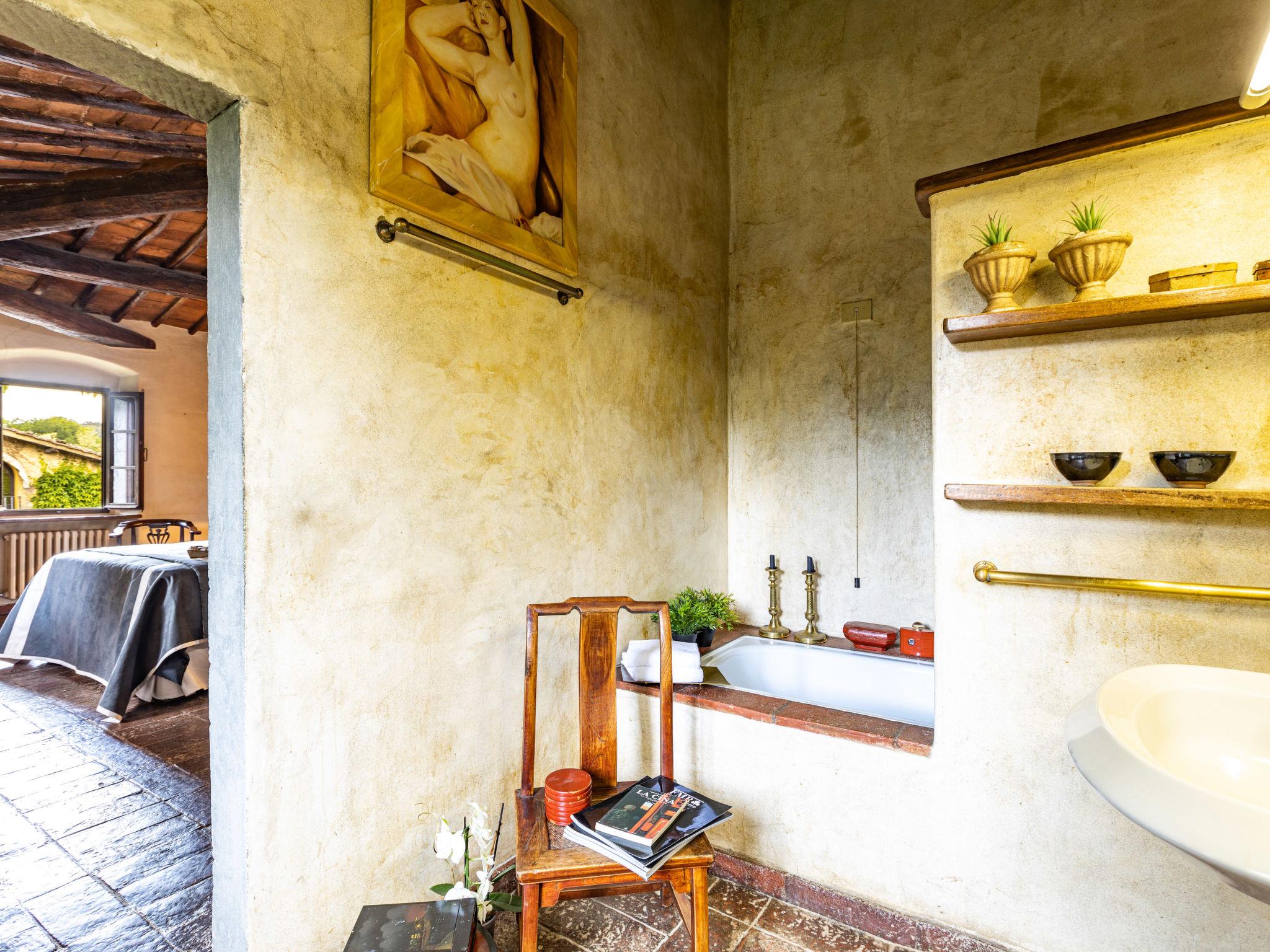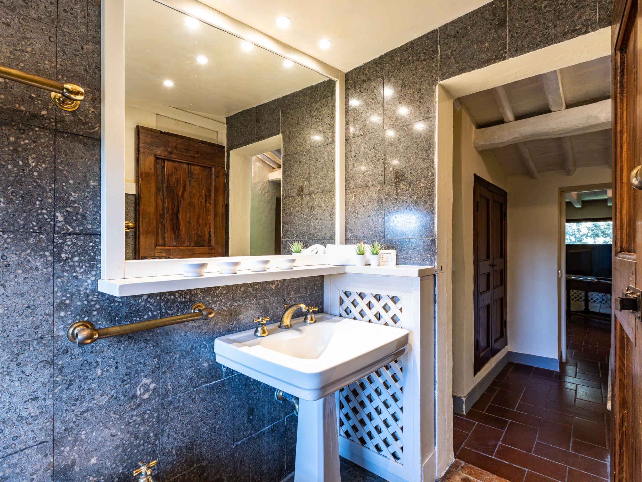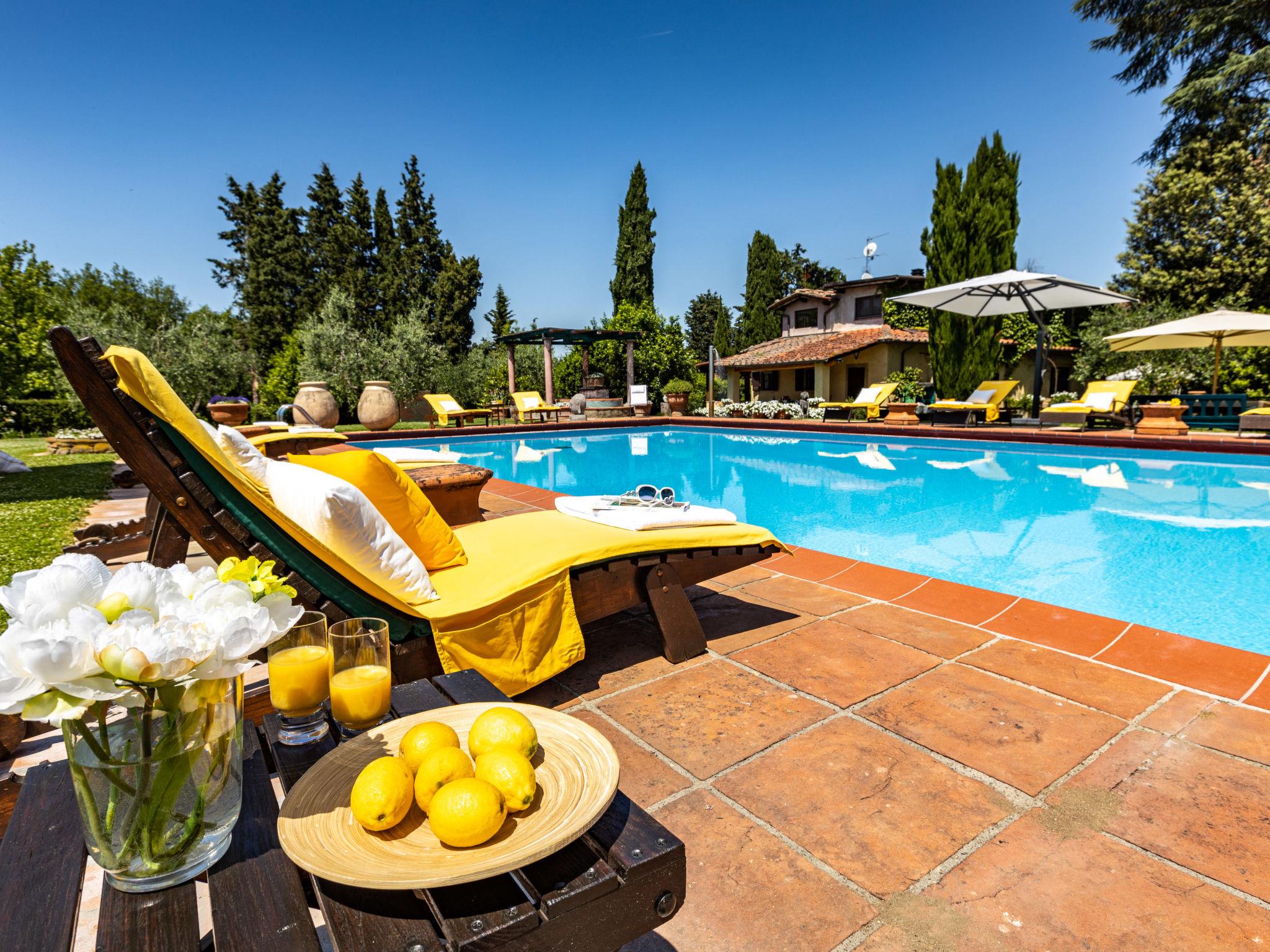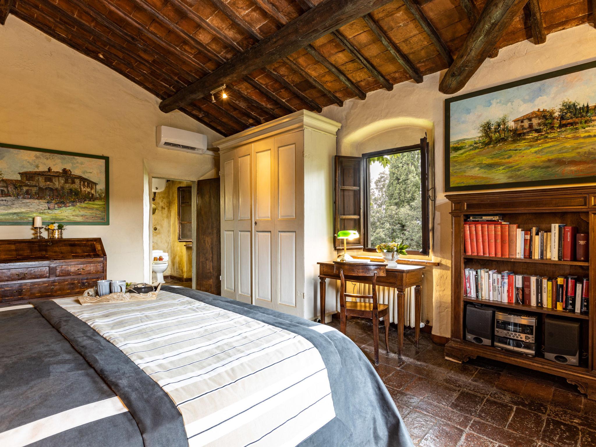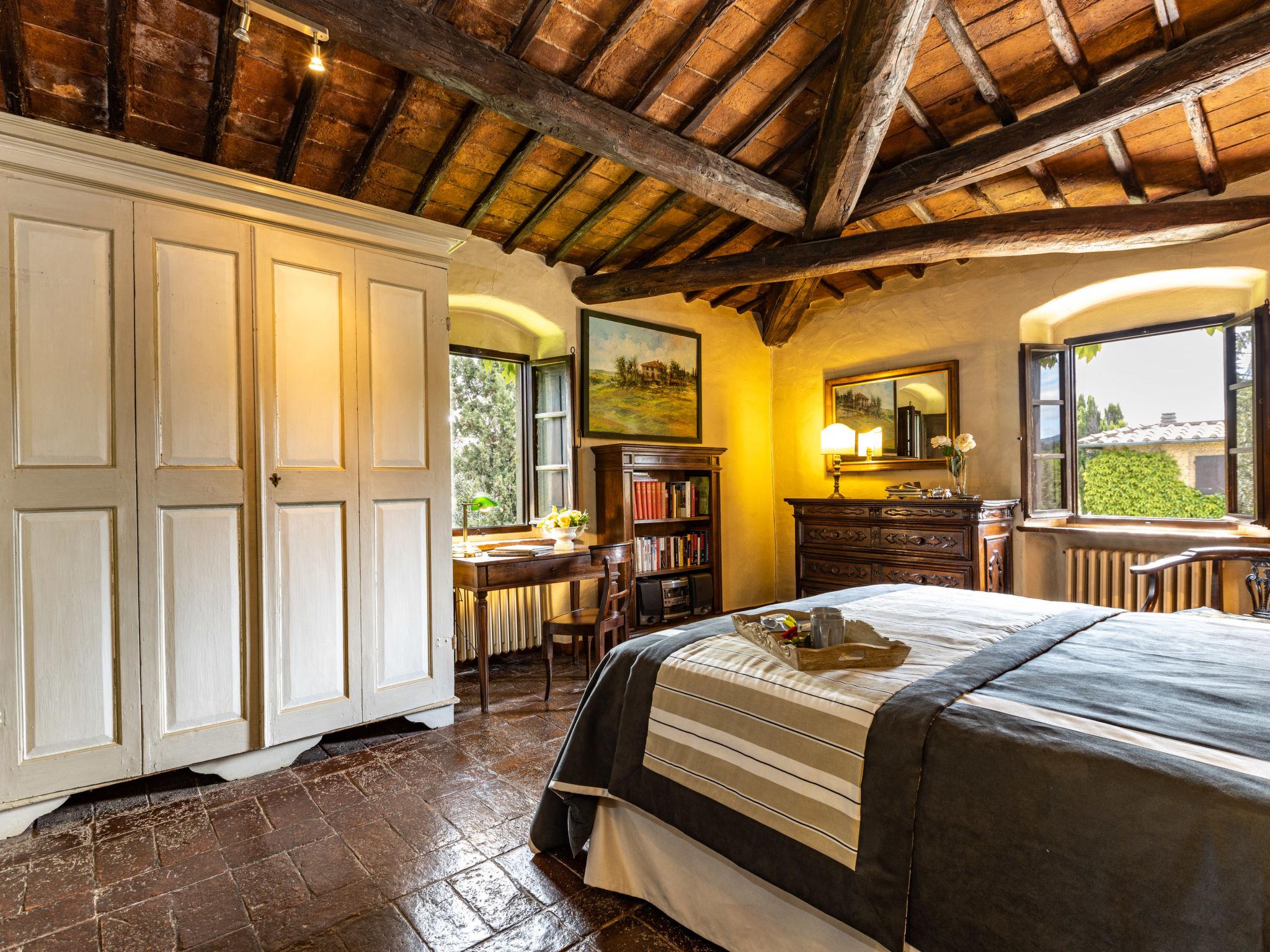 La Specola is an estate with 3 villas, each with fully equipped kitchen, that can be only booked together very beautiful, comfortable villa "La Torre", from the 12nd century, surrounded by trees and vineyards. 3 houses in the residence. Property composed of main house and outbuilding 4 km from the centre of Figline Valdarno, 7 km from the centre of Incisa Valdarno, 35 km from the centre of FIrenze, in a secluded, sunny position residential area (villas), in the countryside. Private: park (fenced), large, well-kept garden 5 ha with lawn and flowers, natural pond, swimming pool (9 x 18 m, depth 120 - 240 cm, seasonal availability: 01.Apr. - 31.Oct.). Outdoor shower, patio, arbour, pergola, terrace, garden furniture, barbecue, pool maintenance by the owner/gardener. In the house: hot tub (all included), billiard table, bicycle rental. Linen change weekly. Towel change weekly. Room cleaning 2 times per week (included). House maid on request (extra). Breakfast and half board possible (extra). Pre-arrival grocery service. Storeroom available. Airport transfer. Roofed, parking (for 10 cars) on the premises. E-charging station. Shop 3 km, grocery 3 km, supermarket 3 km, restaurant 3 km, bakery 3 km, bicycle rental 4 km, bus stop 300 m, railway station "incisa Valdarno" 7 km. Golf course (18 hole) 23 km, tennis 4 km, indoor tennis centre 4 km, riding stable 4 km, walking paths from the house 100 m. Nearby attractions: Greve in Chianti 17 km, Arezzo 50 km, San Gimignano 62 km, Siena 65 km. Please note: baby equipment (included). Groups of teenagers on request only. Suitable for events. On request: airport transfer to the holiday accommodation. Residence with electric gates. The owner lives on the same property. The owner has a dog. All houses/apartments are individually designed/furnished.