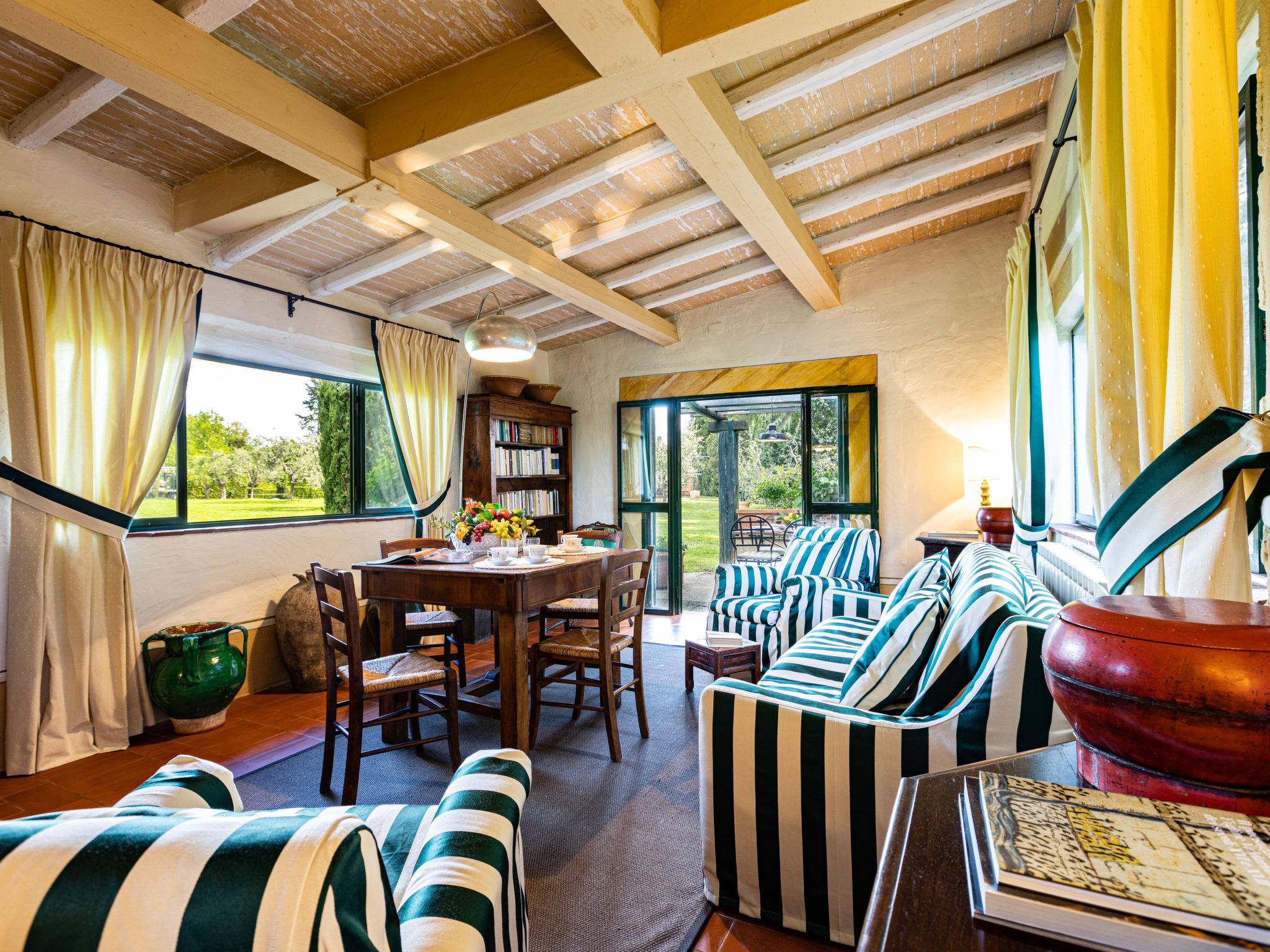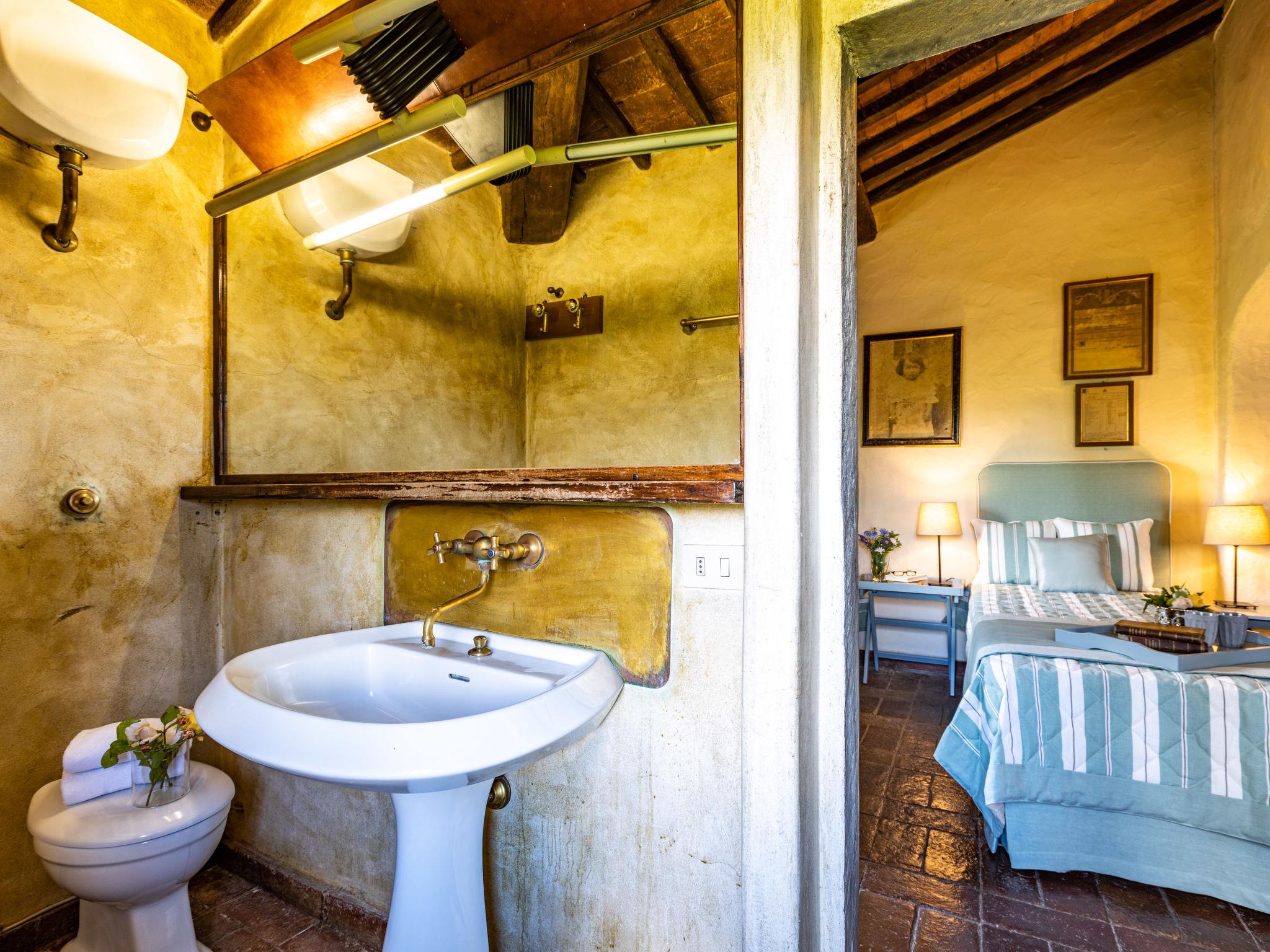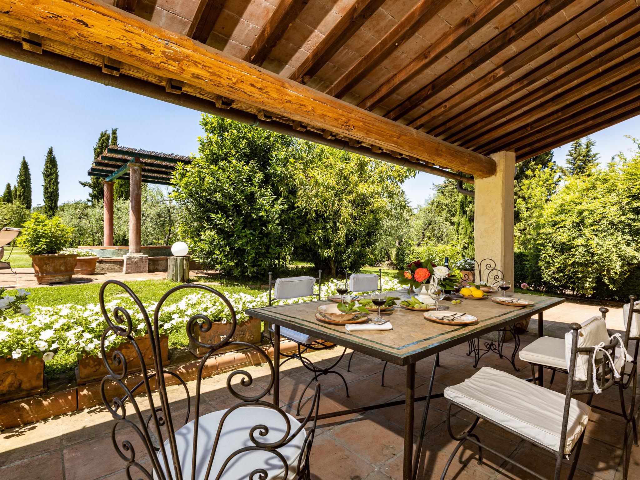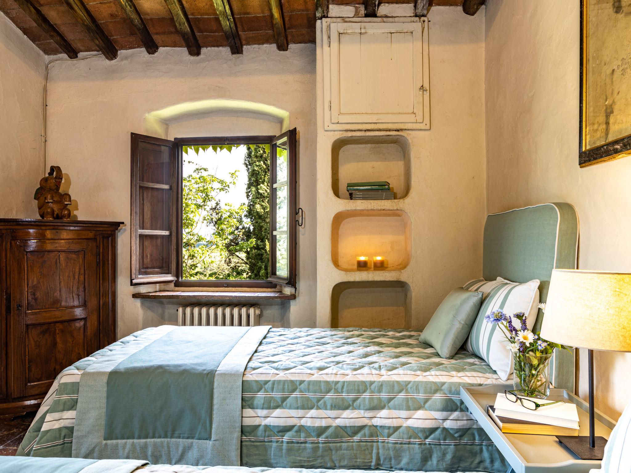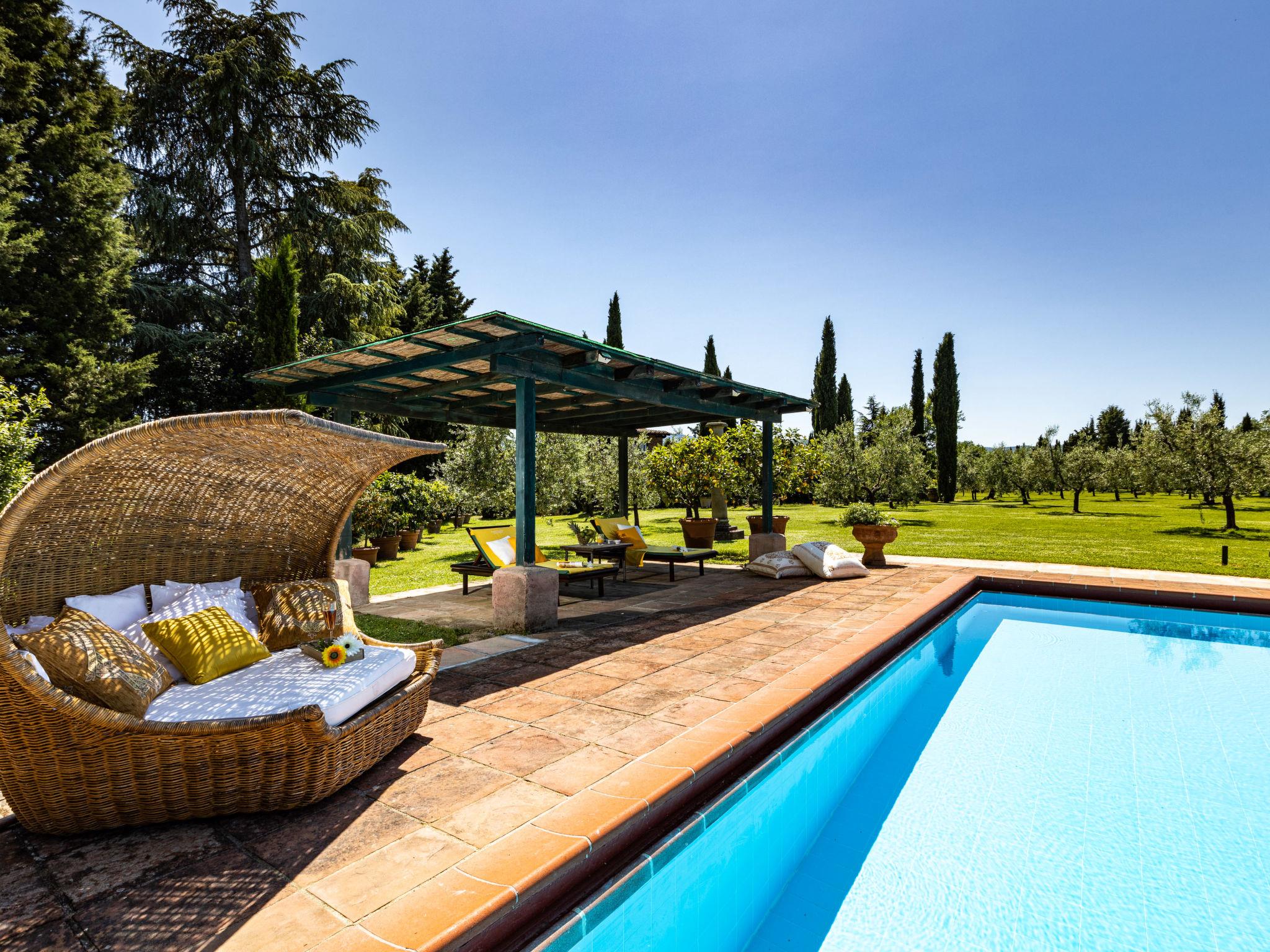 La Specola is an estate with 3 villas, each with fully equipped kitchen, that can be only booked together very beautiful, comfortable villa "La Torre", from the 12nd century, surrounded by trees and vineyards. 3 houses in the residence. Property composed of main house and outbuilding 4 km from the centre of Figline Valdarno, 7 km from the centre of Incisa Valdarno, 35 km from the centre of FIrenze, in a secluded, sunny position residential area (villas), in the countryside. Private: park (fenced), large, well-kept garden 5 ha with lawn and flowers, natural pond, swimming pool (9 x 18 m, depth 120 - 240 cm, seasonal availability: 01.Apr. - 31.Oct.). Outdoor shower, patio, arbour, pergola, terrace, garden furniture, barbecue, pool maintenance by the owner/gardener. In the house: hot tub (all included), billiard table, bicycle rental. Linen change weekly. Towel change weekly. Room cleaning 2 times per week (included). House maid on request (extra). Breakfast and half board possible (extra). Pre-arrival grocery service. Storeroom available. Airport transfer. Roofed, parking (for 10 cars) on the premises. E-charging station. Shop 3 km, grocery 3 km, supermarket 3 km, restaurant 3 km, bakery 3 km, bicycle rental 4 km, bus stop 300 m, railway station "incisa Valdarno" 7 km. Golf course (18 hole) 23 km, tennis 4 km, indoor tennis centre 4 km, riding stable 4 km, walking paths from the house 100 m. Nearby attractions: Greve in Chianti 17 km, Arezzo 50 km, San Gimignano 62 km, Siena 65 km. Please note: baby equipment (included). Groups of teenagers on request only. Suitable for events. On request: airport transfer to the holiday accommodation. Residence with electric gates. The owner lives on the same property. The owner has a dog. All houses/apartments are individually designed/furnished.