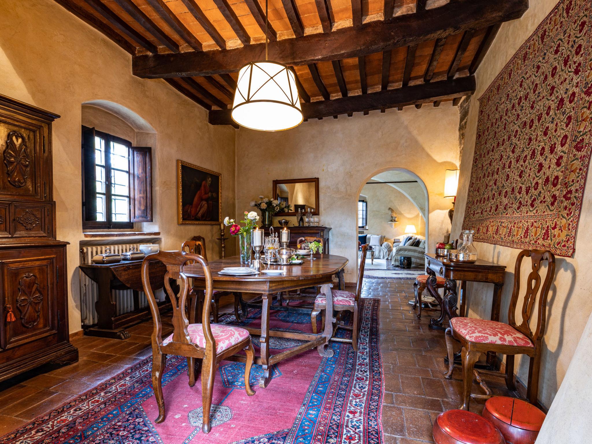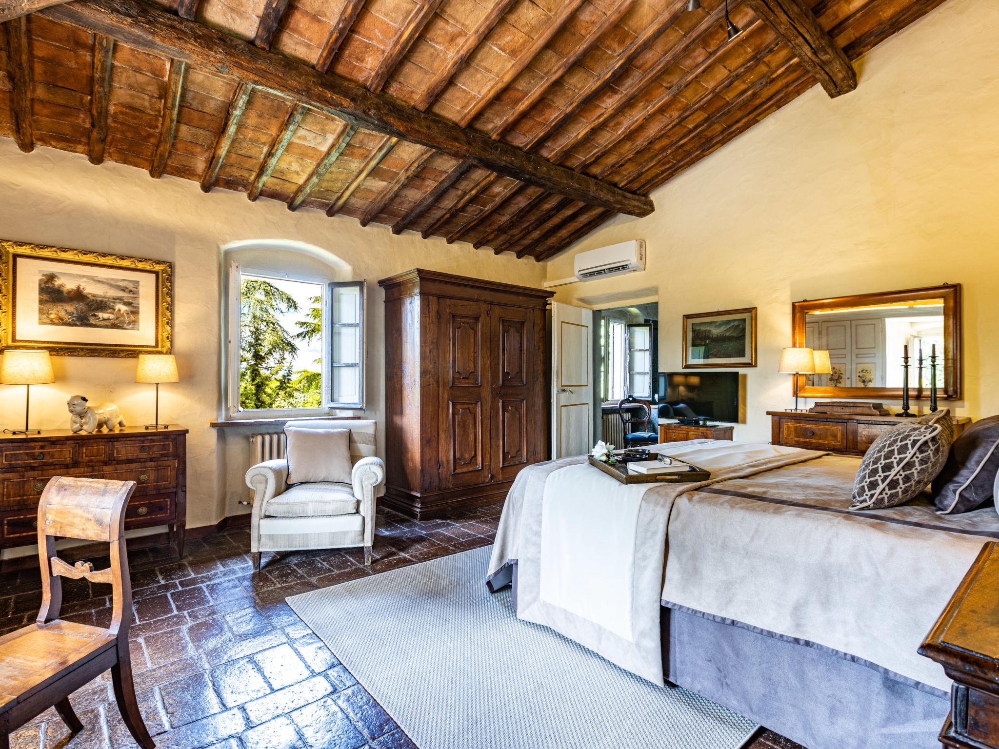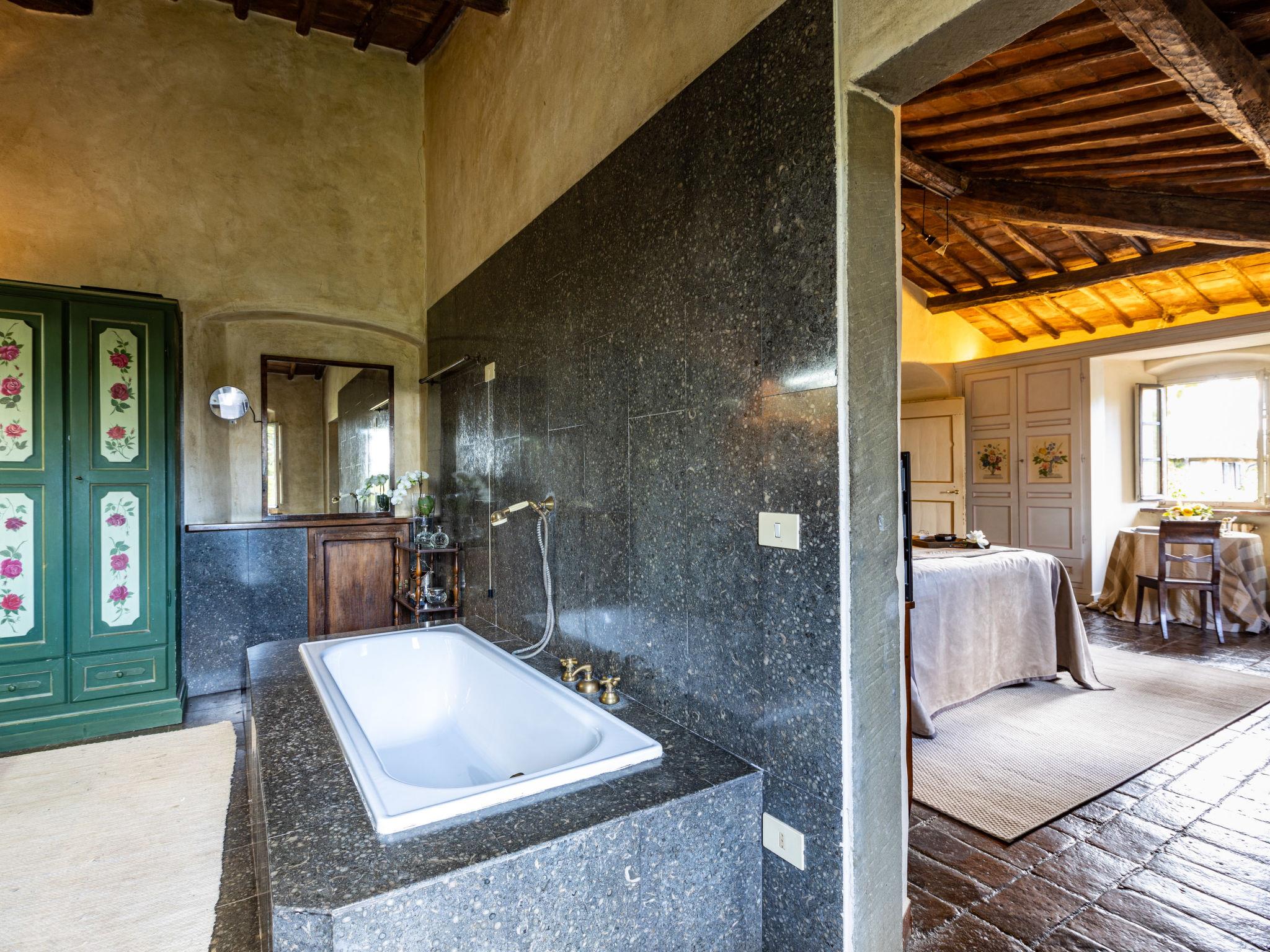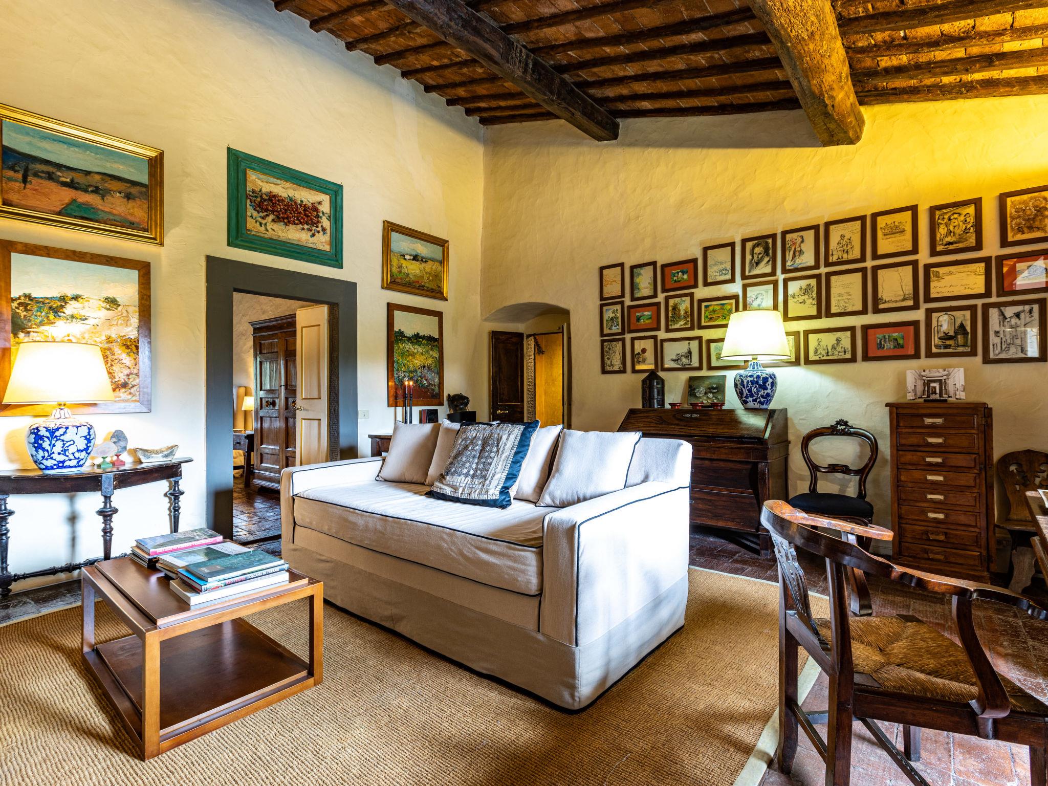 "La Torre + Fienile + Casa Prato", 16-room villa 900 m2 on 2 levels. Spacious, very comfortable and tasteful furnishings: large entrance hall. Large lounge with open-hearth fireplace. Exit to the garden. Large dining room. Large living room. Exit to the garden, to the swimming pool. Living room. Exit to the garden. 1 room with 3 beds (100 cm, length 200 cm), bath/shower/bidet/WC. Exit to the patio. Large, open kitchen (oven, dishwasher, toaster, kettle, microwave, freezer, electric coffee machine) with open-hearth fireplace and dining table. Exit to the garden, to the swimming pool. 2 showers/bidet/WC. Upper floor: living room with TV (flat screen). 2 large double bedrooms, each room with bath/shower/bidet/WC and double hand-basin. 1 room with 2 beds (100 cm, length 200 cm), shower/bidet/WC. 2 rooms, each room with 1 bed (100 cm, length 200 cm), 1 double bed and shower/bidet/WC. 1 double bedroom with shower/bidet/WC. Exit to the balcony. 1 double bedroom with shower/bidet/WC. 1 room with 1 french bed (150 cm), shower/bidet/WC. Natural stone floors. Comfortable furnishings in the country house style. Terrace, patio. Terrace furniture, barbecue, deck chairs, box-room. Very beautiful panoramic view. Facilities: washing machine, dryer, safe, iron, mosquito net, children's high chair, baby cot for up to 2 year olds, hair dryer, logs (extra). Internet (WiFi, free). Parking (10 cars) at the house. E-charging station. Please note: non-smokers only. Maximum 2 pets/ dogs allowed. No internal connecting door between the separated properties. The pool mentioned in the description is for private use. Torre for 8 people, Fienile for 6-8 People, Prato for 4-6 People. When there are less than the maximum number of guests staying at the property, not all of the housing units will be available for use. IT048052C2ZVK7L8OR