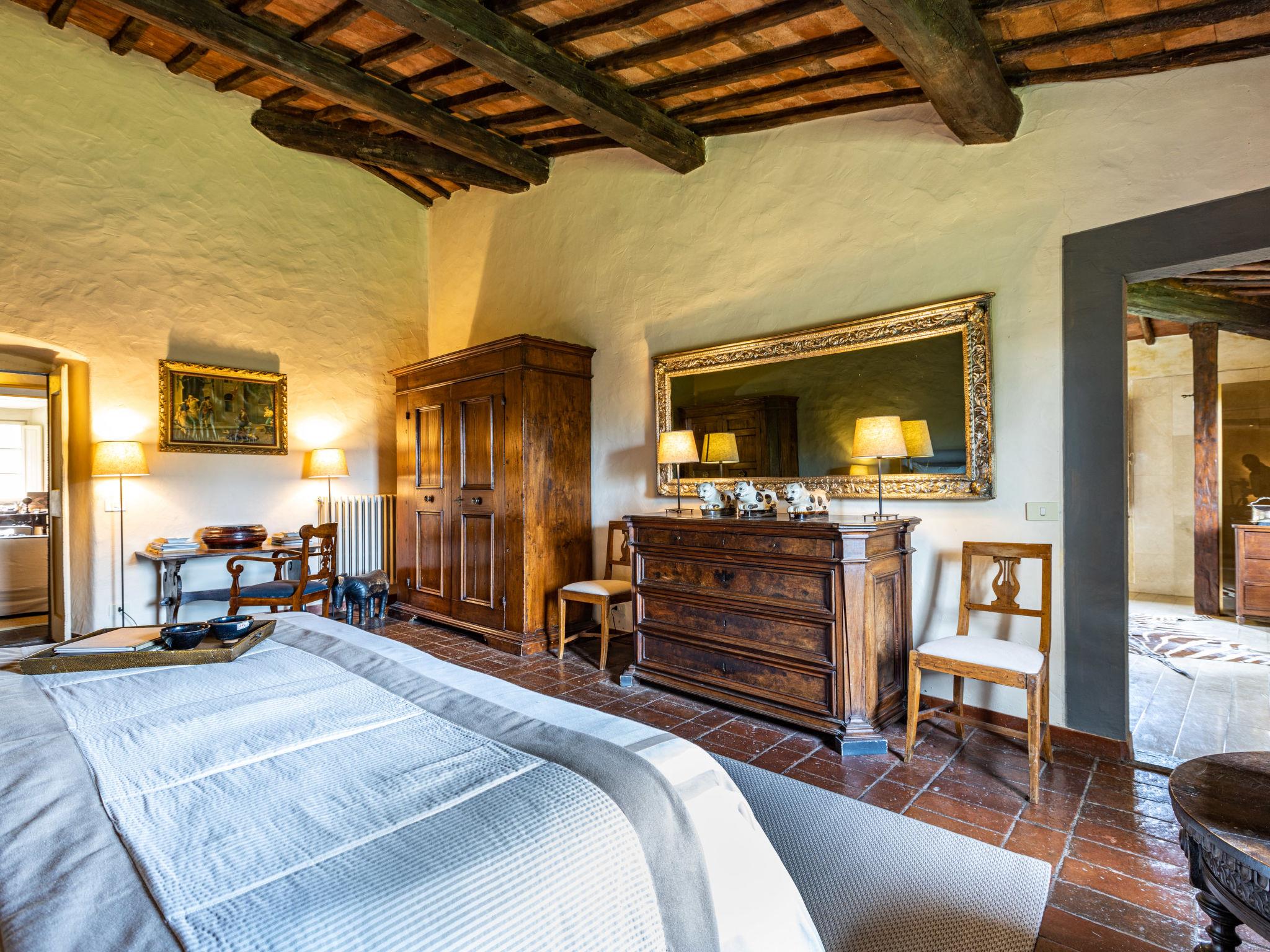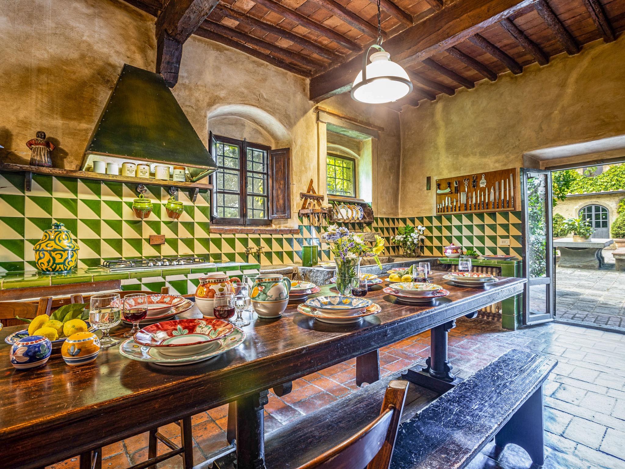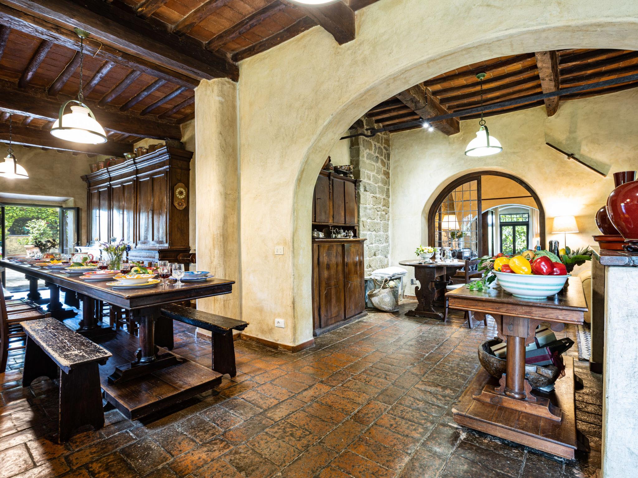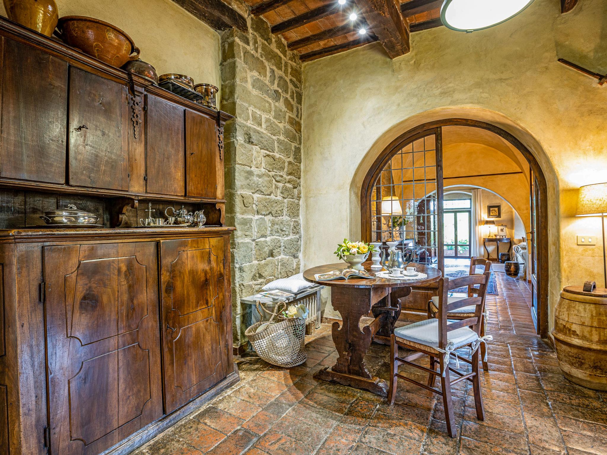 "La Torre + Fienile + Casa Prato", 16-room villa 900 m2 on 2 levels. Spacious, very comfortable and tasteful furnishings: large entrance hall. Large lounge with open-hearth fireplace. Exit to the garden. Large dining room. Large living room. Exit to the garden, to the swimming pool. Living room. Exit to the garden. 1 room with 3 beds (100 cm, length 200 cm), bath/shower/bidet/WC. Exit to the patio. Large, open kitchen (oven, dishwasher, toaster, kettle, microwave, freezer, electric coffee machine) with open-hearth fireplace and dining table. Exit to the garden, to the swimming pool. 2 showers/bidet/WC. Upper floor: living room with TV (flat screen). 2 large double bedrooms, each room with bath/shower/bidet/WC and double hand-basin. 1 room with 2 beds (100 cm, length 200 cm), shower/bidet/WC. 2 rooms, each room with 1 bed (100 cm, length 200 cm), 1 double bed and shower/bidet/WC. 1 double bedroom with shower/bidet/WC. Exit to the balcony. 1 double bedroom with shower/bidet/WC. 1 room with 1 french bed (150 cm), shower/bidet/WC. Natural stone floors. Comfortable furnishings in the country house style. Terrace, patio. Terrace furniture, barbecue, deck chairs, box-room. Very beautiful panoramic view. Facilities: washing machine, dryer, safe, iron, mosquito net, children's high chair, baby cot for up to 2 year olds, hair dryer, logs (extra). Internet (WiFi, free). Parking (10 cars) at the house. E-charging station. Please note: non-smokers only. Maximum 2 pets/ dogs allowed. No internal connecting door between the separated properties. The pool mentioned in the description is for private use. Torre for 8 people, Fienile for 6-8 People, Prato for 4-6 People. When there are less than the maximum number of guests staying at the property, not all of the housing units will be available for use. IT048052C2ZVK7L8OR