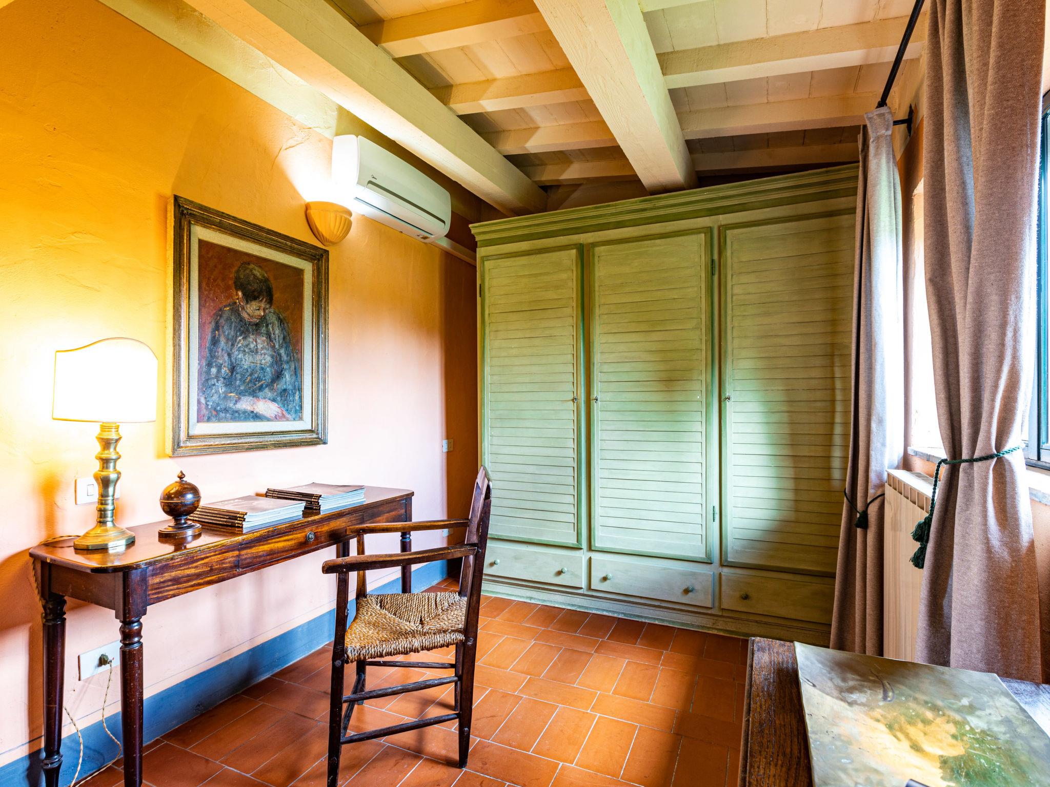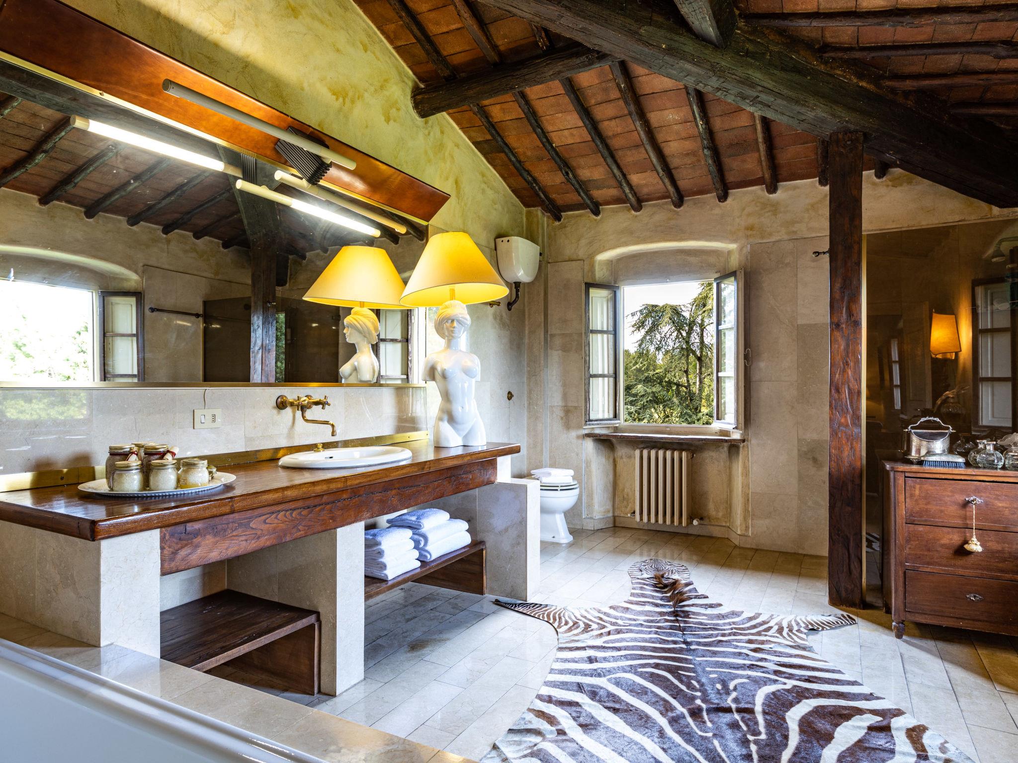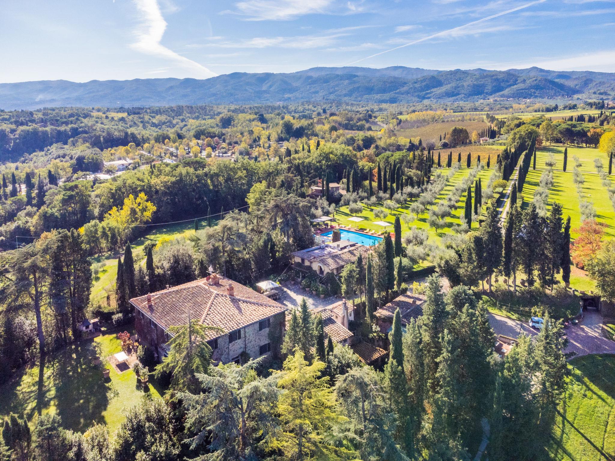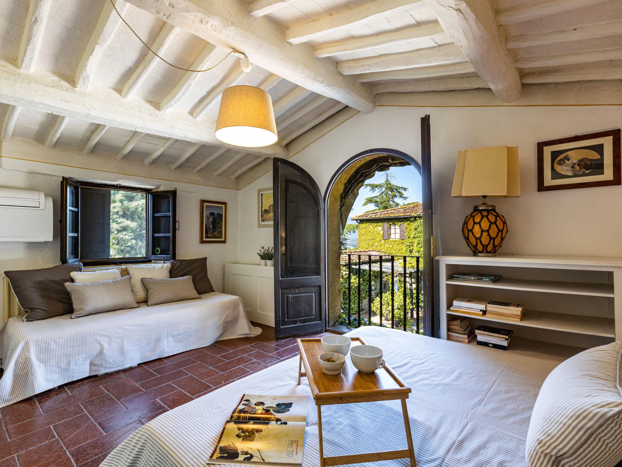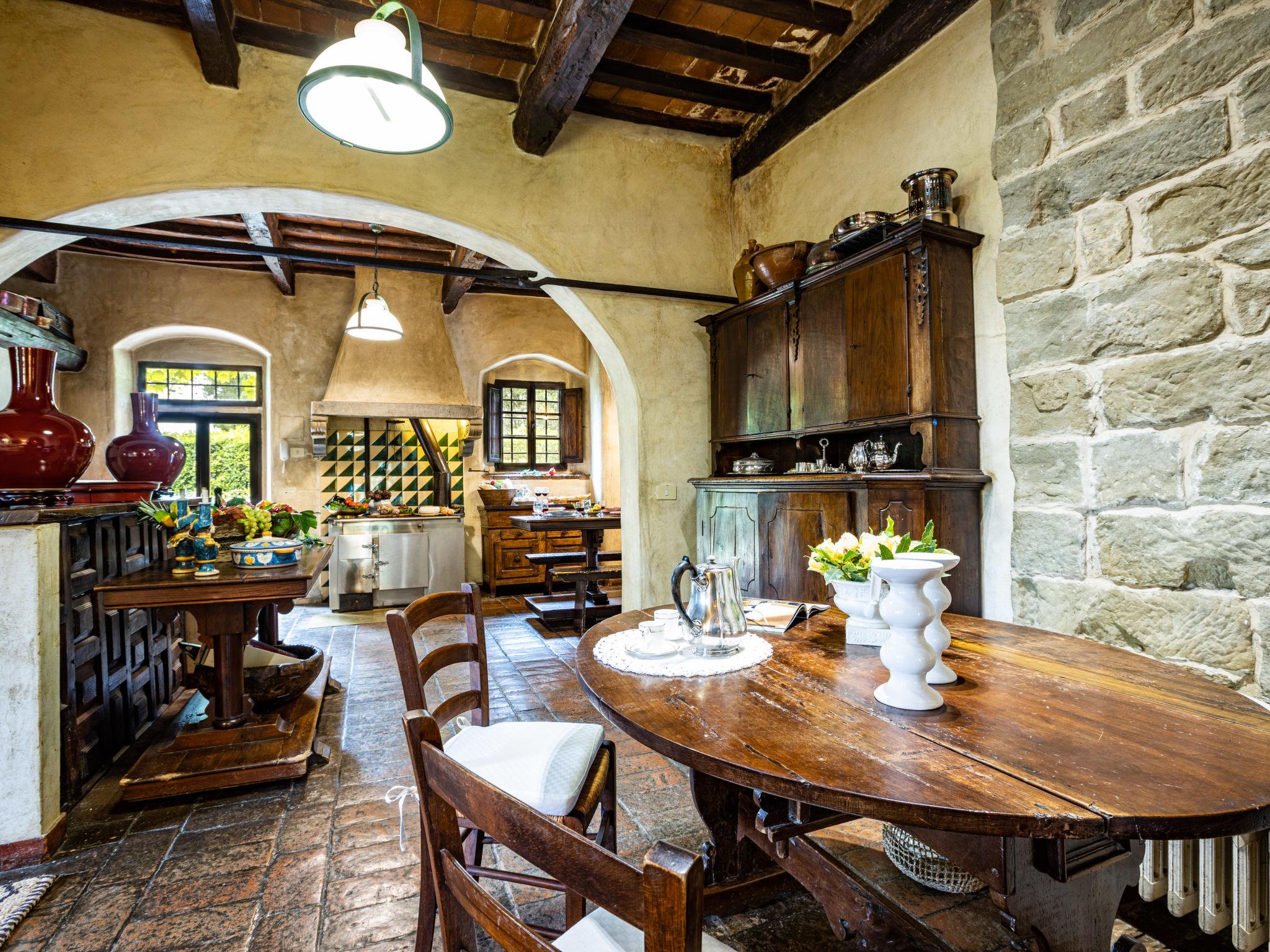 "La Torre + Fienile + Casa Prato", 16-room villa 900 m2 on 2 levels. Spacious, very comfortable and tasteful furnishings: large entrance hall. Large lounge with open-hearth fireplace. Exit to the garden. Large dining room. Large living room. Exit to the garden, to the swimming pool. Living room. Exit to the garden. 1 room with 3 beds (100 cm, length 200 cm), bath/shower/bidet/WC. Exit to the patio. Large, open kitchen (oven, dishwasher, toaster, kettle, microwave, freezer, electric coffee machine) with open-hearth fireplace and dining table. Exit to the garden, to the swimming pool. 2 showers/bidet/WC. Upper floor: living room with TV (flat screen). 2 large double bedrooms, each room with bath/shower/bidet/WC and double hand-basin. 1 room with 2 beds (100 cm, length 200 cm), shower/bidet/WC. 2 rooms, each room with 1 bed (100 cm, length 200 cm), 1 double bed and shower/bidet/WC. 1 double bedroom with shower/bidet/WC. Exit to the balcony. 1 double bedroom with shower/bidet/WC. 1 room with 1 french bed (150 cm), shower/bidet/WC. Natural stone floors. Comfortable furnishings in the country house style. Terrace, patio. Terrace furniture, barbecue, deck chairs, box-room. Very beautiful panoramic view. Facilities: washing machine, dryer, safe, iron, mosquito net, children's high chair, baby cot for up to 2 year olds, hair dryer, logs (extra). Internet (WiFi, free). Parking (10 cars) at the house. E-charging station. Please note: non-smokers only. Maximum 2 pets/ dogs allowed. No internal connecting door between the separated properties. The pool mentioned in the description is for private use. Torre for 8 people, Fienile for 6-8 People, Prato for 4-6 People. When there are less than the maximum number of guests staying at the property, not all of the housing units will be available for use. IT048052C2ZVK7L8OR