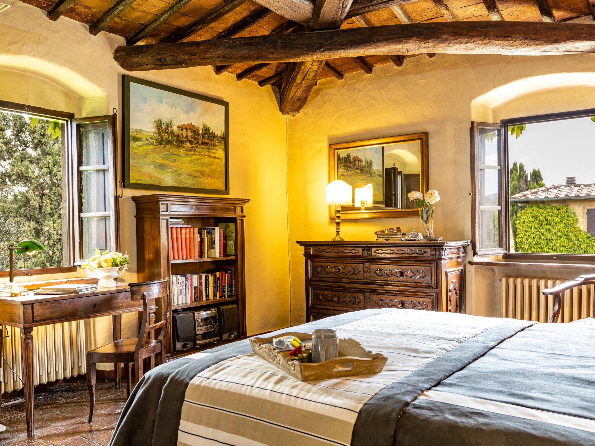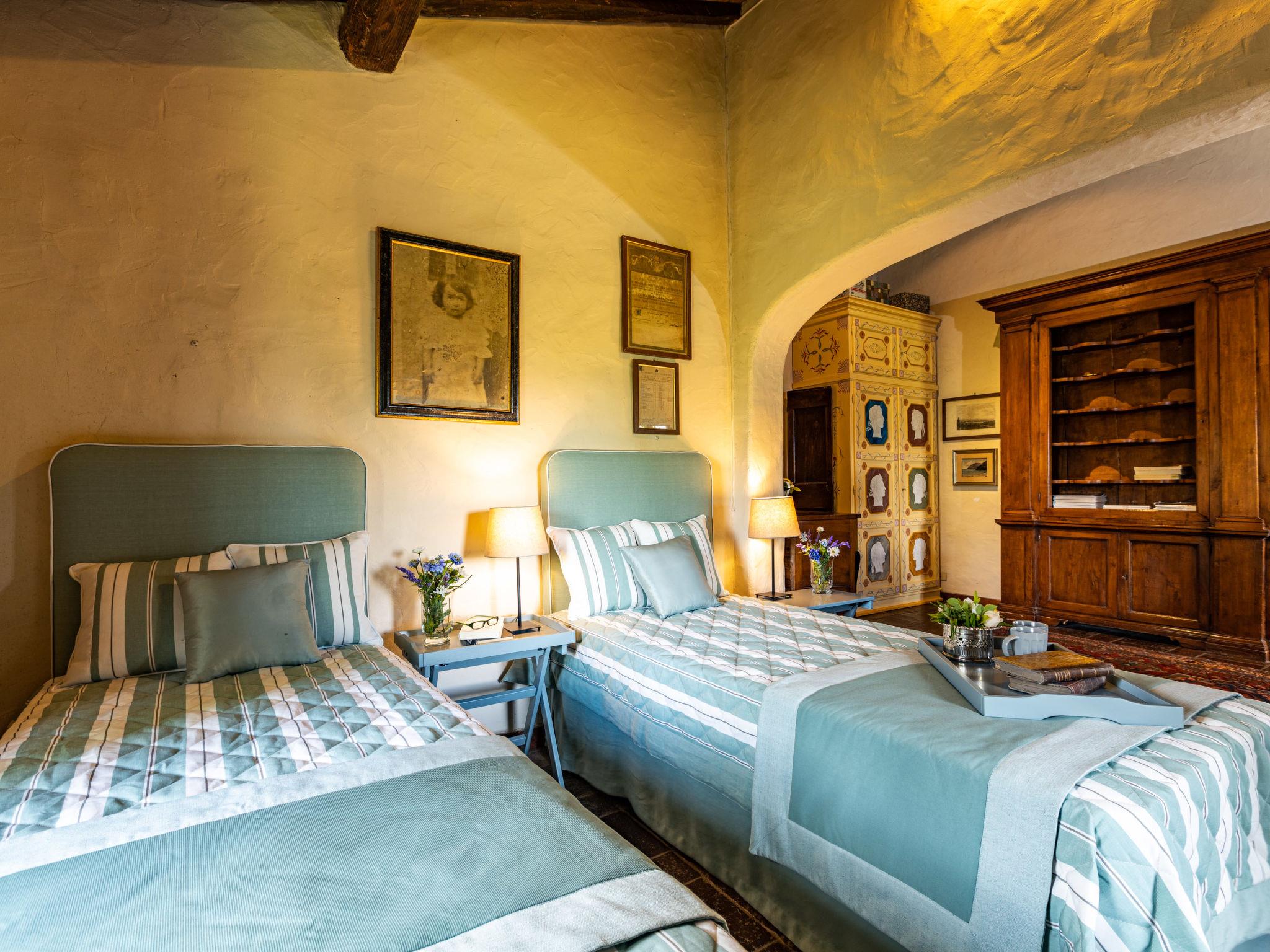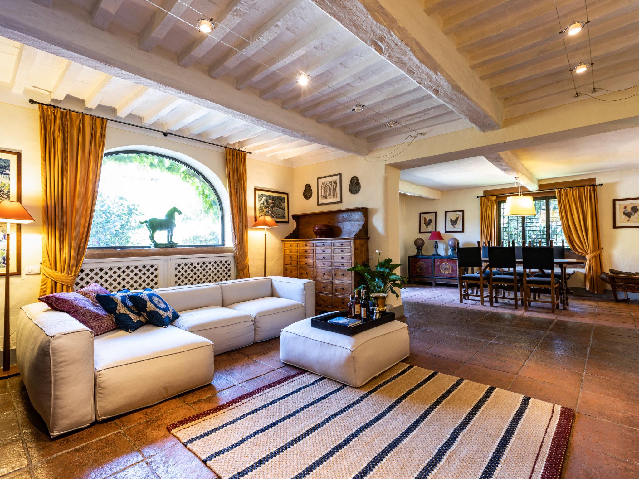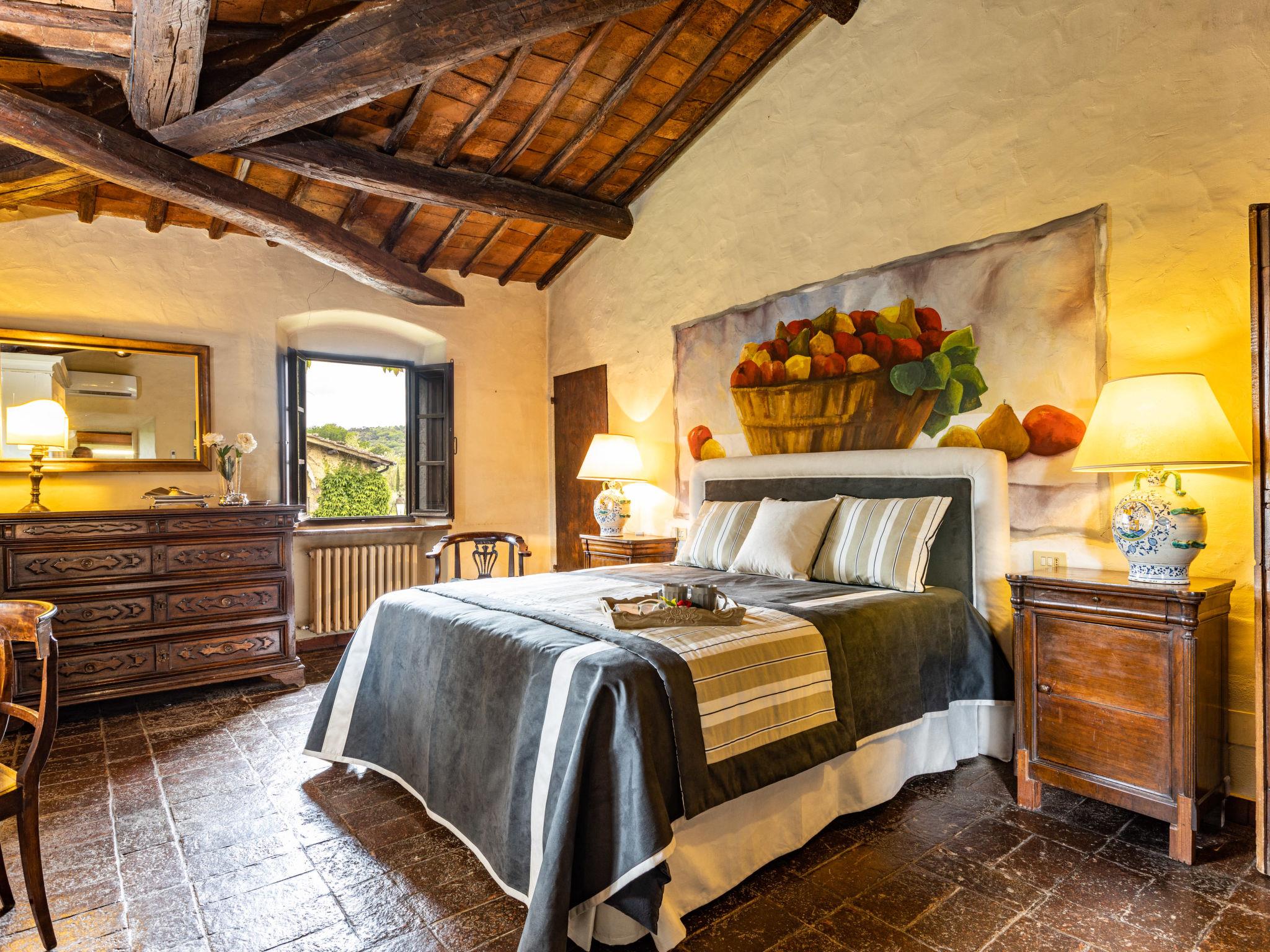 "La Torre + Fienile + Casa Prato", 16-room villa 900 m2 on 2 levels. Spacious, very comfortable and tasteful furnishings: large entrance hall. Large lounge with open-hearth fireplace. Exit to the garden. Large dining room. Large living room. Exit to the garden, to the swimming pool. Living room. Exit to the garden. 1 room with 3 beds (100 cm, length 200 cm), bath/shower/bidet/WC. Exit to the patio. Large, open kitchen (oven, dishwasher, toaster, kettle, microwave, freezer, electric coffee machine) with open-hearth fireplace and dining table. Exit to the garden, to the swimming pool. 2 showers/bidet/WC. Upper floor: living room with TV (flat screen). 2 large double bedrooms, each room with bath/shower/bidet/WC and double hand-basin. 1 room with 2 beds (100 cm, length 200 cm), shower/bidet/WC. 2 rooms, each room with 1 bed (100 cm, length 200 cm), 1 double bed and shower/bidet/WC. 1 double bedroom with shower/bidet/WC. Exit to the balcony. 1 double bedroom with shower/bidet/WC. 1 room with 1 french bed (150 cm), shower/bidet/WC. Natural stone floors. Comfortable furnishings in the country house style. Terrace, patio. Terrace furniture, barbecue, deck chairs, box-room. Very beautiful panoramic view. Facilities: washing machine, dryer, safe, iron, mosquito net, children's high chair, baby cot for up to 2 year olds, hair dryer, logs (extra). Internet (WiFi, free). Parking (10 cars) at the house. E-charging station. Please note: non-smokers only. Maximum 2 pets/ dogs allowed. No internal connecting door between the separated properties. The pool mentioned in the description is for private use. Torre for 8 people, Fienile for 6-8 People, Prato for 4-6 People. When there are less than the maximum number of guests staying at the property, not all of the housing units will be available for use. IT048052C2ZVK7L8OR