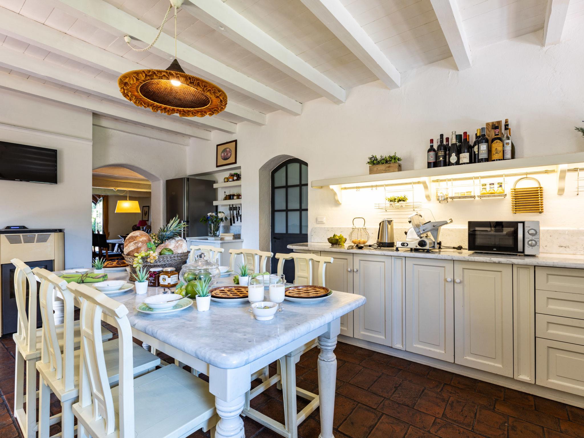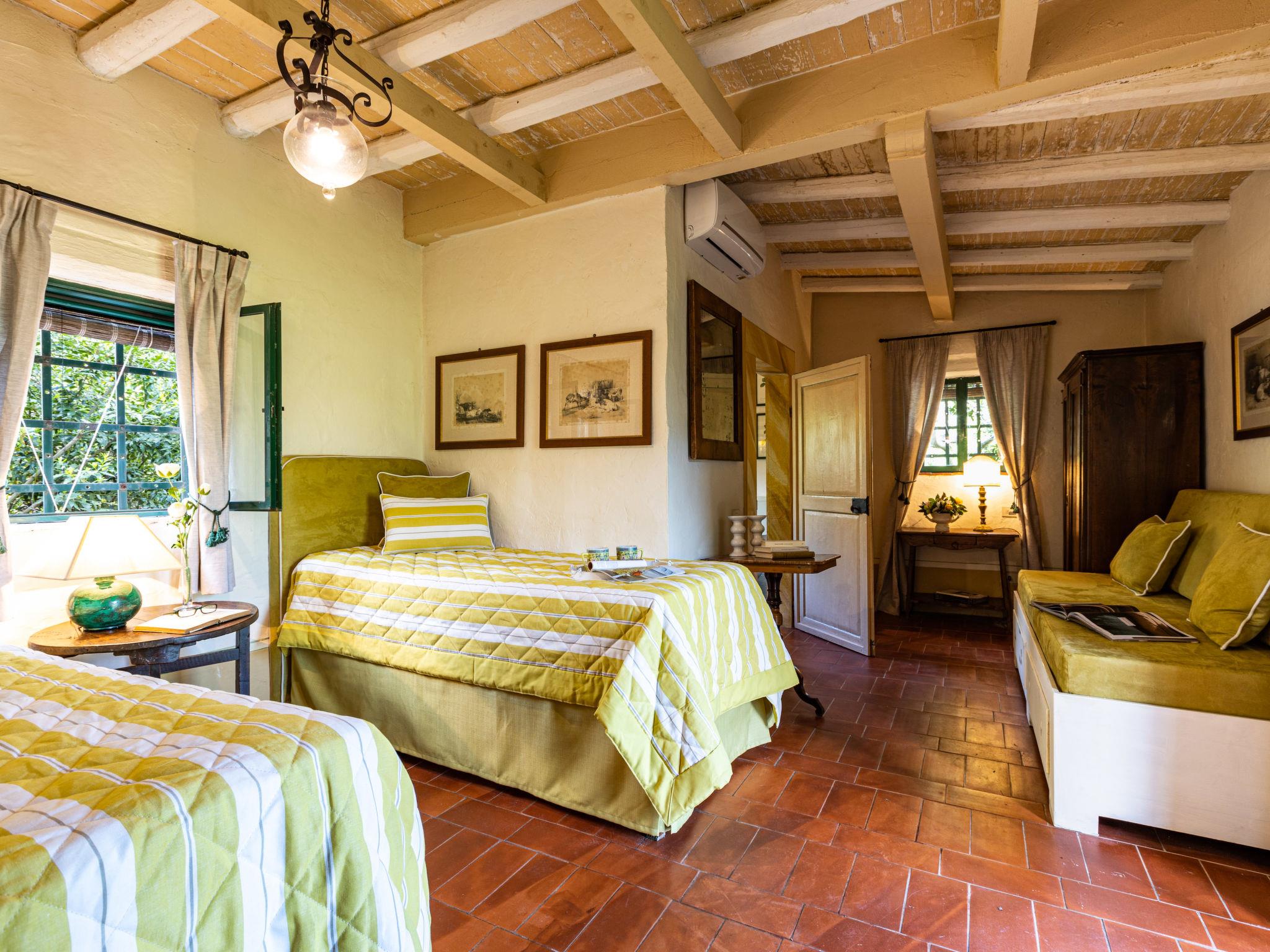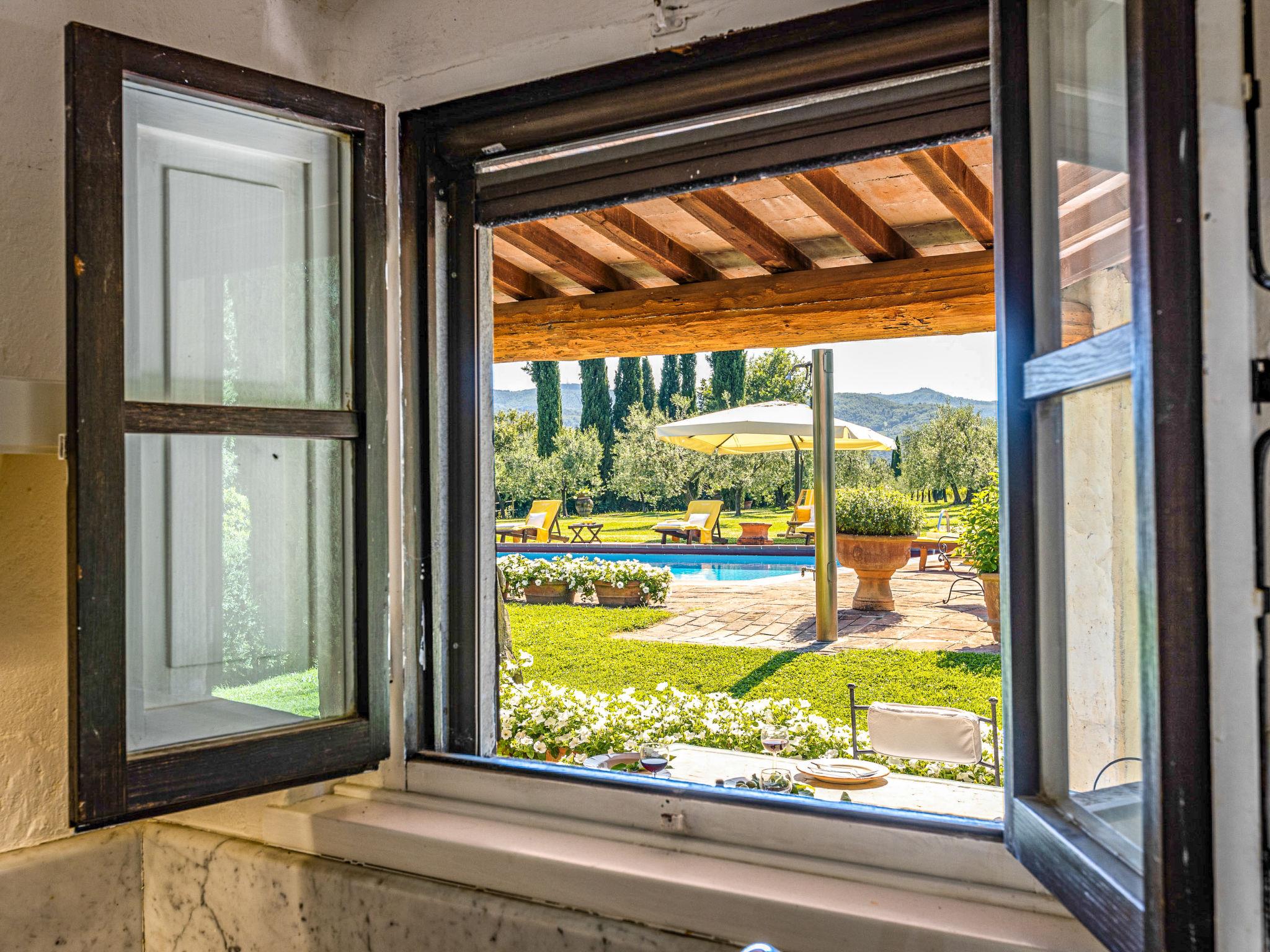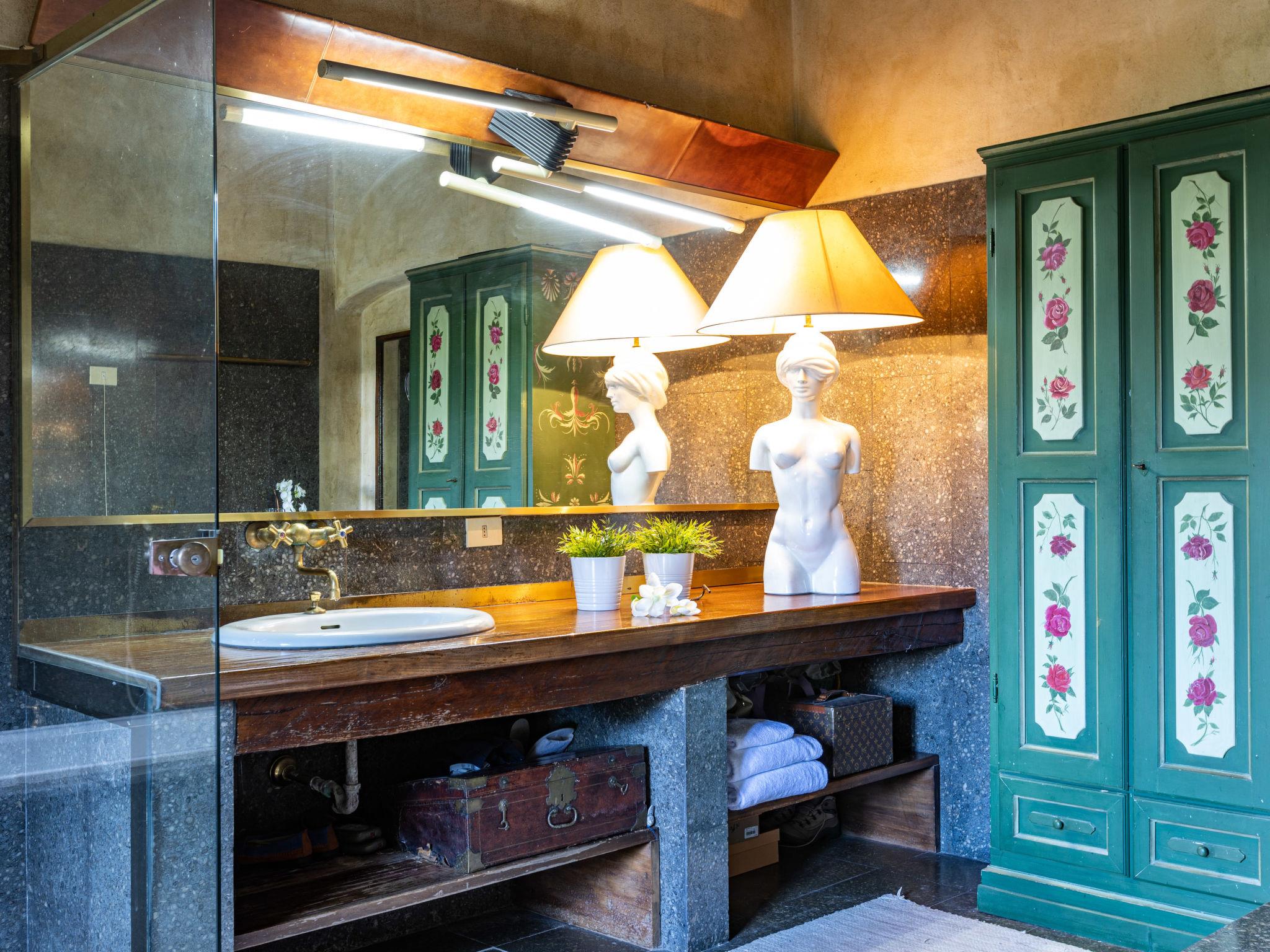 "La Torre + Fienile + Casa Prato", 16-room villa 900 m2 on 2 levels. Spacious, very comfortable and tasteful furnishings: large entrance hall. Large lounge with open-hearth fireplace. Exit to the garden. Large dining room. Large living room. Exit to the garden, to the swimming pool. Living room. Exit to the garden. 1 room with 3 beds (100 cm, length 200 cm), bath/shower/bidet/WC. Exit to the patio. Large, open kitchen (oven, dishwasher, toaster, kettle, microwave, freezer, electric coffee machine) with open-hearth fireplace and dining table. Exit to the garden, to the swimming pool. 2 showers/bidet/WC. Upper floor: living room with TV (flat screen). 2 large double bedrooms, each room with bath/shower/bidet/WC and double hand-basin. 1 room with 2 beds (100 cm, length 200 cm), shower/bidet/WC. 2 rooms, each room with 1 bed (100 cm, length 200 cm), 1 double bed and shower/bidet/WC. 1 double bedroom with shower/bidet/WC. Exit to the balcony. 1 double bedroom with shower/bidet/WC. 1 room with 1 french bed (150 cm), shower/bidet/WC. Natural stone floors. Comfortable furnishings in the country house style. Terrace, patio. Terrace furniture, barbecue, deck chairs, box-room. Very beautiful panoramic view. Facilities: washing machine, dryer, safe, iron, mosquito net, children's high chair, baby cot for up to 2 year olds, hair dryer, logs (extra). Internet (WiFi, free). Parking (10 cars) at the house. E-charging station. Please note: non-smokers only. Maximum 2 pets/ dogs allowed. No internal connecting door between the separated properties. The pool mentioned in the description is for private use. Torre for 8 people, Fienile for 6-8 People, Prato for 4-6 People. When there are less than the maximum number of guests staying at the property, not all of the housing units will be available for use. IT048052C2ZVK7L8OR