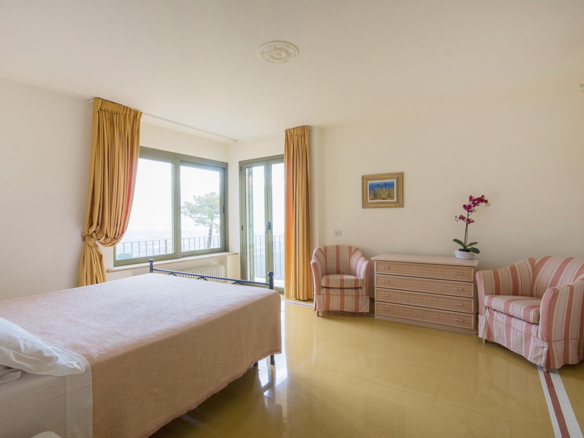 7-room villa 300 m2 on 3 levels. Spacious and bright, beautiful and stylish furnishings: 2 double bedrooms, each room with air conditioning. 1 room with panoramic window with 1 double sofabed, 1 double bed, shower/bidet/WC and air conditioning. Exit to the terrace. Bath/bidet/WC, shower/bidet/WC. Gas heating, air-conditioning. Heating available only from 01.11. to 15.04. Upper floor: dining room 21 m2 with panoramic window with dining table. Exit to the terrace. Large living room 87 m2 with sliding door, panoramic window with TV (flat screen). Exit to the terrace. Large kitchen 27 m2 (5 hot plates, oven, dishwasher, microwave, electric coffee machine). Exit to the garden. Bathroom. 2nd upper floor: 1 large room 30 m2, with sloping ceilings with sliding door, panoramic window with 1 double sofabed, 1 double bed, bath/bidet/WC and air conditioning. Exit to the balcony. 3 terraces. Barbecue (portable). Very beautiful view of the sea. Facilities: washing machine, iron, hair dryer. Internet (WiFi, free). Parking (fenced 3 cars) at the house. Please note: non-smoking house. Maximum 3 small pets/ dogs allowed. The property is on three levels and features neutral-coloured fine furnishings and finishes with large windows that allow the natural light to flow through the spaces. IT045011C2WC2PUTS4