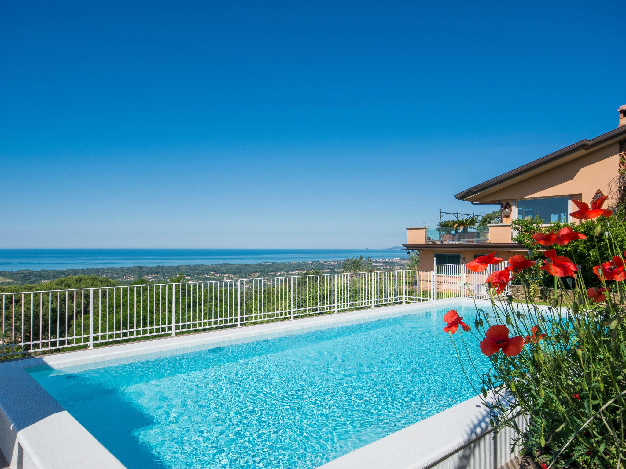 Villa Delfina is situated in an elevated position in the hills above Forte de Marmi, with views of the entire coastline. Its strategic position means that, while close to all of Versilia’s most famous attractions, the property is at the same time located in a quiet and private area, surrounded by green shrubs, succulents and colourful plants. Beautiful villa "Delfina", detached. In the hamlet Palatina 9 km from the centre of Forte de Marmi, in a sunny position on top of a hill, traffic calmed area, 8 km from the sea. Private: property 5'000 m2 (fenced), terraced garden with lawn and wildlife garden, swimming pool fenced (12 x 8 m, depth 140 cm, seasonal availability: 01.May. - 15.Oct.). Outdoor shower, patio, arbour, garden furniture. In the house: internet access, burglar alarm system, washing machine, heating available only from 01.Nov. - 15.Apr.. Linen change (suppl. charge extra). Parking at the house. Grocery 2 km, supermarket 5 km, restaurant 1 km, bus stop 3 km, railway station "Forte dei Marmi" 7 km, sandy beach "Cinquale" 8 km, thermal baths "San Carlo" 5 km, lake Massaciuccoli 30 km. Marina 15 km, golf course (18 hole) 7 km, sailing school 8 km, tennis 8 km. Nearby attractions: Terme della Versilia 8 km, Pietrasanta 9 km, Lucca 45 km, Pisa 50 km, Cinque Terre 60 km, Firenze 90 km. The house is fully equipped with all amenities and has a delightful garden with pool and furnished area with gazebo and sun loungers, where guests can relax while enjoying the spectacular sea view.
