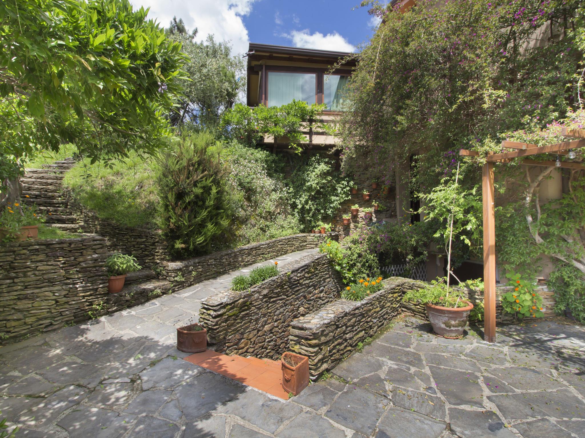 4-room semi-detached house 90 m2 on 2 levels. Comfortable and tasteful furnishings: large living/dining room with panoramic window with open-hearth fireplace (only for decoration), satellite TV and air conditioning. Exit to the loggia. 1 room with panoramic window with 1 double sofabed, shower/bidet/WC and air conditioning. Kitchen (4 hot plates, oven, dishwasher, toaster, kettle, microwave, electric coffee machine). Upper floor: 1 open double bedroom with sloping ceilings with air conditioning. Shower/bidet/WC. Electric heating, air-conditioning. Heating available only from 01.11. to 15.04. Terrace, garden. Terrace furniture, barbecue. Panoramic view of the sea and the valley. Facilities: children's high chair, baby cot for up to 2 year olds, hair dryer. Internet (WiFi, free). Parking (1 car). Please note: non-smoking house. Maximum 1 pet/ dog allowed. Smoke alarm, fire extinguisher. From Marina di Massa you can reach the Cinque Terre as a day trip in the summer. IT045010C2R8PXBGAR
