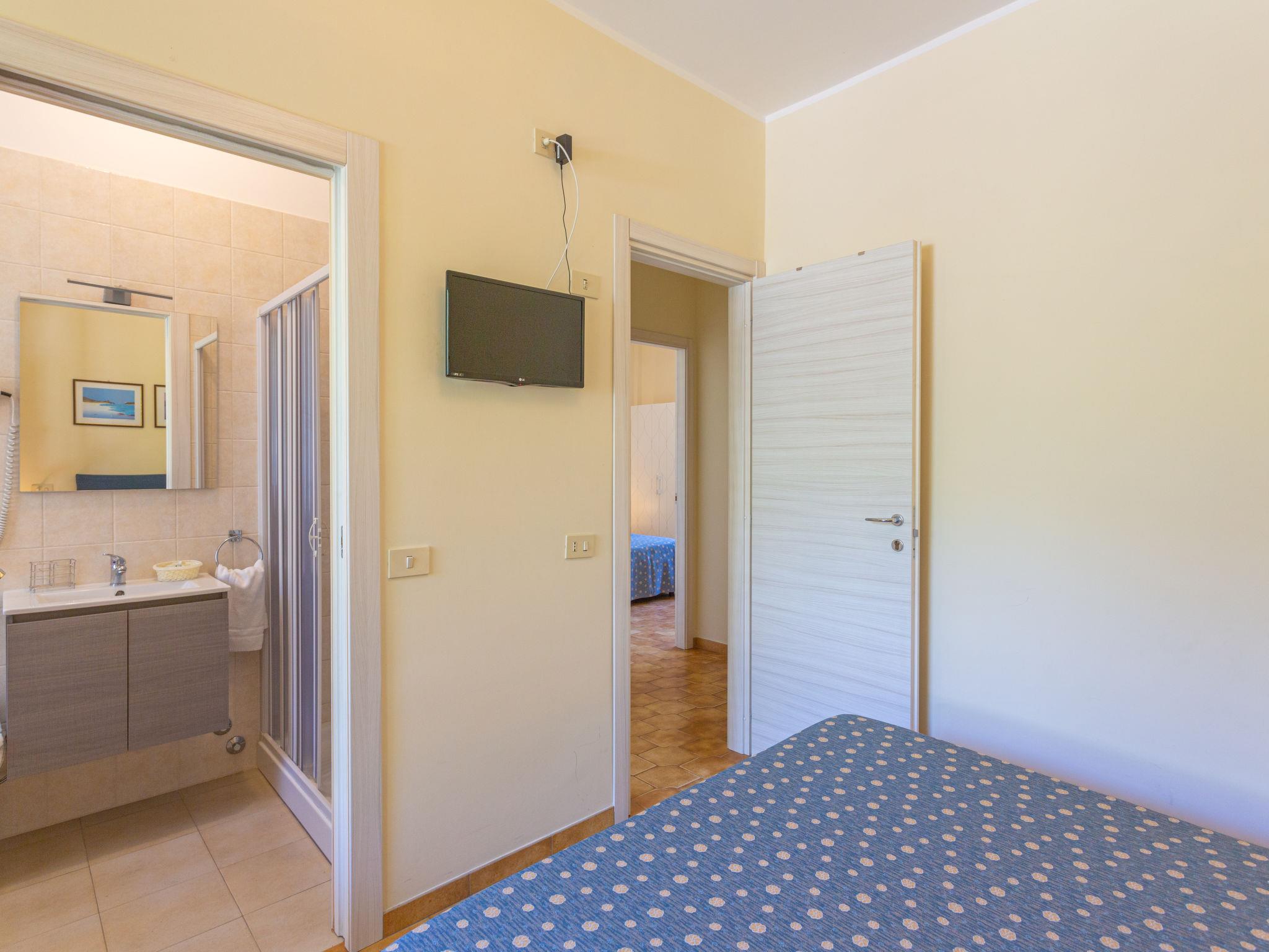 "Mare Blu (FVM100)", 3-room apartment 50 m2, on the ground floor. Renovated in 2018, beautiful and modern furnishings: 1 room with 1 french bed (160 cm), shower/WC. 1 room with 2 beds and shower/WC. Kitchen-/living room (2 induction hot plates, microwave, electric coffee machine) with dining table, satellite TV. Exit to the terrace. Gas heating, air-conditioning. Terrace. Terrace furniture. Facilities: children's high chair, baby cot for up to 2 year olds. Internet (WiFi, free). Please note: suitable for families. Non-smokers only. IT069035A136OA6XHA