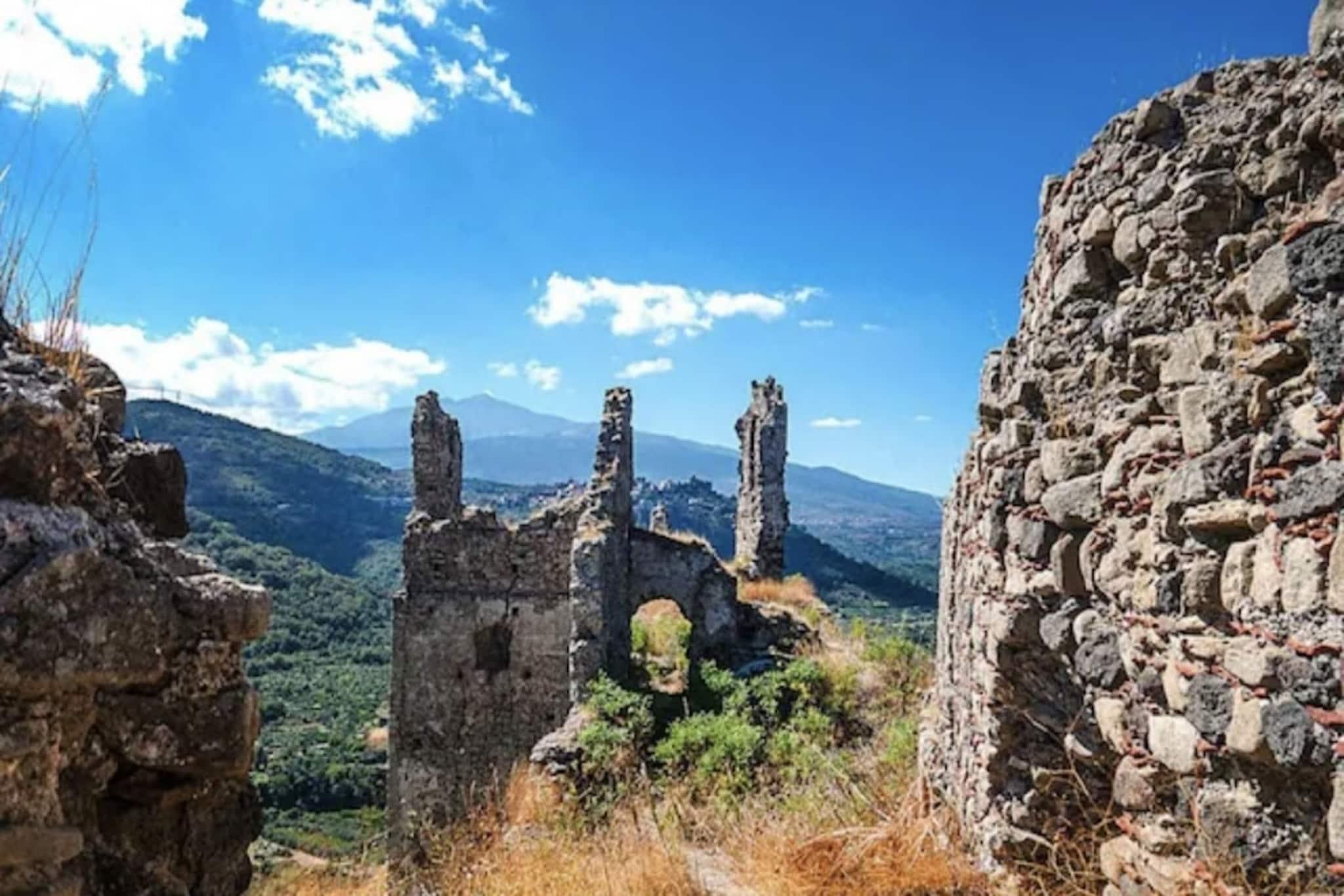 På en grund på 500 kvadratmeter: sommerhus med privat pool og panoramaudsigt. Den typiske indretning og de smukke omgivelser gør din ferie til noget helt særligt. Her spiller elementerne vand og ild en stor rolle. Udnyt for eksempel Francavilla di Sicilias brede udvalg af fritidsaktiviteter eller tag til havet og lad dig forkæle dig selv med forskellige vandsportsaktiviteter. Kanoer og jetski kan lejes i havnen i Taormina. Det er mere afslappet på en sejltur. Du kan opleve ildens kraft på en dagstur til Etna. Detaljer: Forbrugsbaserede energiomkostninger, sengelinned, håndklæder, slutrengøring, WiFi Aktiviteter i nærheden: Busture gennem lavalandskabet starter fra de to turistcentre på Etna, du flyder i svævebanen over forrevne månelandskaber eller bestiger endda toppen med en uddannet bjergguide: det er 3323 meter det højeste punkt på en aktiv vulkan i Europa mobilitet over havets overflade: Ikke egnet til personer med nedsat mobilitet