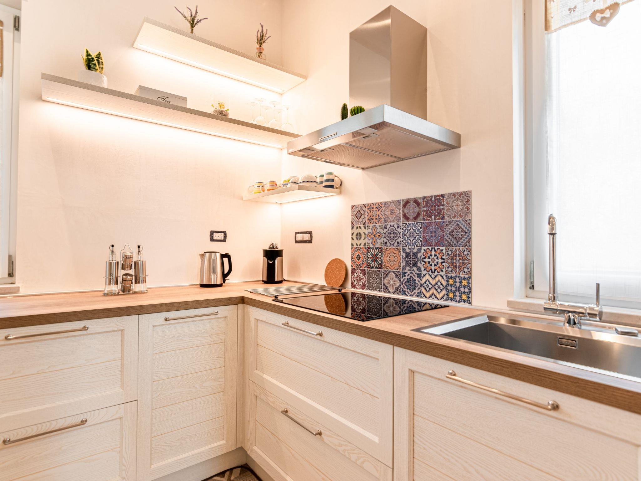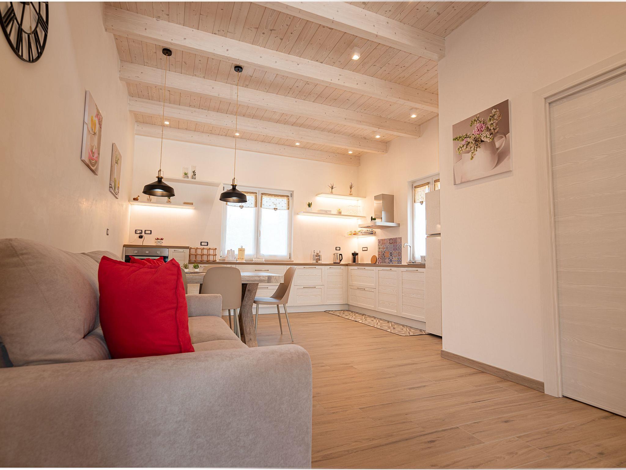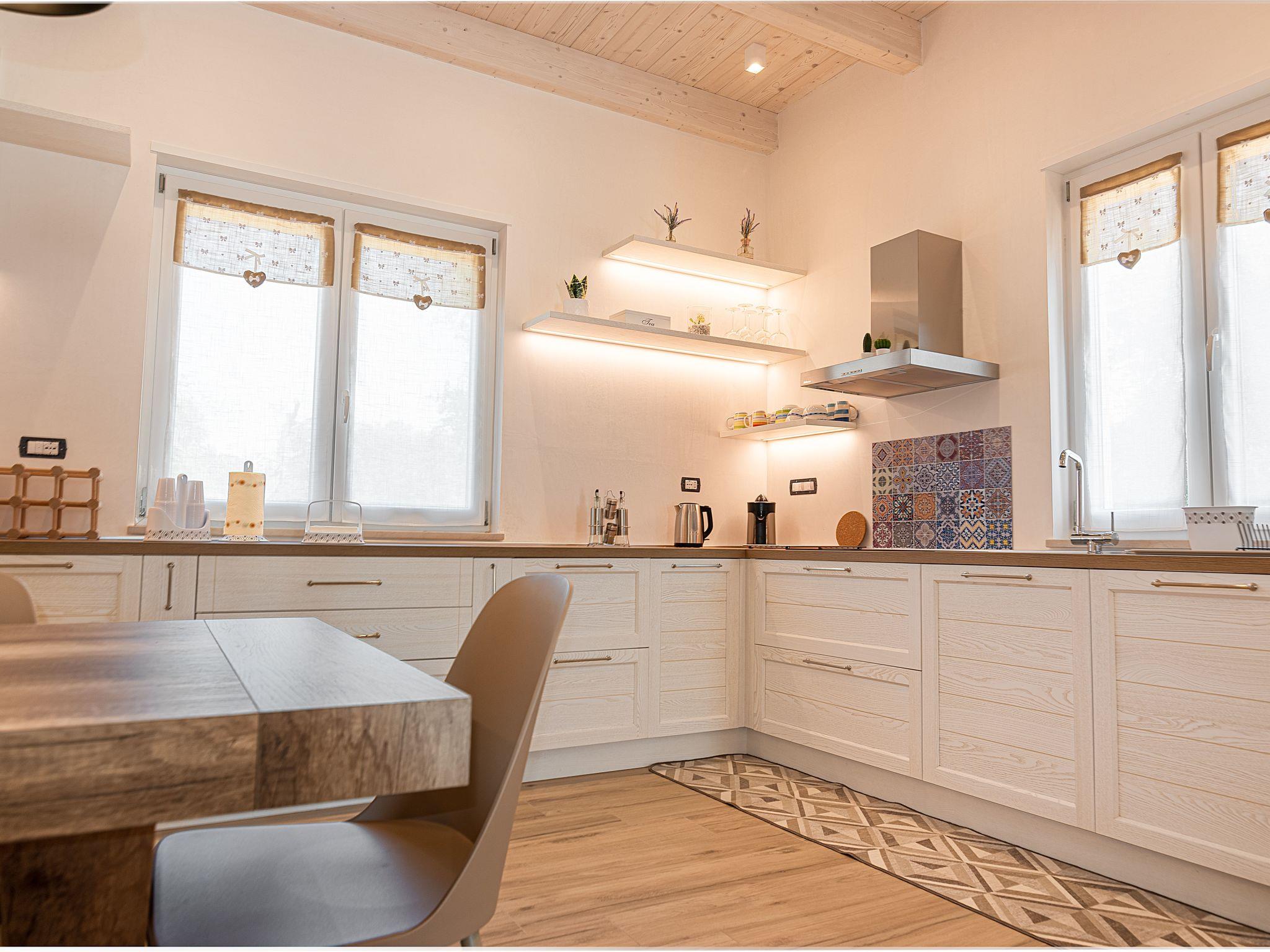 The dining area is adjacent to the living room, where you can enjoy meals prepared in our fully equipped kitchen. A spacious table welcomes you to share convivial moments with your loved ones or friends, while you delight in the authentic flavours of Salento.