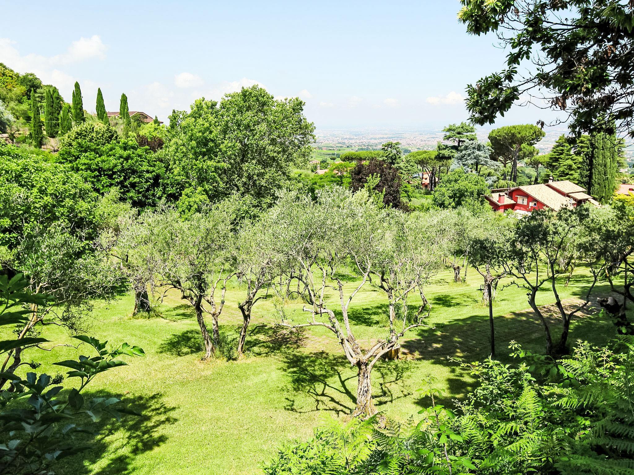 Montecomprati 7 km from Frascati: Beautiful, comfortable villa "Villa Mina", 600 m a.s.l., detached. 35 km from the centre of Roma, in a quiet, sunny position residential area (villas), 30 km from the sea. Private: park 10'000 m2 (fenced), flowers and trees, beautiful garden to relax, swimming pool (6 x 12 m, depth 150 - 190 cm, seasonal availability: 01.Jun. - 31.Aug.). Outdoor shower, tennis, patio, pergola, garden furniture, barbecue, barbecue house. In the house: central heating system, air conditioning, heating to be paid on the spot (01.Nov. - 01.May.). Towel change (suppl. charge extra). Room cleaning daily on request (extra). House maid daily on request (extra). Cook on request (extra). Pre-arrival grocery service. Airport transfer (extra). Parking (for 5 cars). Shop 3 km, grocery 3 km, supermarket 3 km, restaurant 3 km, bar 3 m, bakery 3 km, bus stop 1.5 km, railway station "Montecompatri (Roma Termini)" 1 km. Nearby attractions: Frascati, Castel Gandolfo, Parco Castelli Romani, Rocca di Papa, Ariccia, Grottaferrata. Well-known lakes can easily be reached: Lago Albano, Lago di Nemi. Please note: car recommended. Baby equipment on request. Groups of teenagers on request only. Suitable for events. Cooking courses bookable on request. On request: airport transfer to the holiday accommodation. Motorway 5 km from the property. The caretakers live on the lower ground floor.