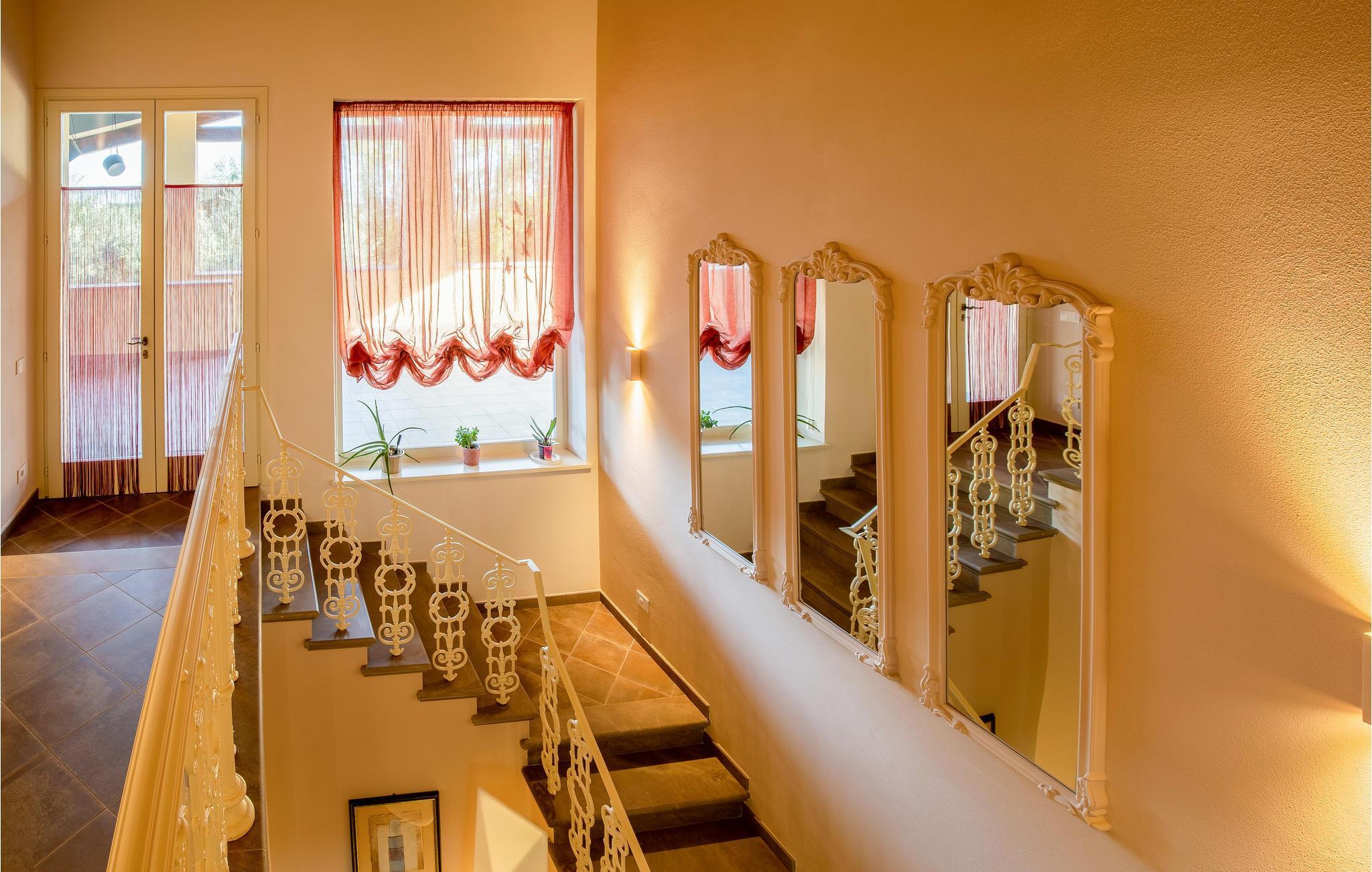 Det yderst rummelige hus byder velkommen i en vidunderlig beliggenhed midt i det maleriske toscanske landskab og byder på plads til en ferie med flere familier. De tiltalende møbler i middelhavsfarver i stil med en landejendom gør det nemt for jer at føle jer hjemme her fra dag ét. Glæd jer til et smukt landskabspanorama og hyggelige aftener på de komfortable sofaer i stuen.