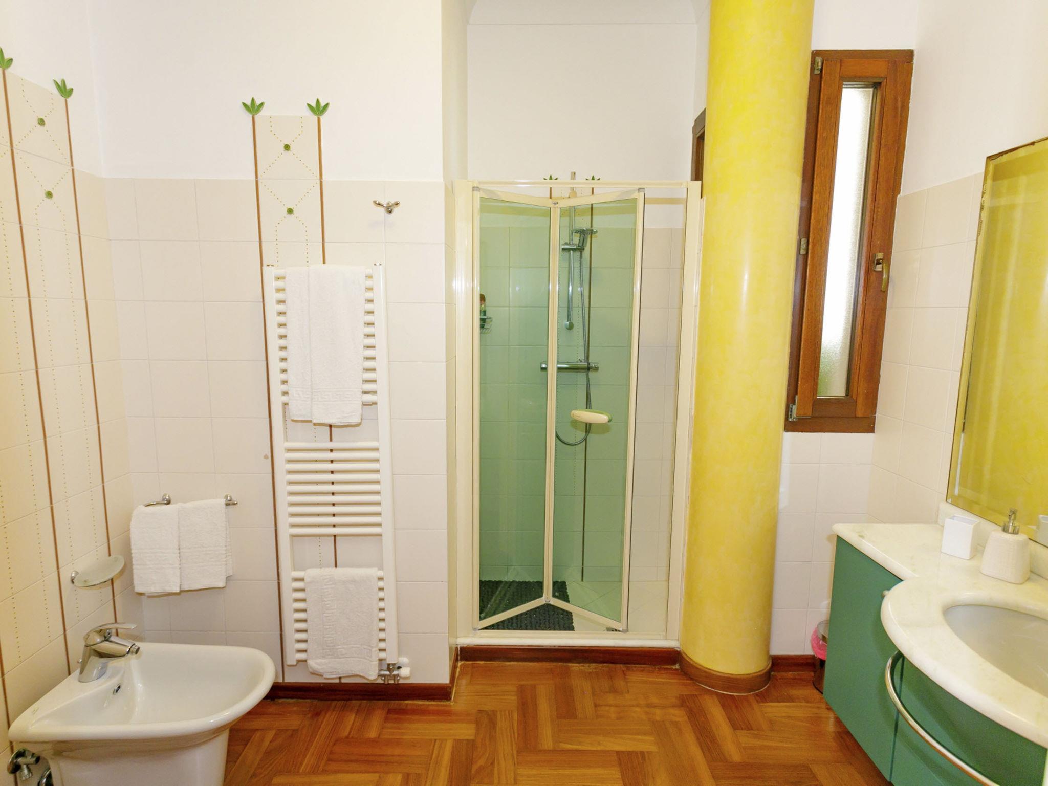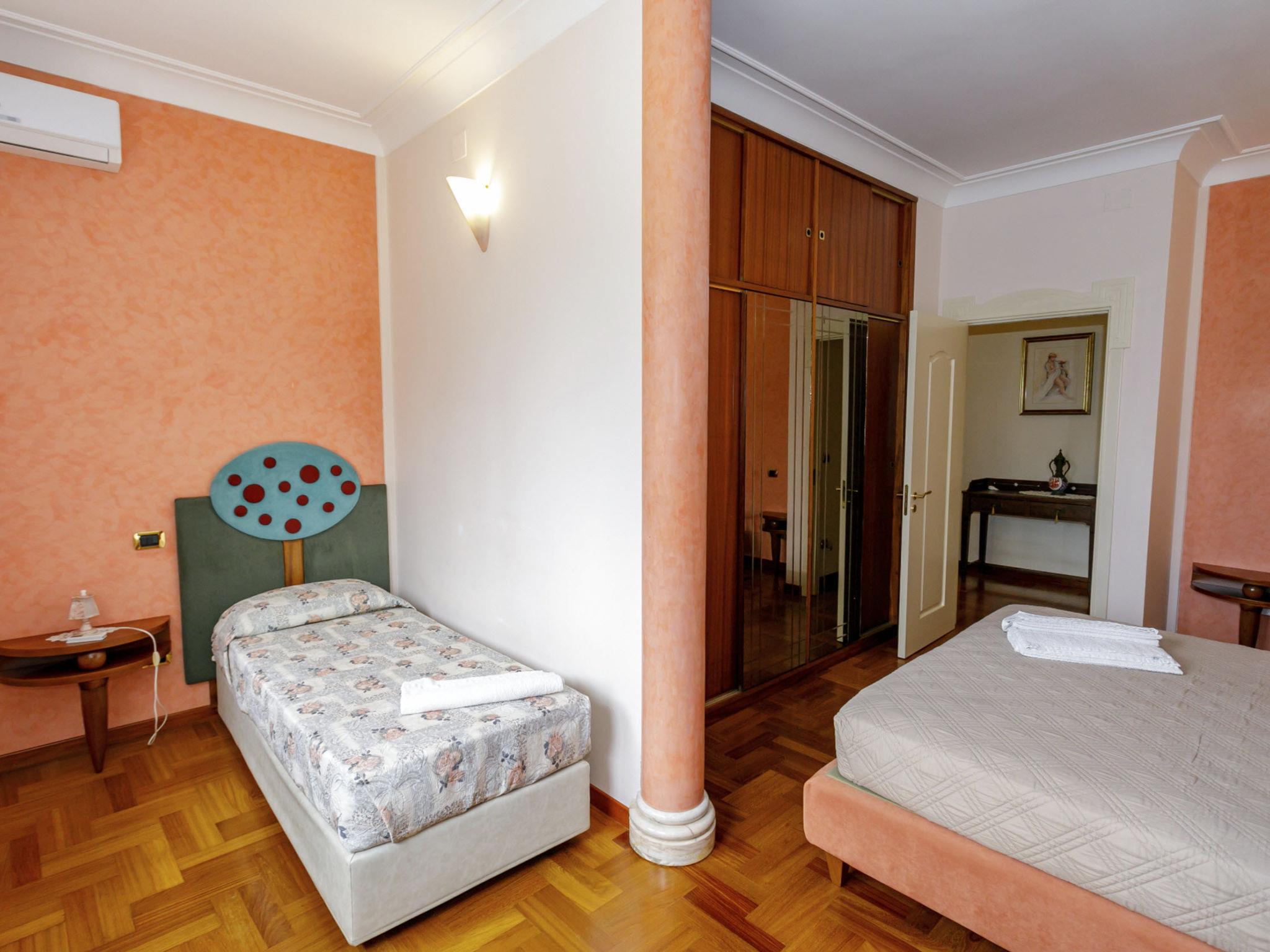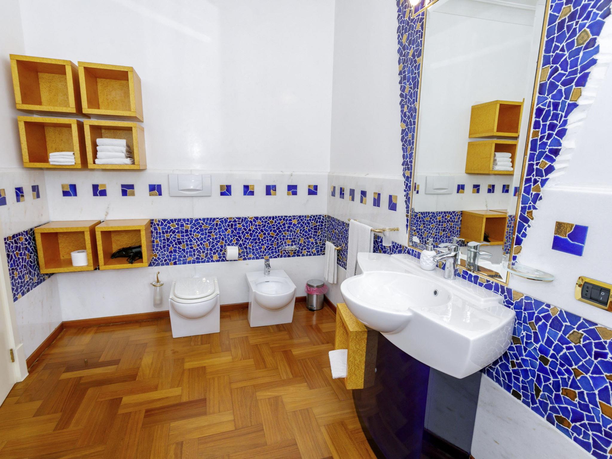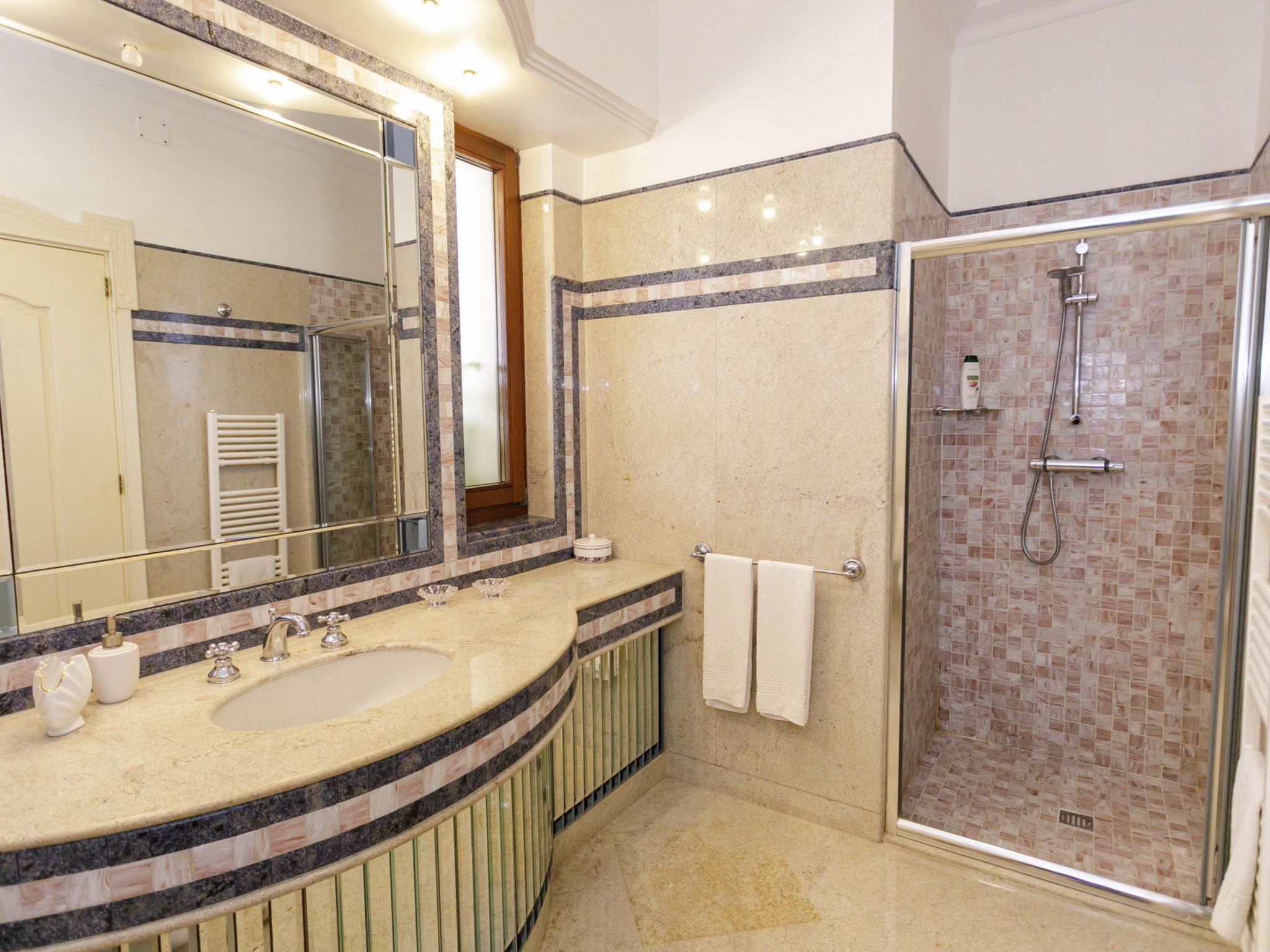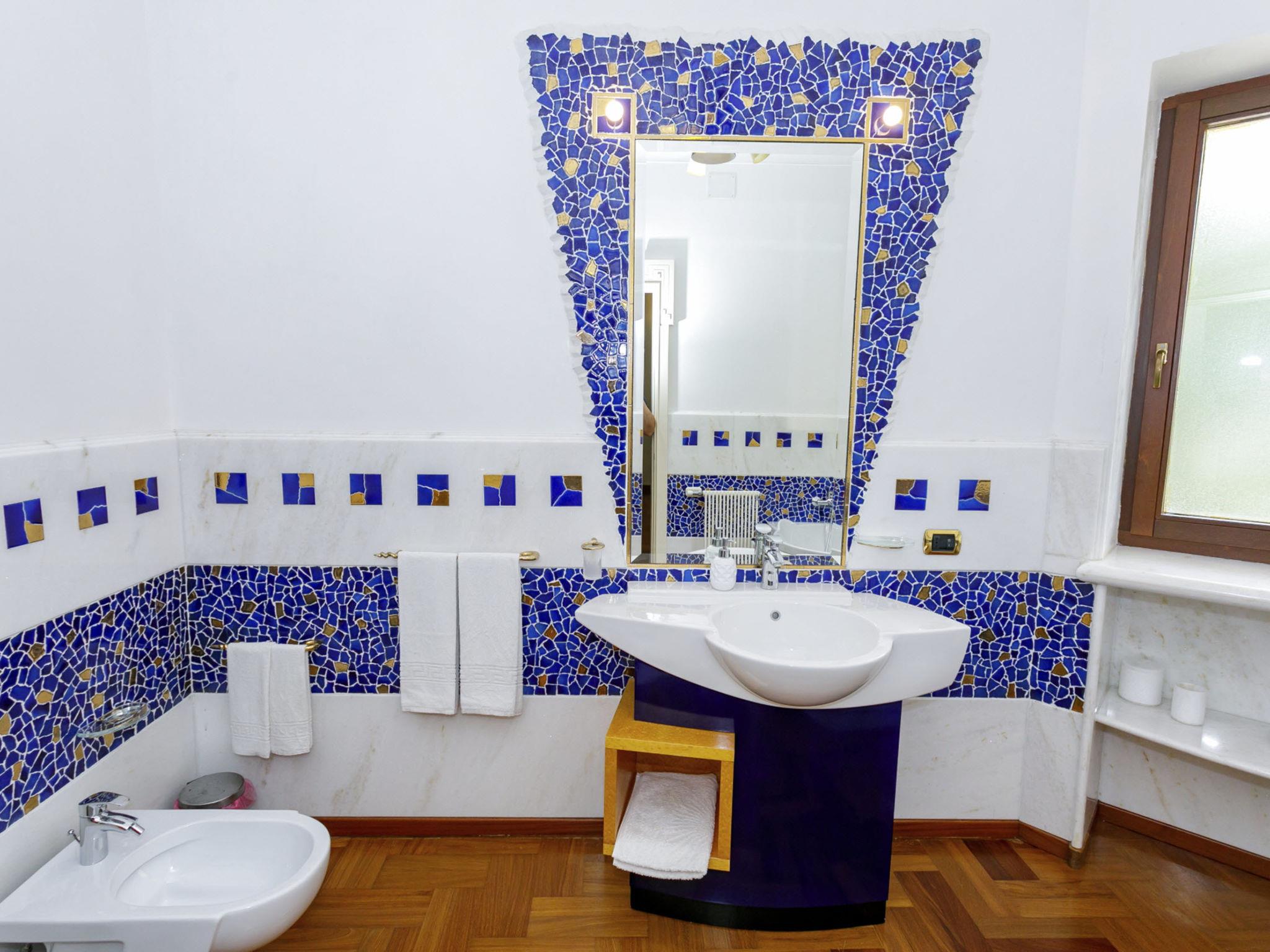 6-room villa 240 m2, on the ground floor. Very stylish and cosy furnishings: entrance hall. Lounge. Dining room with international TV channels, air conditioning and forced-air heating. Exit to the terrace. 1 double bedroom with Dressing room with shower/bidet/WC, international TV channels, air conditioning and forced-air heating. 1 double bedroom with international TV channels, air conditioning and forced-air heating. 1 double bedroom with 1 bed, air conditioning and forced-air heating. 1 double bedroom with 1 bed, air conditioning and forced-air heating. Exit to the garden. Kitchen 12 m2 (mini-oven, dishwasher, Gas stove, 4 gas rings, toaster, kettle, microwave, electric coffee machine). Exit to the terrace. Bath/bidet/WC, shower/bidet/WC, hydro massage bath. Heating, air-conditioning, forced-air heating. Heating available only from 01.11. to 31.03, Heating not available in all rooms. Parquet floors. Large terrace 40 m2, roofed, 2 terraces 10 m2, roofed, patio, large garden, porch 35 m2. Terrace furniture, barbecue, deck chairs (10). View of the swimming pool and the garden. Facilities: washing machine, safe, iron, children's high chair, baby cot for up to 2 year olds, hair dryer. Internet (WiFi, free). Parking (6 cars). Please note: suitable for families. Maximum 1 small pet/ dog allowed. Smoke alarm, fire extinguisher. The villa must be left at 9 am on departure day, in case of arrival of new guests on the same day . IT075052C200037368