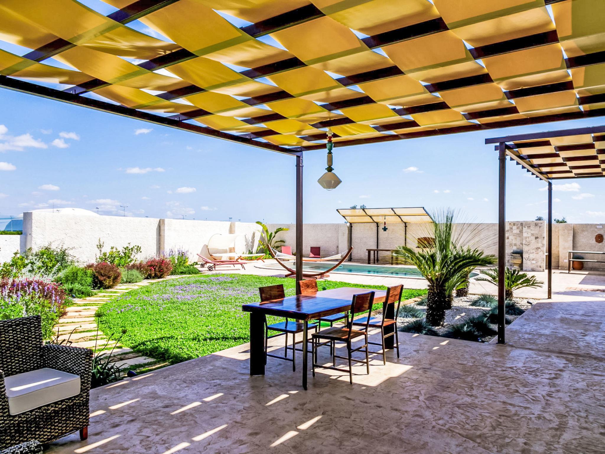 Modern, luxurious villa "Incoronata New Dependance", built in 2024, surrounded by trees and fields. 1 km from the centre of Nardò-Città del Barocco Leccese, 15 km from the centre of Gallipoli, 24 km from the centre of Lecce, in a quiet, sunny position, 3 km from the sea, 3 km from the beach, in the countryside. Private: property (fenced), large, beautiful, well-kept garden 1'200 m2 (fenced) with flowers and trees, lawn for sunbathing, swimming pool with privacy (4 x 10 m, depth 50 - 140 cm, seasonal availability: 01.Apr. - 30.Oct.). WC in the pool area, outdoor shower, pergola, garden furniture, barbecue, pool maintenance by the owner/gardener. In the house: burglar alarm system. Linen change (suppl. charge extra). Towel change (suppl. charge extra). Parking at the house. Grocery, supermarket 700 m, restaurant 3 km, bar 3 km, bakery 3 km, bus stop 700 m, railway station "Nardò" 3 km, sandy beach "Santa Caterina" 3 km, rocky beach "Porto Selvaggio" 3 km. Tennis, sports centre 350 m. Nearby attractions: Melpignano - Città della Taranta 40 km, Otranto 60 km, Santa Maria di Leuca-Punta Sud Puglia 60 km, Alberobello 143 km, Polignano a Mare 149 km, Matera 162 km. Hiking paths: Parco Naturale Porto Selvaggio 25 km, Parco Naturale Terra delle Gravine 119 km, Grotte carsiche di Castellana 155 km. Please note: car recommended. Property ref. IT6770.810.1 is situated on the same property.
