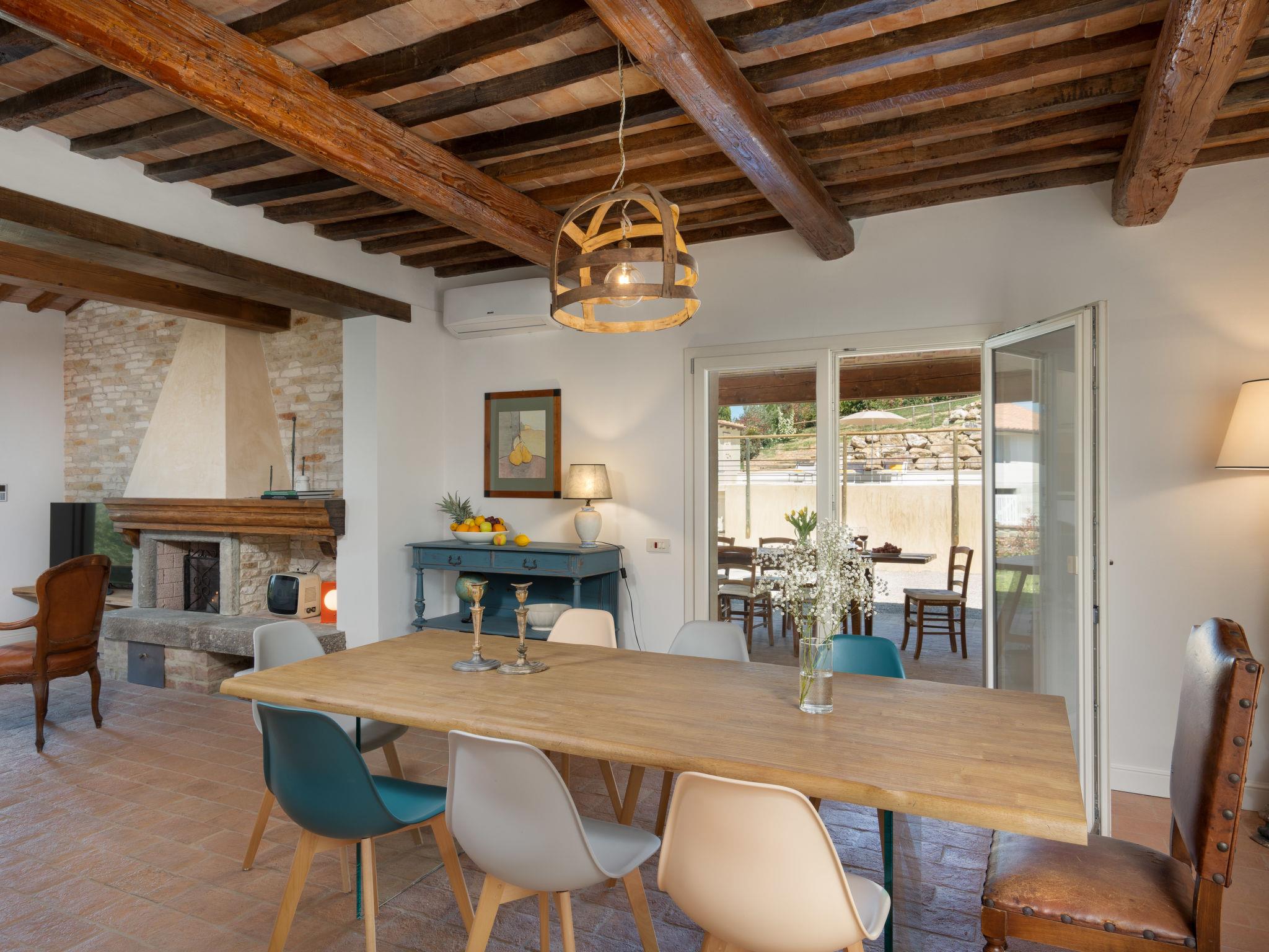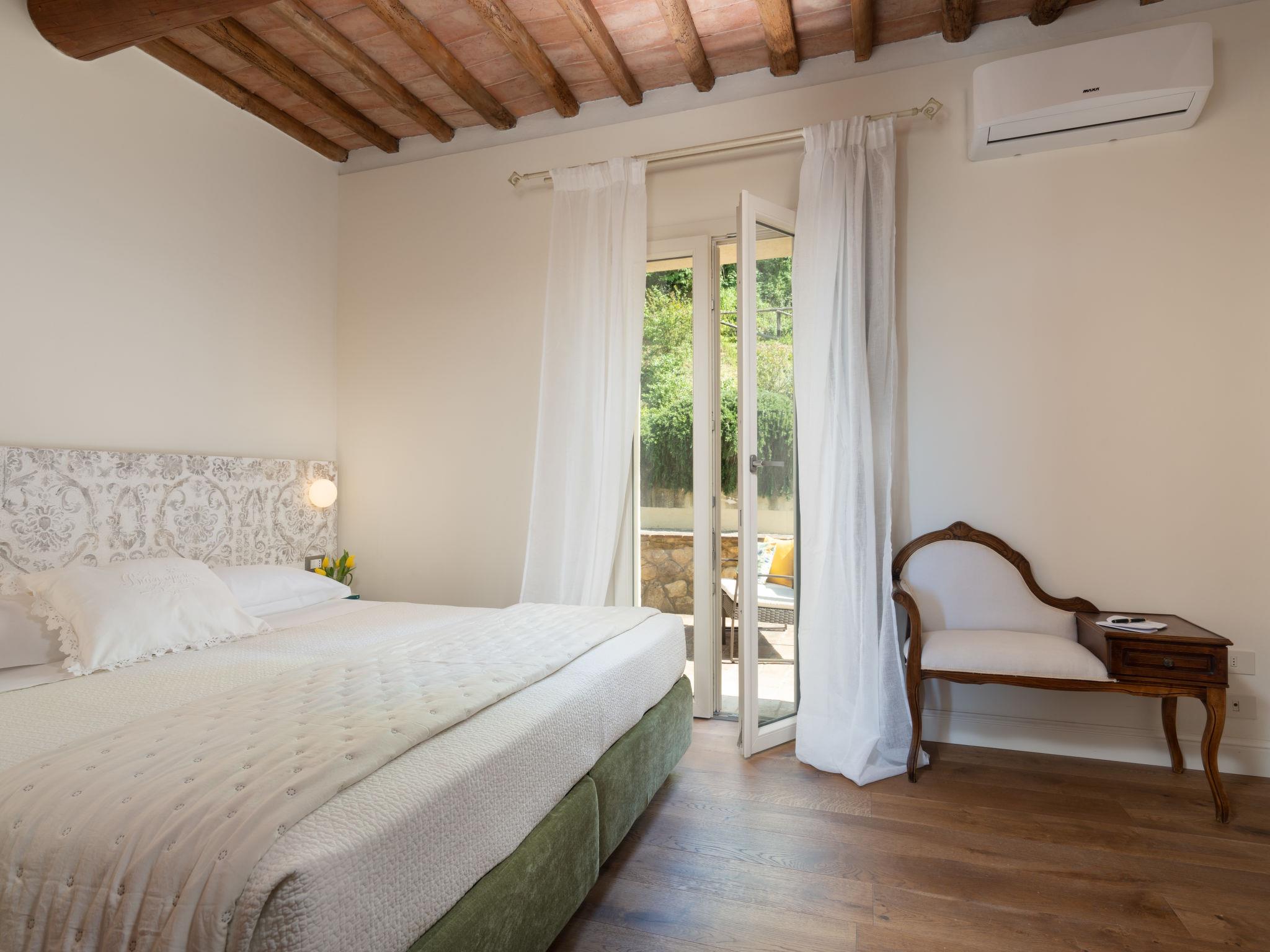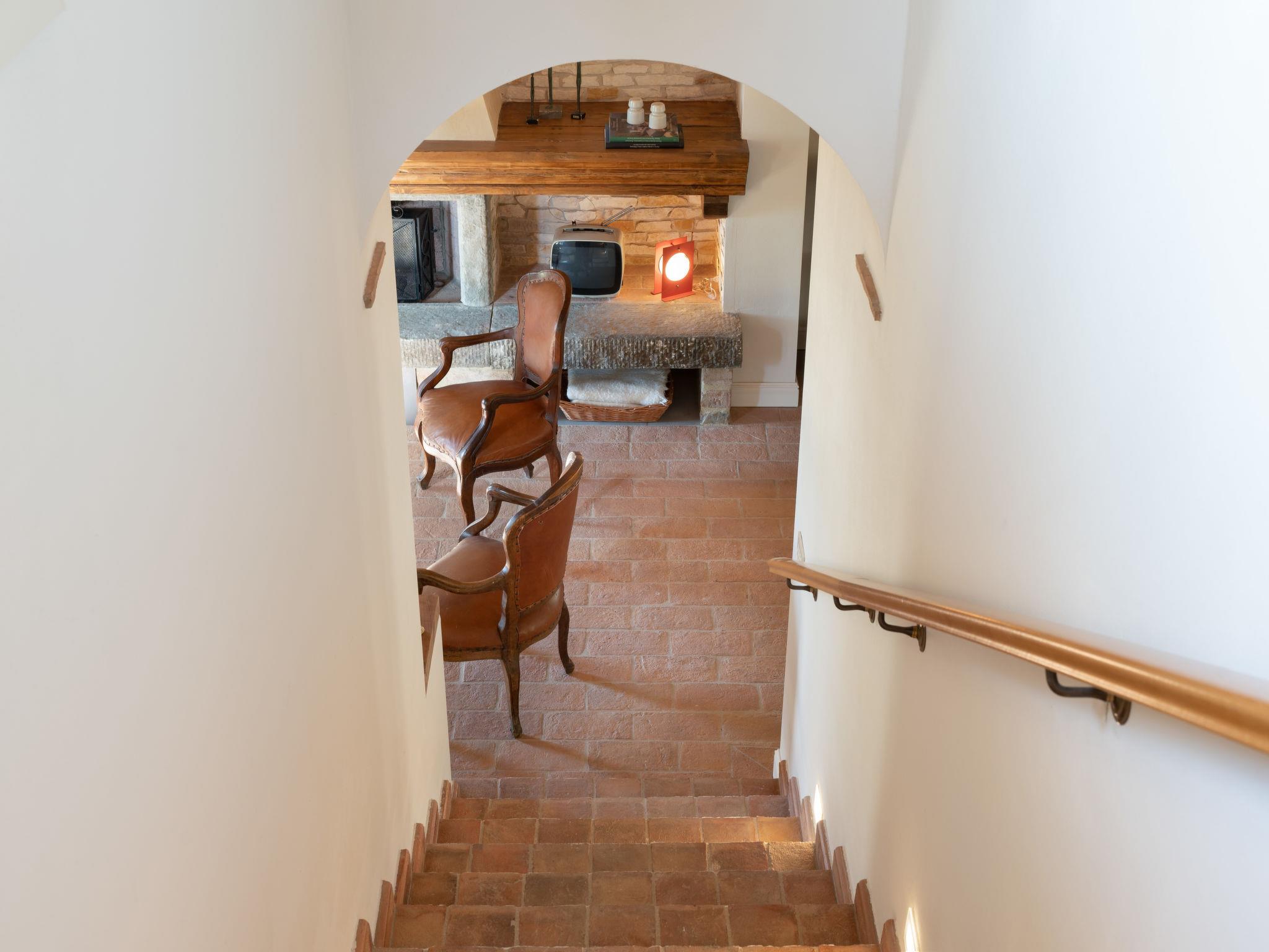 "Villa Oliva", 8-room villa 200 m2 on 2 levels. Spacious and bright, fully renovated in 2023, very comfortable and tasteful furnishings: entrance hall. Open living room with open-hearth fireplace and TV (flat screen), air conditioning. Exit to the garden. Open dining room with air conditioning. Exit to the garden, to the loggia. 1 double bedroom with shower/bidet/WC and air conditioning. Exit to the garden. 1 room with 2 beds (85 cm, length 193 cm), shower/bidet/WC and air conditioning. Exit to the garden. Open kitchen (oven, 5 induction hot plates, toaster, kettle, microwave, electric coffee machine). Sep. WC. Upper floor: 1 double bedroom with shower/bidet/WC and air conditioning. Exit to the balcony. 1 room with 2 beds (90 cm, length 200 cm), shower/bidet/WC and air conditioning. 1 double bedroom with shower/bidet/WC and air conditioning. Heating, air-conditioning. Parquet floors, natural stone floors. Large terrace roofed, patio. Terrace furniture, barbecue, deck chairs, box-room. Very beautiful panoramic view of the countryside. Facilities: washing machine, iron, children's high chair, baby cot for up to 2 year olds, hair dryer, logs (extra). Internet (WiFi, free). Parking (roofed) at the house. Please note: non-smokers only. The pool mentioned in the description is for private use. IT048020B4SM4IAZZV