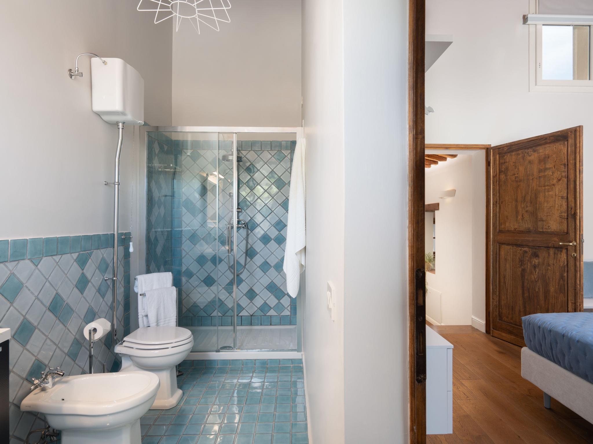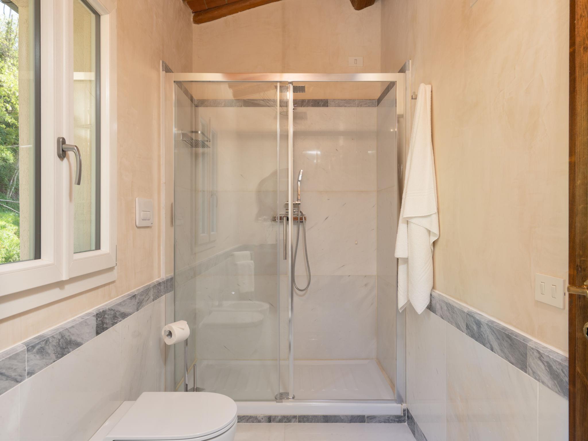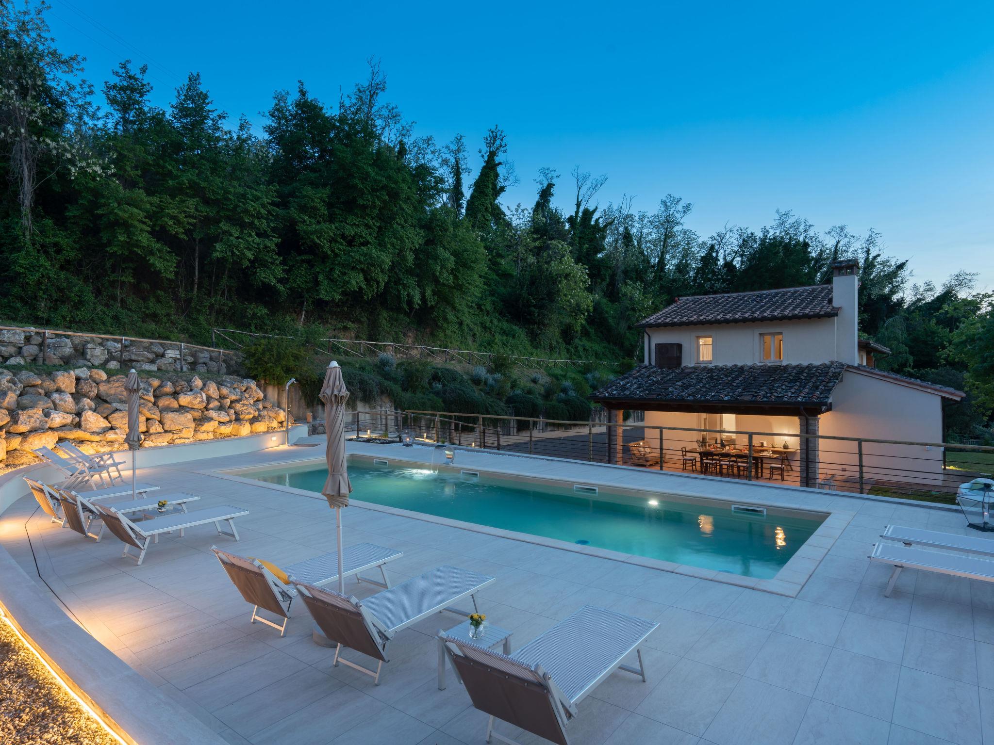 "Villa Oliva", 8-room villa 200 m2 on 2 levels. Spacious and bright, fully renovated in 2023, very comfortable and tasteful furnishings: entrance hall. Open living room with open-hearth fireplace and TV (flat screen), air conditioning. Exit to the garden. Open dining room with air conditioning. Exit to the garden, to the loggia. 1 double bedroom with shower/bidet/WC and air conditioning. Exit to the garden. 1 room with 2 beds (85 cm, length 193 cm), shower/bidet/WC and air conditioning. Exit to the garden. Open kitchen (oven, 5 induction hot plates, toaster, kettle, microwave, electric coffee machine). Sep. WC. Upper floor: 1 double bedroom with shower/bidet/WC and air conditioning. Exit to the balcony. 1 room with 2 beds (90 cm, length 200 cm), shower/bidet/WC and air conditioning. 1 double bedroom with shower/bidet/WC and air conditioning. Heating, air-conditioning. Parquet floors, natural stone floors. Large terrace roofed, patio. Terrace furniture, barbecue, deck chairs, box-room. Very beautiful panoramic view of the countryside. Facilities: washing machine, iron, children's high chair, baby cot for up to 2 year olds, hair dryer, logs (extra). Internet (WiFi, free). Parking (roofed) at the house. Please note: non-smokers only. The pool mentioned in the description is for private use. IT048020B4SM4IAZZV