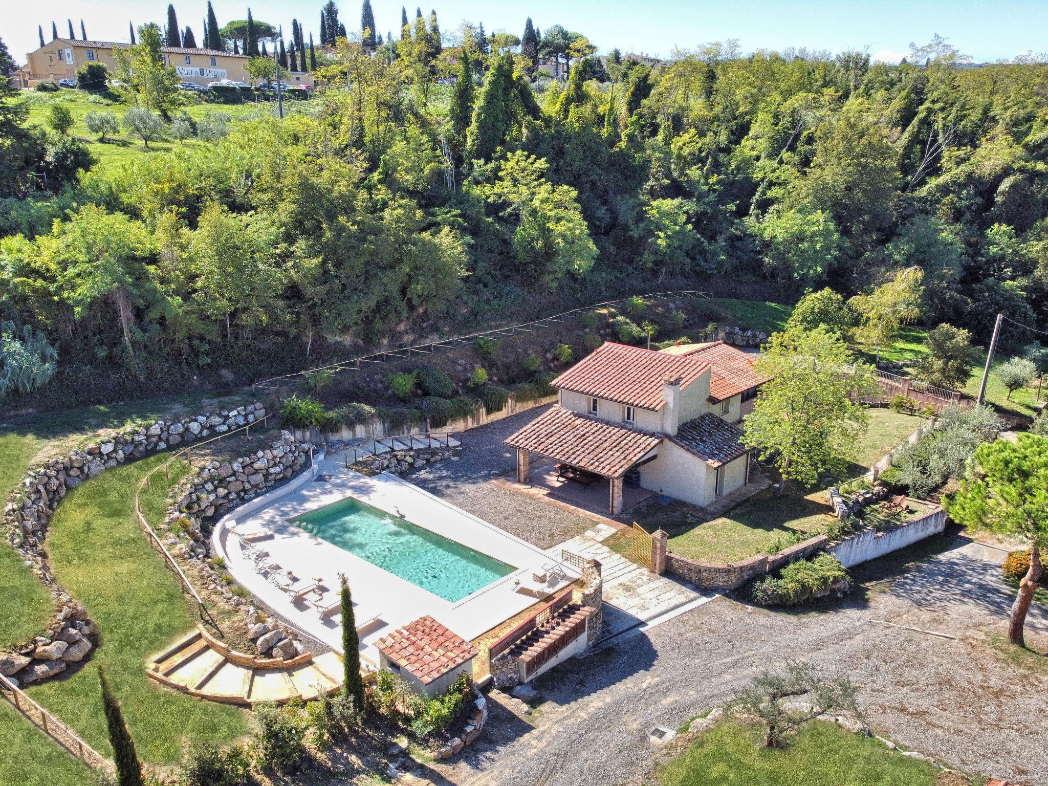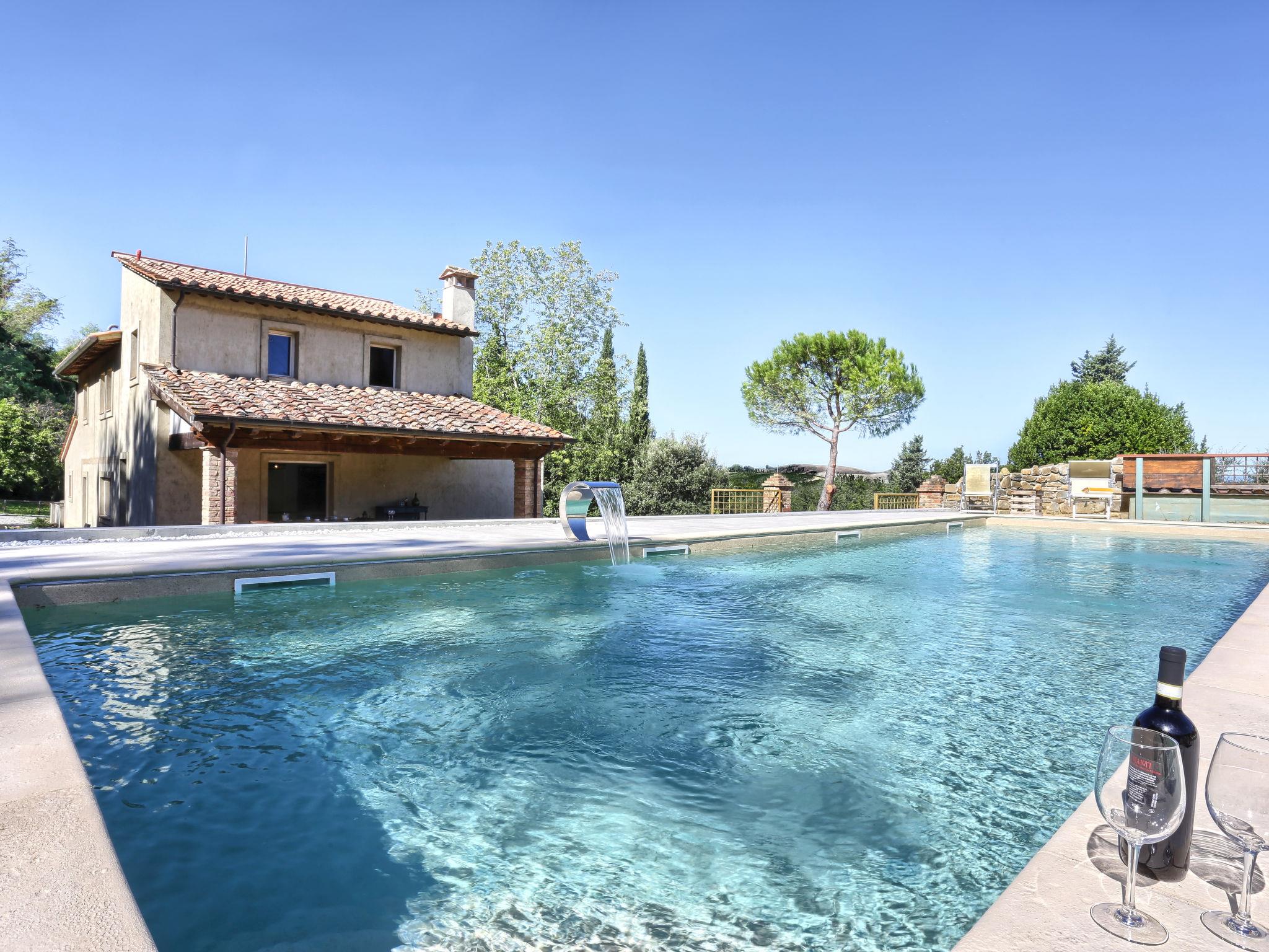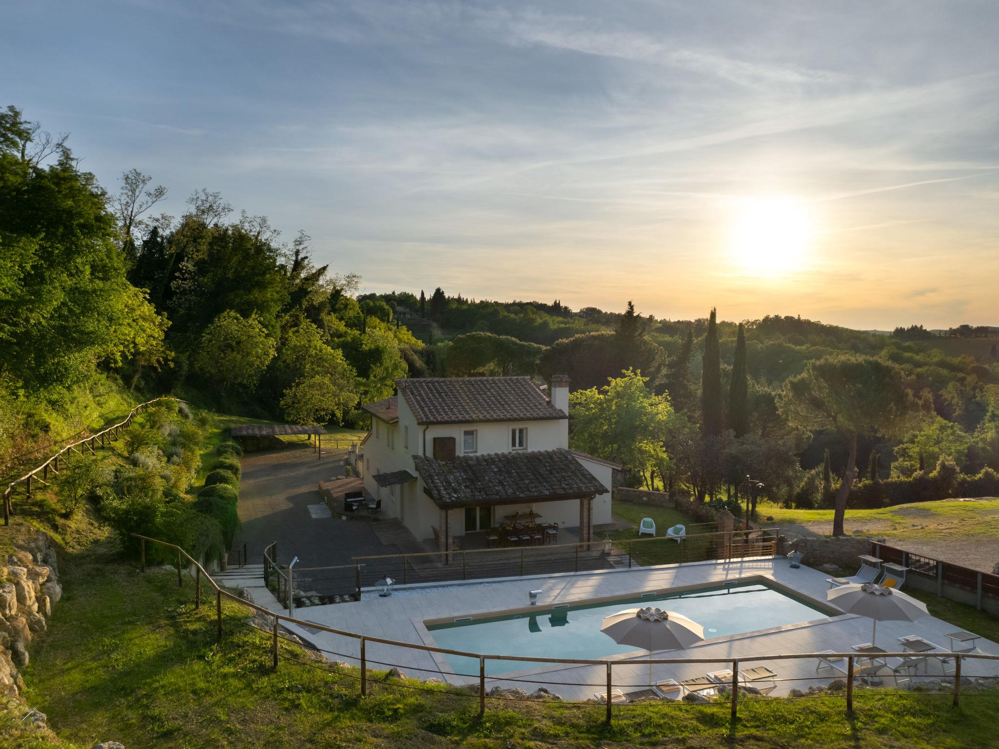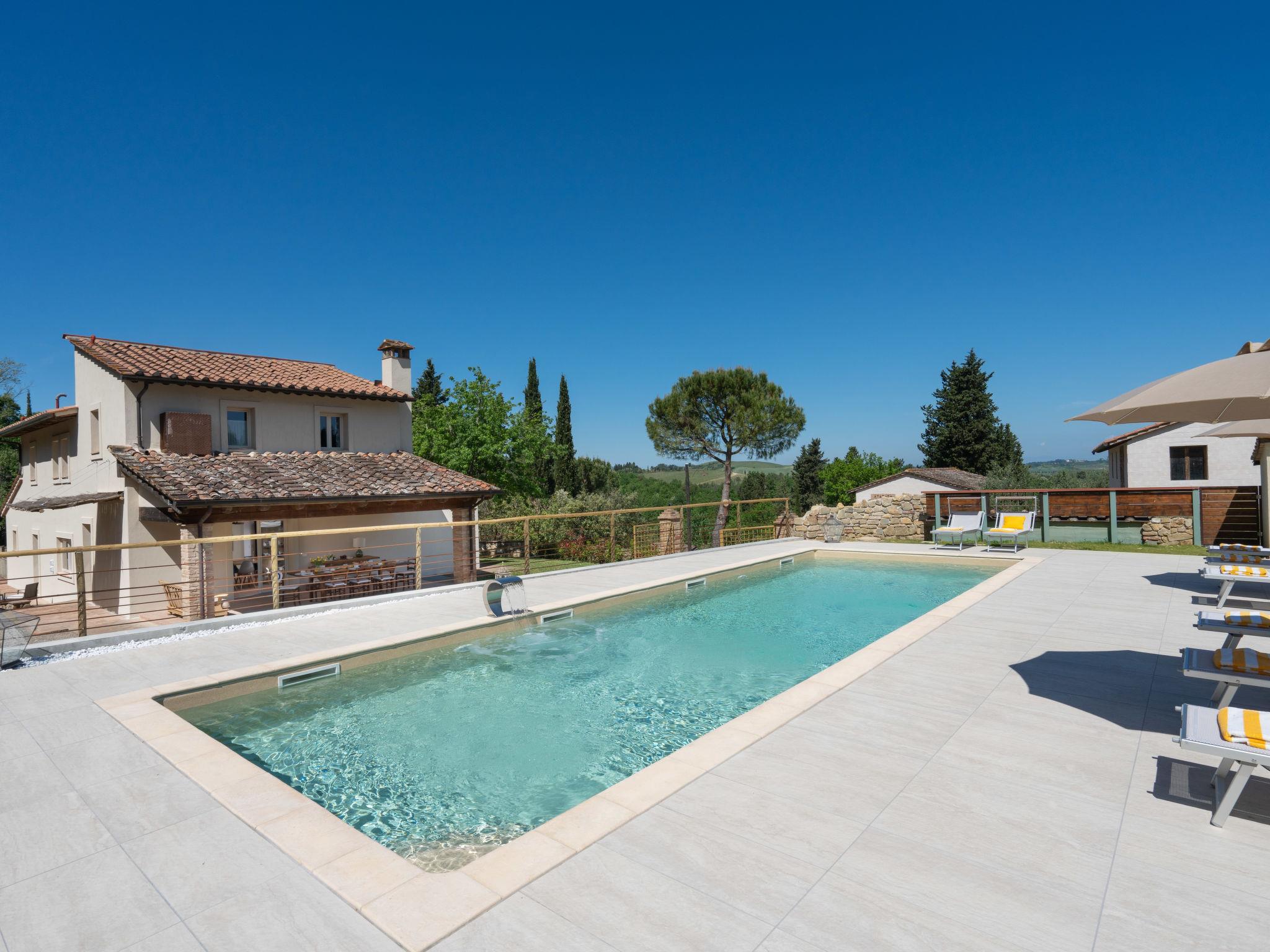 Gambassi Terme: Very modern, beautiful villa "Oliva", 2 storeys, renovated in 2023, surrounded by meadows and fields. 4 km from the centre of Gambassi Terme, 15 km from the centre of Certaldo, 20 km from the centre of San Gimignano, in a secluded, quiet position, in the countryside. Private: beautiful, well-kept garden 1'000 m2 (fenced) lawn and wildlife garden, swimming pool fenced (4 x 12 m, seasonal availability: 04.Apr. - 16.Oct.). Outdoor shower, patio, terrace, garden furniture, barbecue, pool maintenance by the owner/gardener. Towel change weekly. Cook on request (extra). Pre-arrival grocery service. 100 m long motor access (via unmade road). Roofed, parking at the house on the premises. Shop 4 km, grocery 4 km, supermarket 4 km, restaurant 300 m, bus stop 500 m, railway station "Castelfiorentino" 4 km. Golf course (18 hole) 15 km, tennis 4 km. Nearby attractions: Volterra 30 km, Firenze 40 km, Pisa 60 km, Siena 60 km. Please note: baby equipment (included). Cooking courses bookable on request. Residence with electric gates.