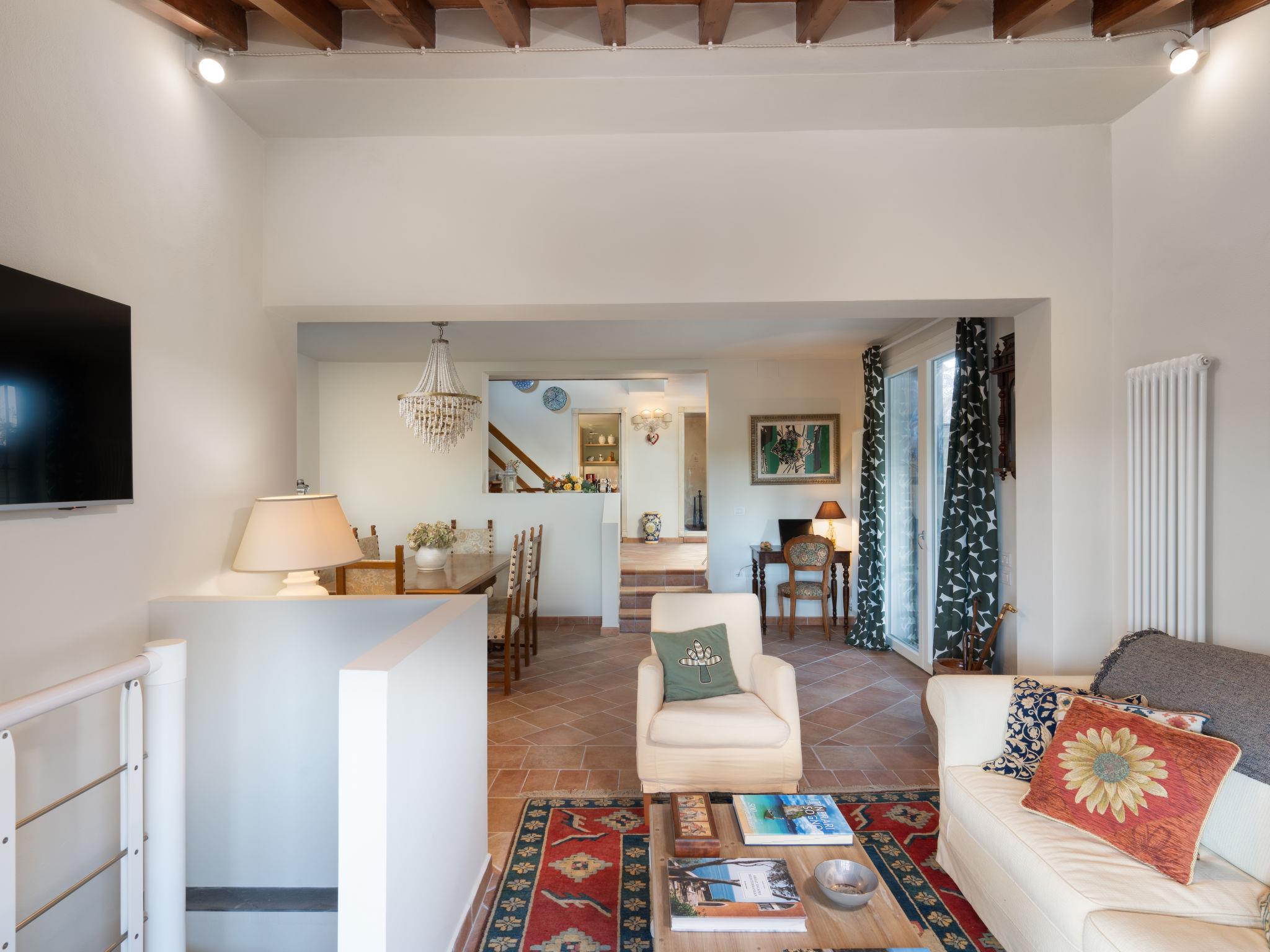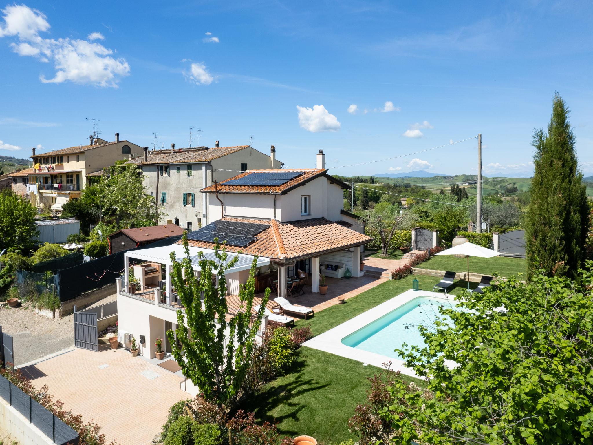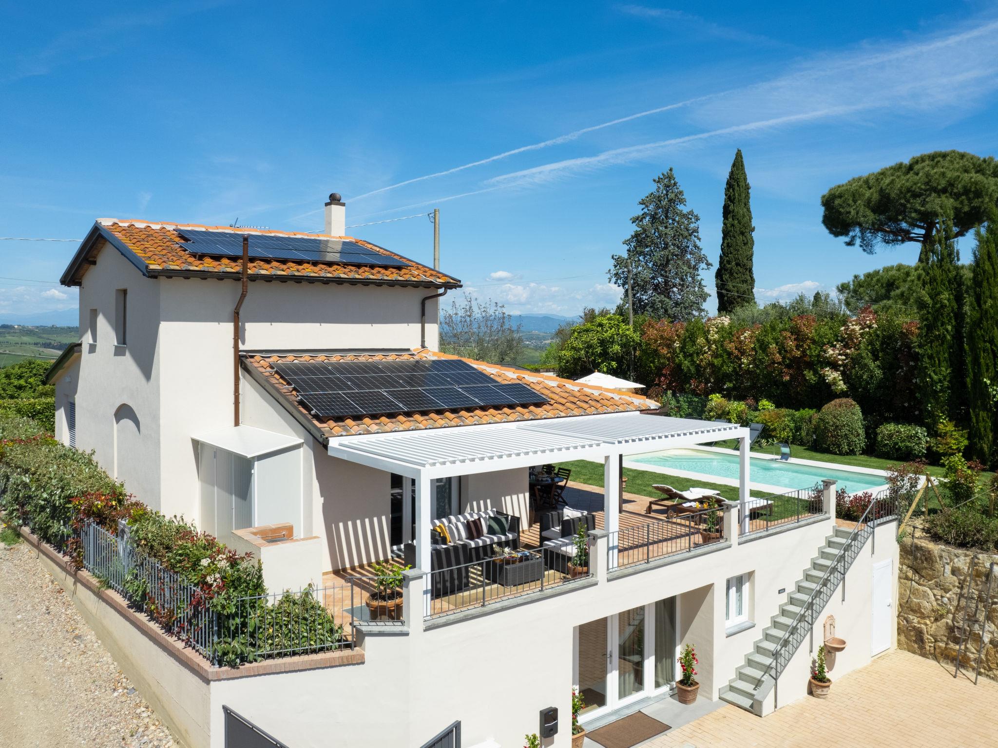 The house is located in a small village, overlooking the hills of the countryside between Siena and Florence, recently renovated maintaining and enhancing the rustic style and at the same time equipped with every comfort. Country house "La Pace", 300 m a.s.l., renovated in 2022. In the hamlet di Pillo 3 km from the centre of Gambassi Terme, 5 km from the centre of Castelfiorentino, 35 km from the centre of Firenze, in a quiet, sunny, elevated position on top of a hill, 45 km from the sea, in the countryside. Private: garden 300 m2 (fenced), swimming pool (4 x 9 m, depth 120 cm, seasonal availability: 01.May. - 31.Oct.). Outdoor shower, garden furniture, barbecue. Heating available only from 01.Nov. - 04.Apr.. Linen change (suppl. charge extra). Towel change (suppl. charge extra). Cook on request (extra). Breakfast possible on request (extra). Motor access to the house (100 m via unmade road). Parking on the premises. E-charging station. Shop 3 km, grocery 3 km, supermarket 3 km, restaurant 3 km, bus stop 100 m, railway station "Castelfiorentino" 5 km, sandy beach "Cecina e Donoratico" 45 km, thermal baths "Casciana Terme" 50 km. Golf course (18 hole) 21 km. Nearby attractions: San Gimignano 22 km, San Miniato 24 km, Barberino Val d'Elsa 27 km, Volterra 32 km, Lajatico 35 km, Greve in Chianti 43 km. Please note: suitable for families.