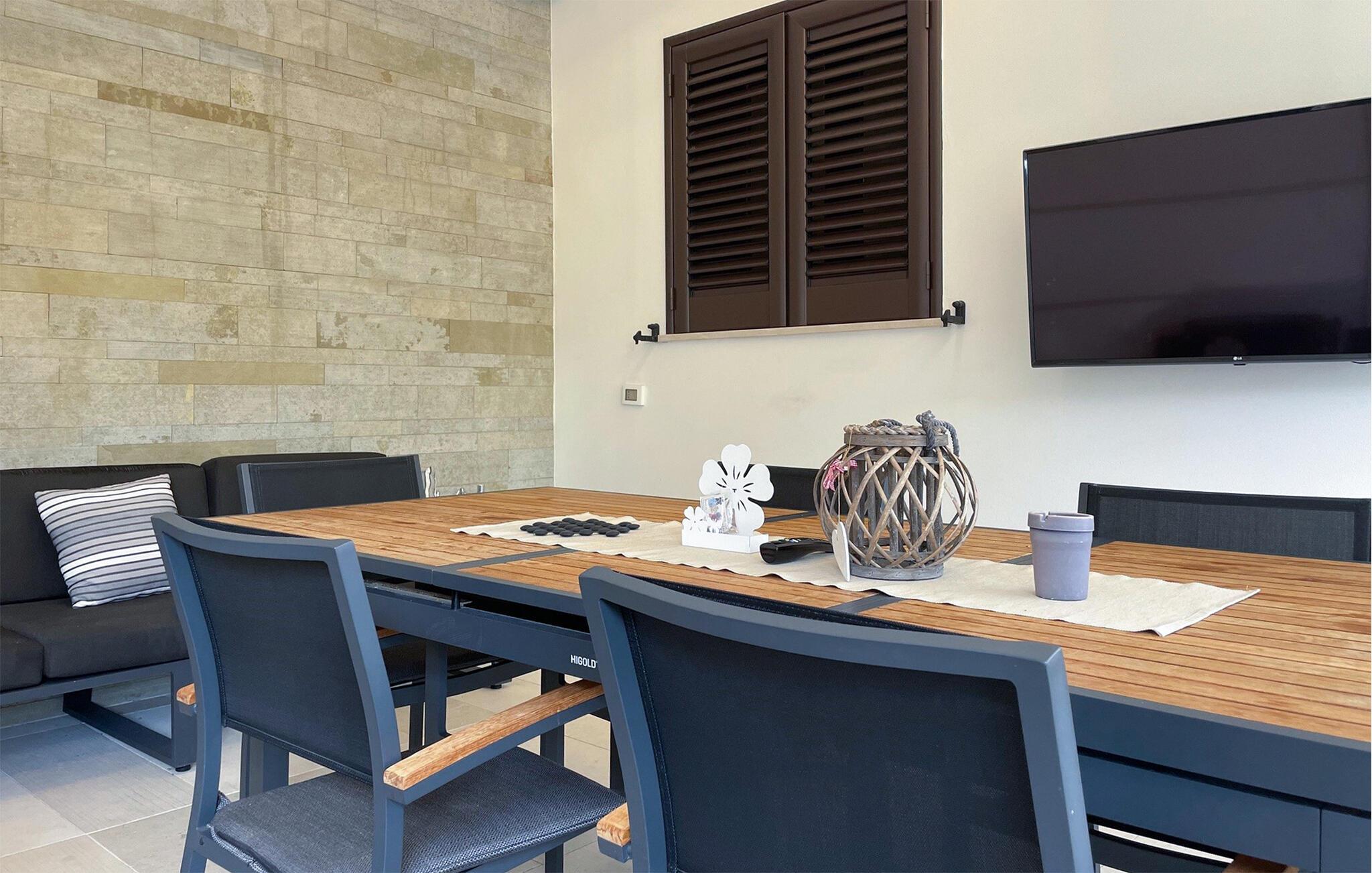 Dette moderne og smagfuldt indrettede feriehus ligger kun en kort gåtur fra den turkisblå badebugt i Gandoli. Tilbered lækre retter i det veludstyrede køkken, og nyd dem på verandaen med udsigt til den hyggelige have. Efter en dag i den varme middelhavssol kan I slappe af på den komfortable sofa med en god bog eller samles til en hyggelig filmaften.