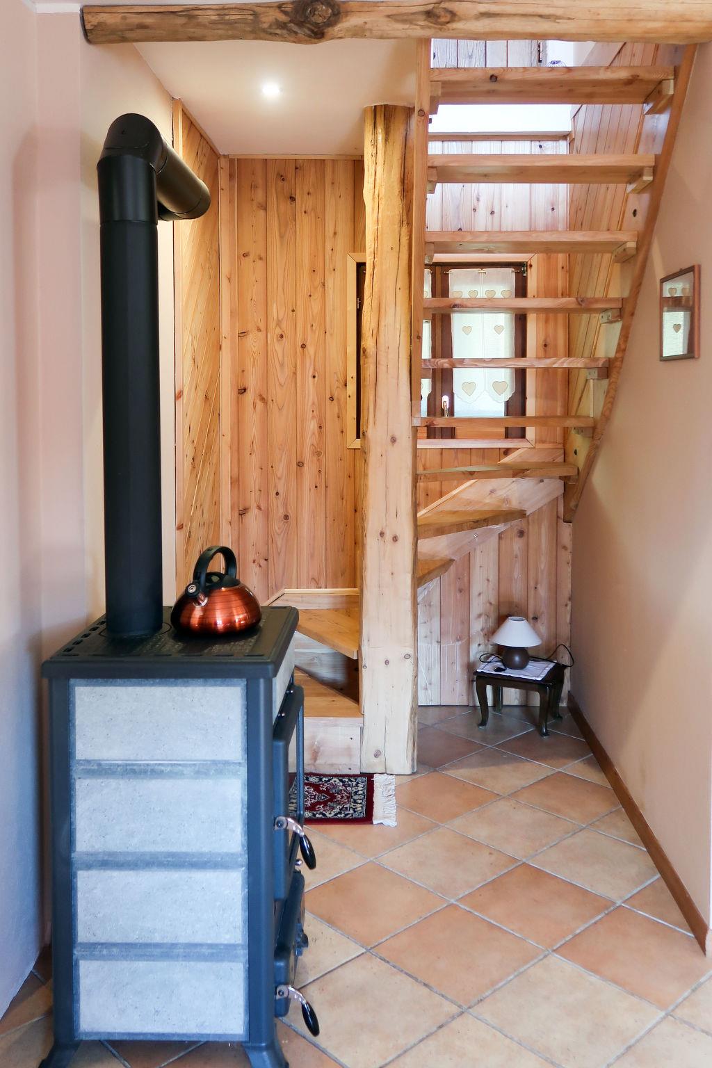 4-room house 150 m2 on 2 levels, south facing position. Renovated in 2013, practical and wooden furniture furnishings: living/dining room with dining table, satellite TV and wood-burning stove. Exit to the garden. 1 double bedroom. Open kitchen (oven, dishwasher, 4 gas rings, toaster, freezer, electric coffee machine). Shower/WC. Upper floor: (ladder). 1 double bedroom. 2 rooms, each room with 1 bed (80 cm, length 190 cm). Shower/WC. Patio. Deck chairs (3). View of the mountains and the valley. Facilities: children's high chair, baby cot. Internet (WiFi, free). IT013106C2RRWU3FJM