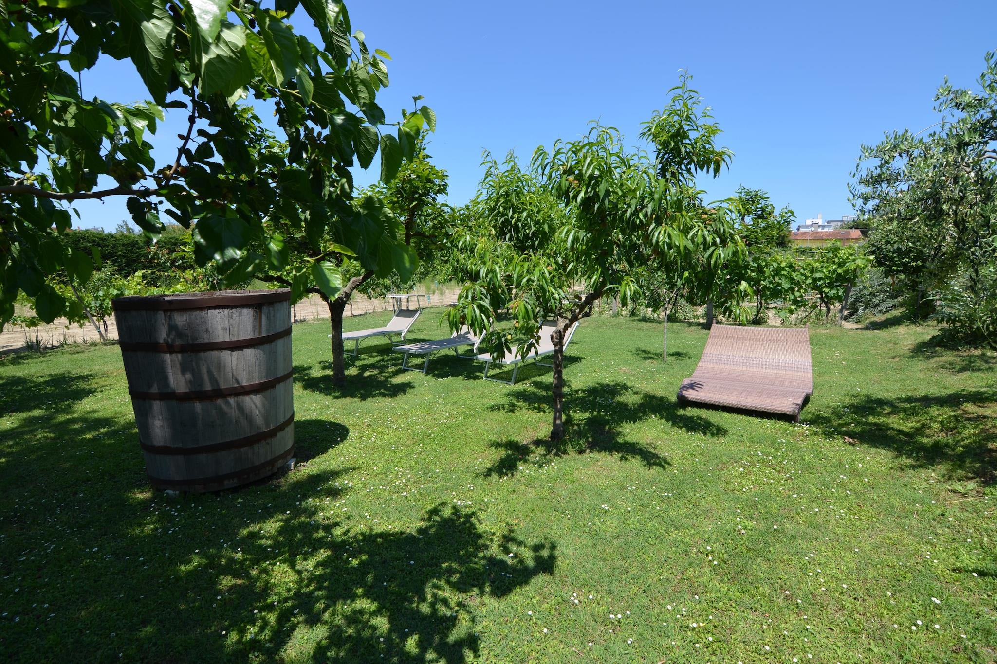 Denne hyggelige lejlighed i Gatteo Mare tilbyder en afslappende ferie ved havet for op til fire gæster, og byder på en lys opholdsstue med en dobbelt sovesofa, tv og stereoanlæg. Det veludstyrede køkken omfatter ovn, komfur, køleskab med fryser og kedel, ideel til nem tilberedning af måltider. Et soveværelse med dobbeltseng og rummeligt badeværelse sikrer komfort, mens aircondition holder tingene kølige. Gæsterne kan også slappe af i den frodige have med liggestole, parasol og grill. For dem, der er ivrige efter at udforske, er cykler til rådighed for naturskønne ture gennem byen, mens sandstranden ligger kun 1 km væk. Dagsture byder på kajaksejlads (17,3 km), golf på Golf Cervia (17,7 km) og besøg i Atlantica Waterpark og Montebello Slot. Uanset om du jagter bølger, nyder historie eller nyder havefritid, er der noget for enhver smag. Nærliggende spisesteder viser regionale smagsoplevelser med frisk fisk og skaldyr og lokale specialiteter kun 1 km fra lejligheden. Forkæl dig selv med en gourmetoplevelse på Osteria Bartolini (5,3 km) eller La Tramonteria (16,5 km). Uanset om det er udendørs spisning, kulturelle udflugter eller lyksalighed ved havet, blander denne lejlighed afslapning, rekreation og smag.