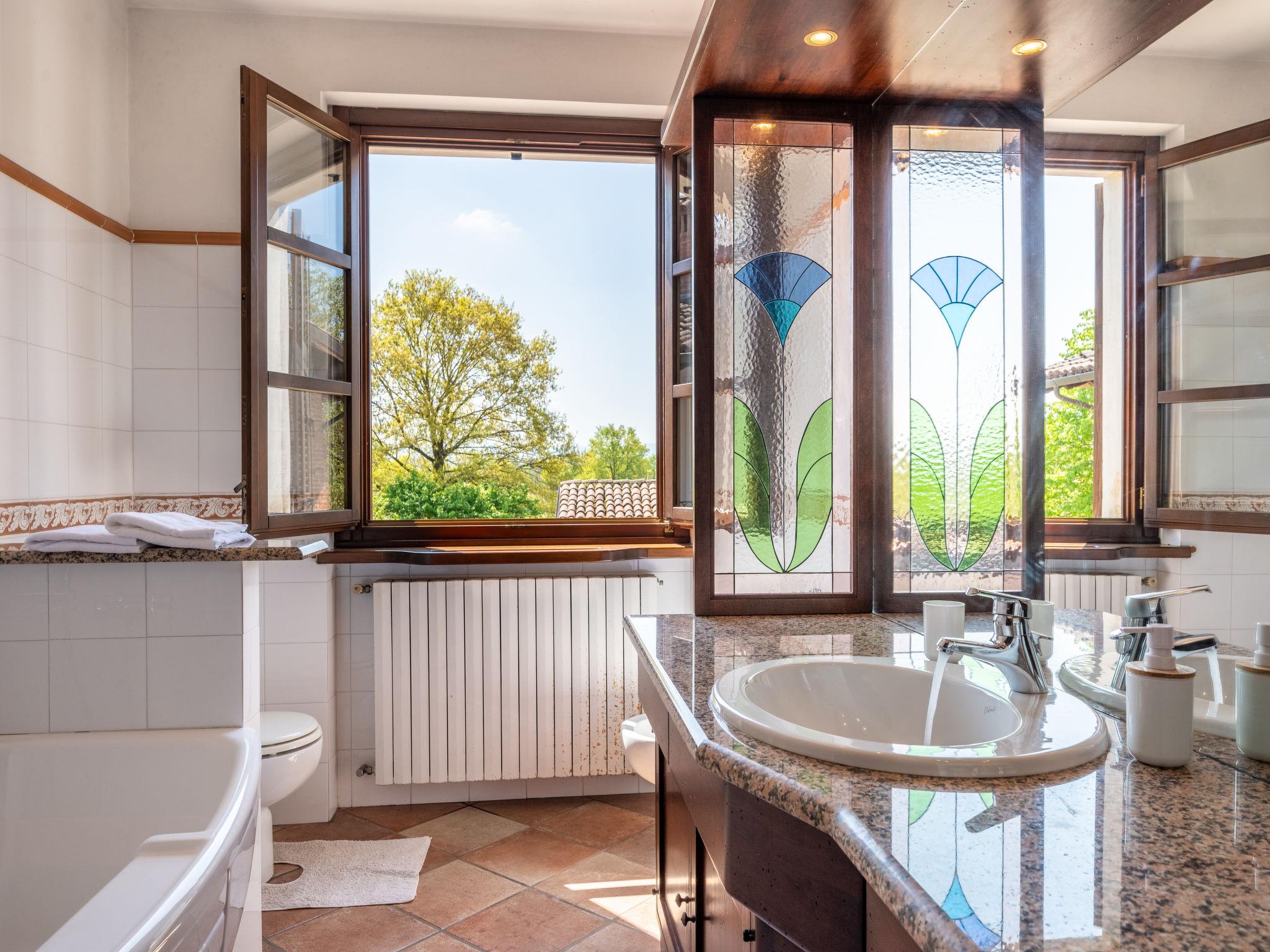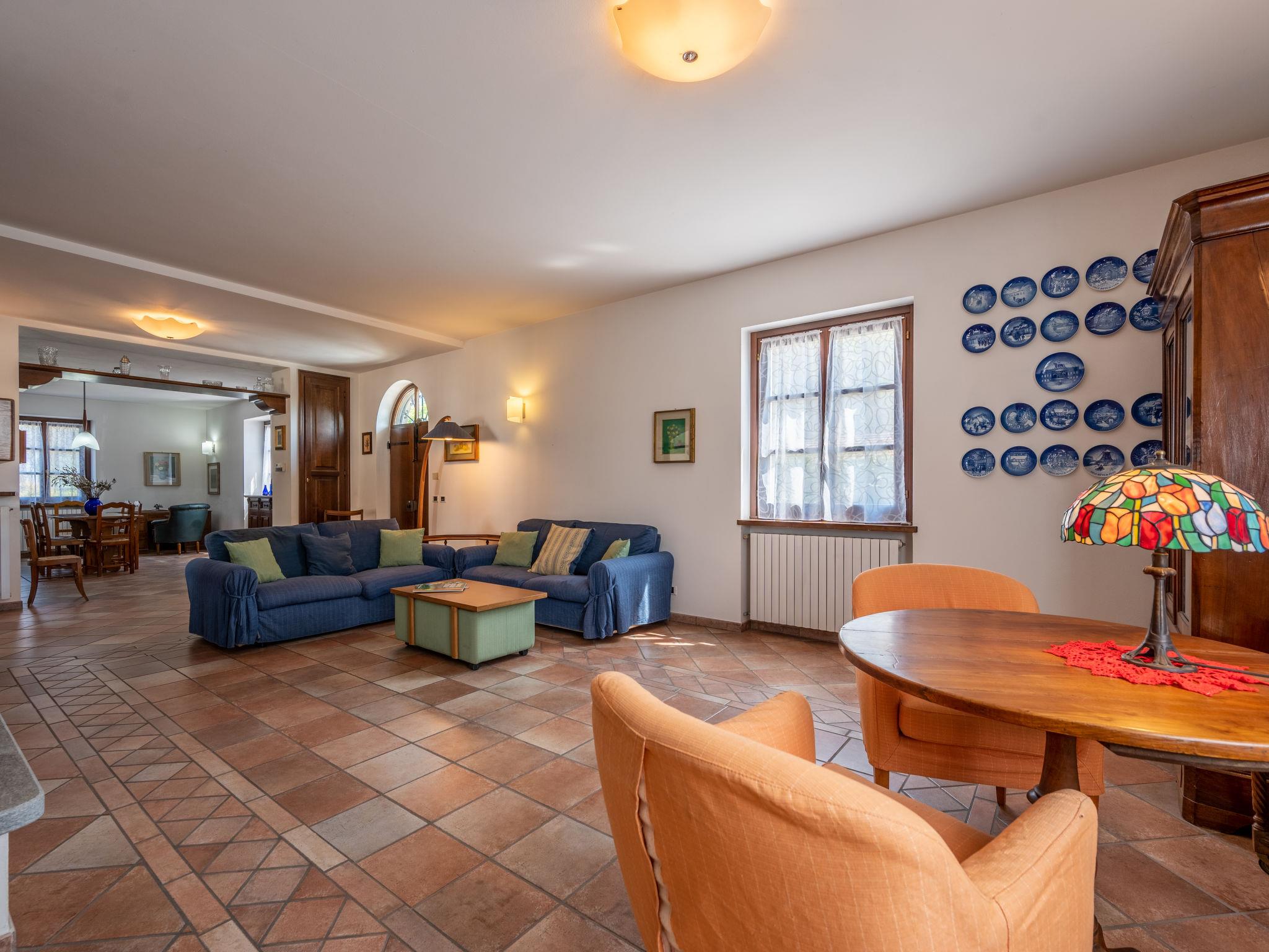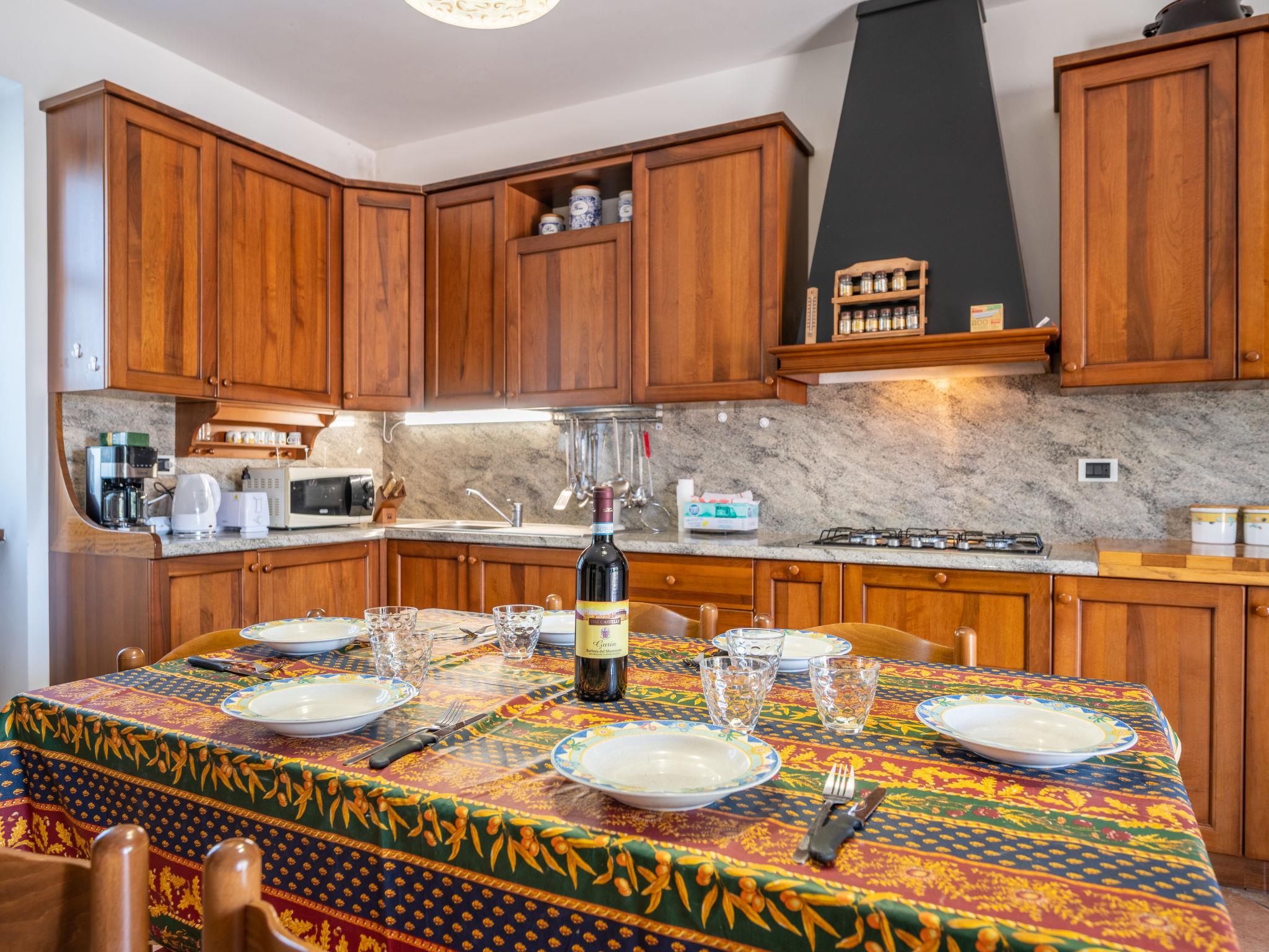 "Cascina Anna", 7-room house 300 m2 on 3 levels. Spacious, simple and practical furnishings: large dining room with kitchen corner, hand-basin, separate WC and heating stove. Exit to the garden. Open living/dining room with open-hearth fireplace and dining table. Exit to the veranda. Large kitchen (oven, dishwasher, 5 gas rings, toaster, kettle, microwave, freezer, electric coffee machine) with TV. Exit to the veranda. Upper floor: 1 double bedroom with shower/bidet/WC and hydro massage bath. 1 room with 3 beds. 1 double bedroom. Exit to the terrace. Shower/bidet/WC, hydro massage bath. 2nd upper floor: 1 double bedroom with sloping ceilings. Bath/bidet/WC. Gas heating. Heating available only from 01.10. to 15.05. Balcony. Terrace furniture. View of the countryside. Facilities: washing machine, dryer, hair dryer. Internet (WiFi, free). E-charging station. Maximum 2 pets/ dogs allowed. No mandatory extra charges to be paid on-site. Bedlinen, towels, final cleaning and all energy costs are included. IT006012C27U45Y4X5