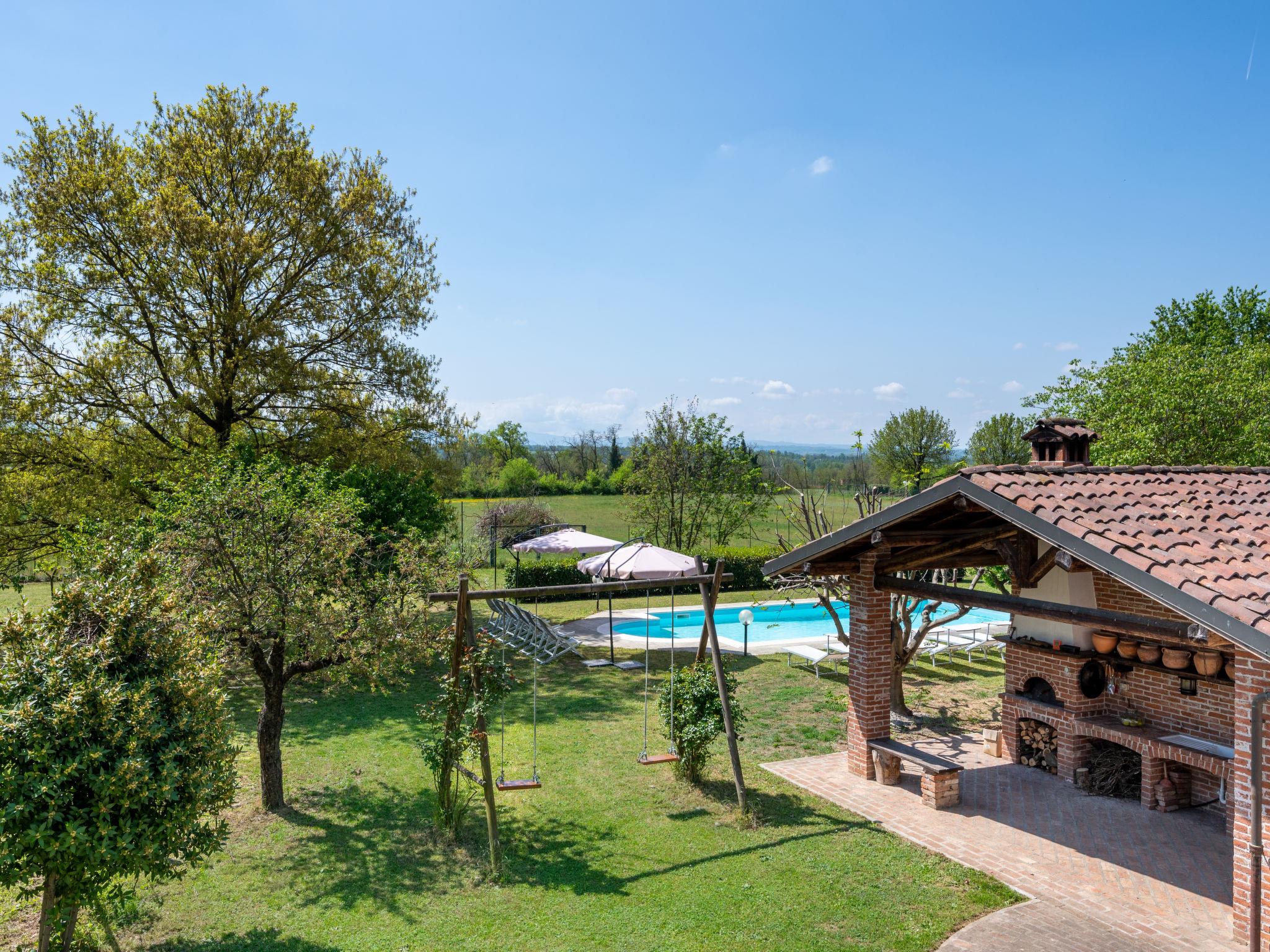Country house "Cascina Anna", surrounded by trees and fields. 800 m from the centre of Basaluzzo, 14 km from the centre of Gavi, 22 km from the centre of Alessandria, residential area (villas). Private: property 7'000 m2 (fenced), large garden trees, courtyard, swimming pool (10 x 5 m, depth 120 - 160 cm, seasonal availability: 01.May. - 31.Oct.). Outdoor shower, pergola, barbecue, fireplace, barbecue house, pool maintenance by the owner/gardener. Roofed, parking (for 2 cars). Grocery 500 m, bus stop 800 m. Nearby attractions: Serravalle Designer Outlet 12 km, Liguria- Genova 65 km, Stazione ferroviaria Novi Ligure 7 km. The owner does not accept any youth groups. Part of the house is closed and unoccupied. Neighbourhood highly sensitive to noise. Quietness and good behaviour expecte.
