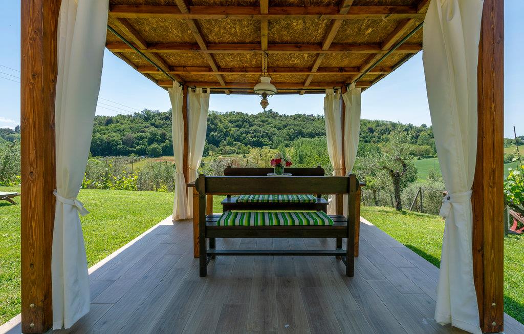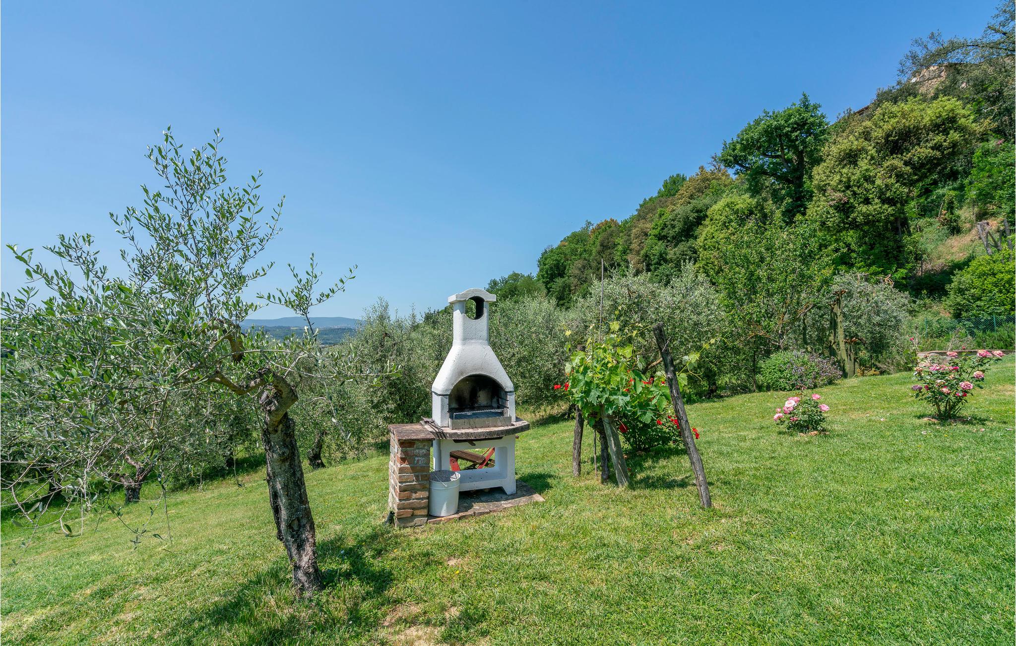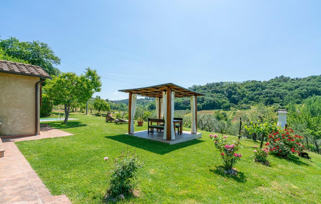 Lille feriehus med egen pool omgivet af oliventræer og vinmarker, på en bakke øst for den vidunderlige middelalderby San Gimignano (14 km). Veranda til udensdørs måltider. Her kan I nyde den rolige beliggenhed med smuk udsigt til landskabet. Ferieboligen byder på en velplejet græsplæne med poolen (4,5 x 6 m, 1,20 m dyb), og en smuk pavillon, så I kan spise i det fri. Tilkørslen til huset over 150 m landevej. Parkeringsplads. Rum: Køkken med boligområde med sovesofa og direkte adgang til haven, et dobbeltværelse med badeværelse med brusebad. Indretning af middel kvalitet. Der er en grill. Afstande: 3 km til Poggibonsi (alle slags butikker), 30 km til Siena med den fascinerende plads Piazza del Campo, 45 km til Firenze med de utrolige arkitektoniske mirakter som domkirken og rådhuset og Volterra med det hyggelige middelaldercentrum.