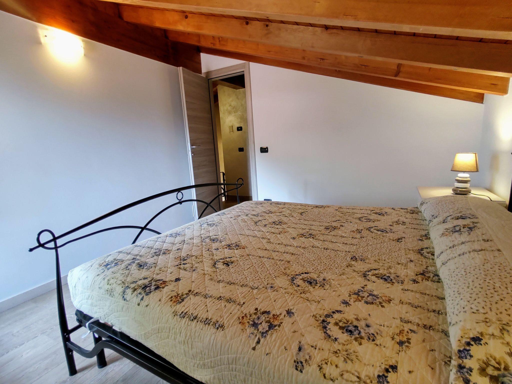 "Robinia", 4-room apartment 100 m2 on 2 levels. Bright, beautiful furnishings: 2nd upper floor: (exterior staircase) living room with open-hearth fireplace (only for decoration), satellite TV. Exit to the balcony. Open kitchen (oven, dishwasher, 4 induction hot plates, toaster, kettle, freezer, electric coffee machine) with dining table. Shower/WC. 3nd upper floor: 1 room with sloping ceilings with 1 french bed (160 cm). 1 room with sloping ceilings with 1 french bed (160 cm). 1 room with sloping ceilings with 1 bed. Bath/WC. Gas heating. Balcony, 2 terraces. Terrace furniture, balcony furniture, barbecue, deck chairs (4). Beautiful panoramic view of the lake and the mountains. Facilities: washing machine. Internet (WiFi, free). Parking (1 car). Please note: non-smokers only. Maximum 1 pet/ dog allowed. Private entrance. IT013226C2N7HHLBFE