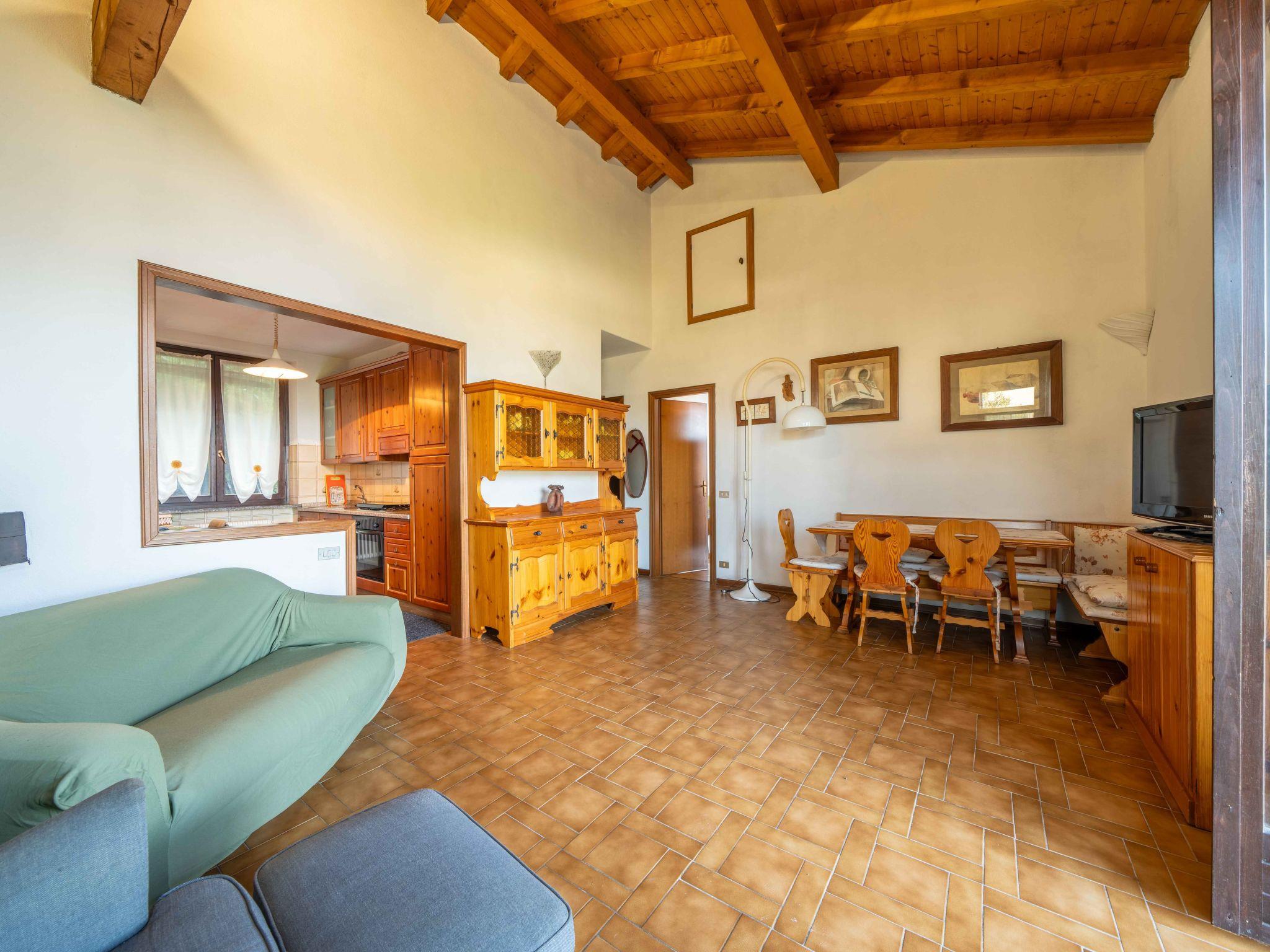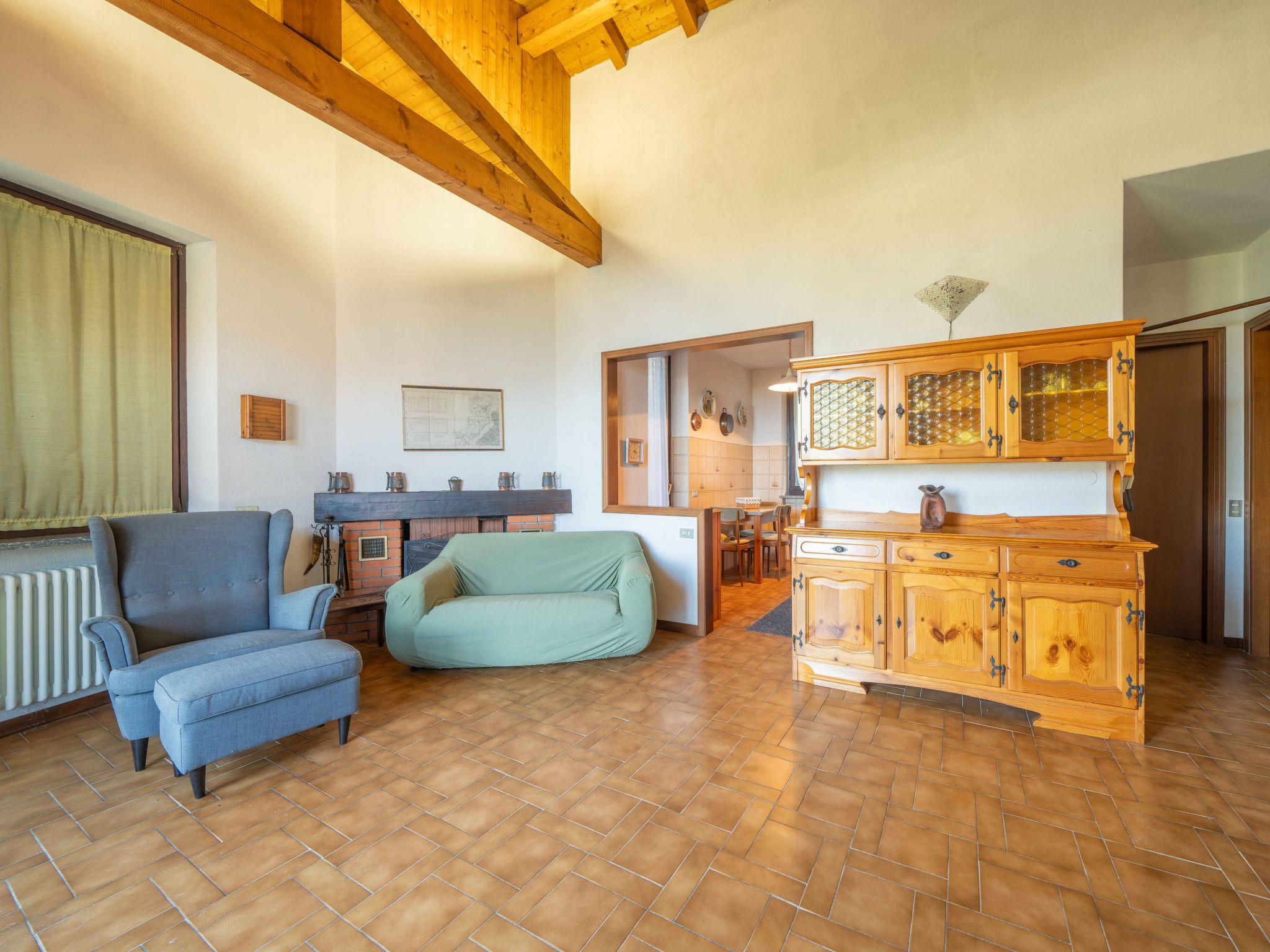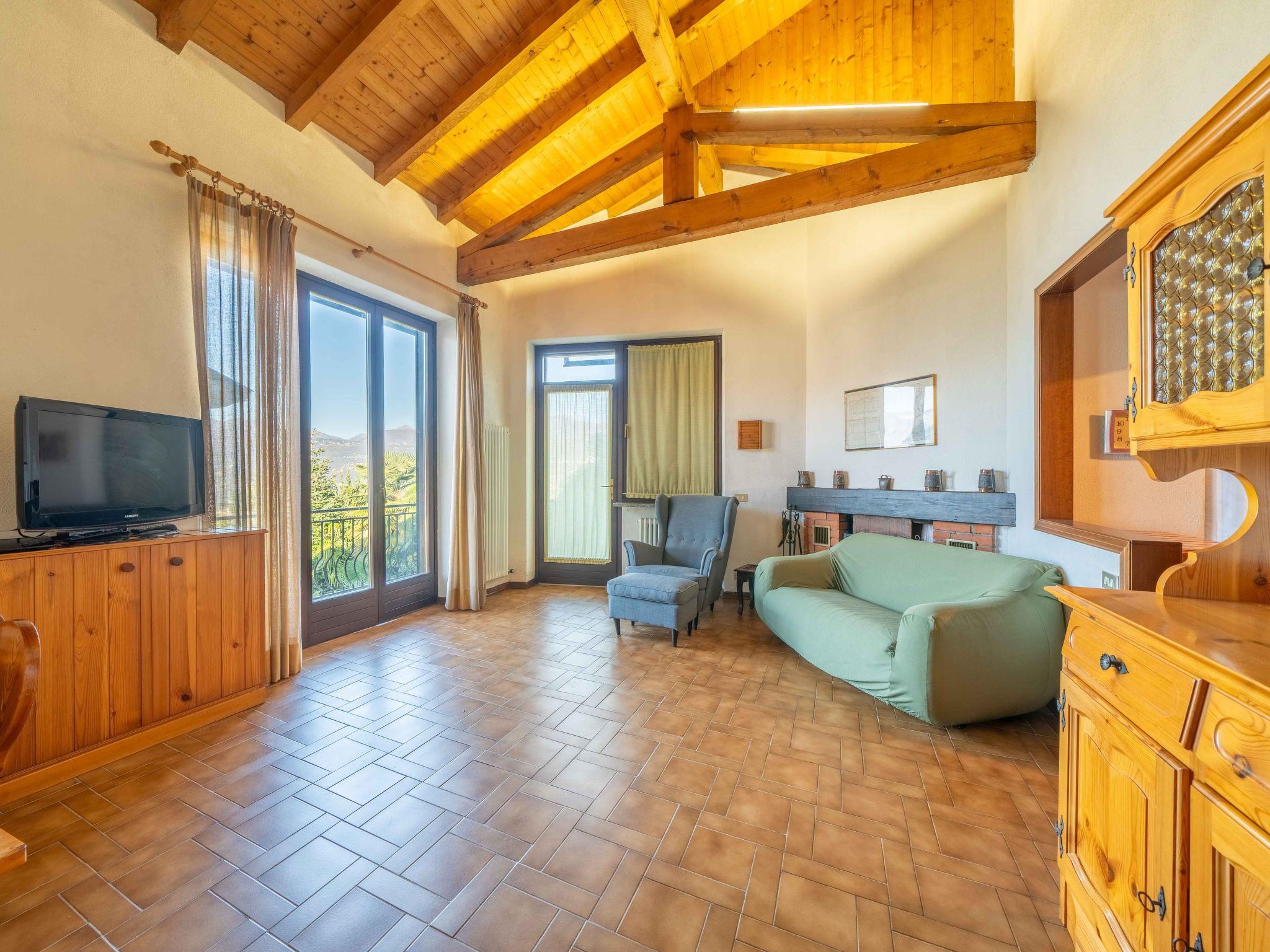 "Marzia", 4-room house 100 m2 on 2 levels on 1st floor. Practical furnishings: living/dining room with TV. Exit to the balcony. 1 room with 2 beds. Exit to the garden. 1 double bedroom. Open kitchen (4 hot plates, oven, dishwasher, electric coffee machine). Shower/bidet/WC. On the lower ground floor: (exterior staircase) living room with 2 beds. Shower/bidet/WC. No heating option. Balcony, terrace. Terrace furniture. Beautiful view of the lake and the mountains. Facilities: washing machine, hair dryer. Internet (WiFi, free). Maximum 2 pets/ dogs allowed. No internal connecting door between the floors. IT012076C28DTOKFSJ