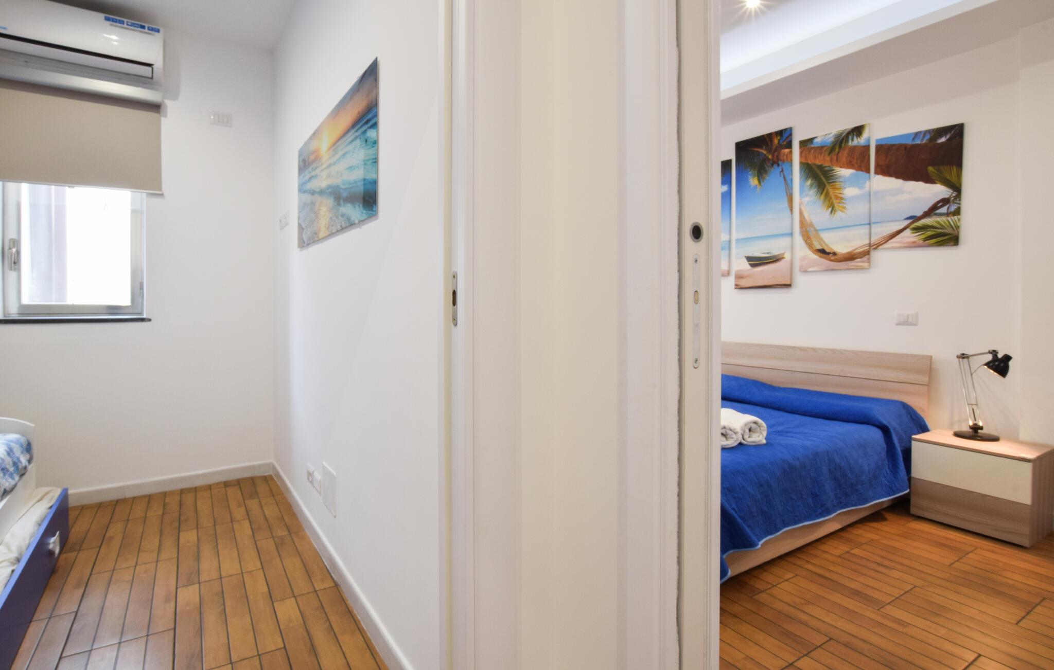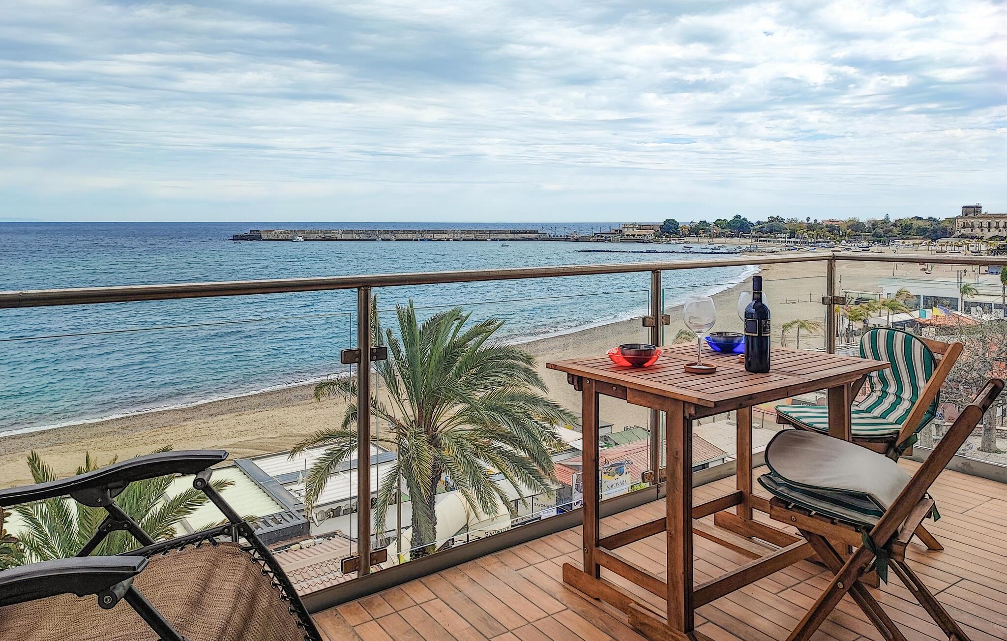 Efter morgenmaden kan I gå en lille tur ned til vandet og tage en dukkert, hvis I har lyst til en frisk start på dagen, men man kan også bare tage nogle dybe indåndinger og blive klar til dagen. Der er heller ikke langt til restauranter, barer og caféer, hvor I kan lade jer forkæle med lækre sicilianske retter. Lejligheden har en god beliggenhed, hvis I vil opleve vulkanen Etna og se den fantastiske natur omkring.