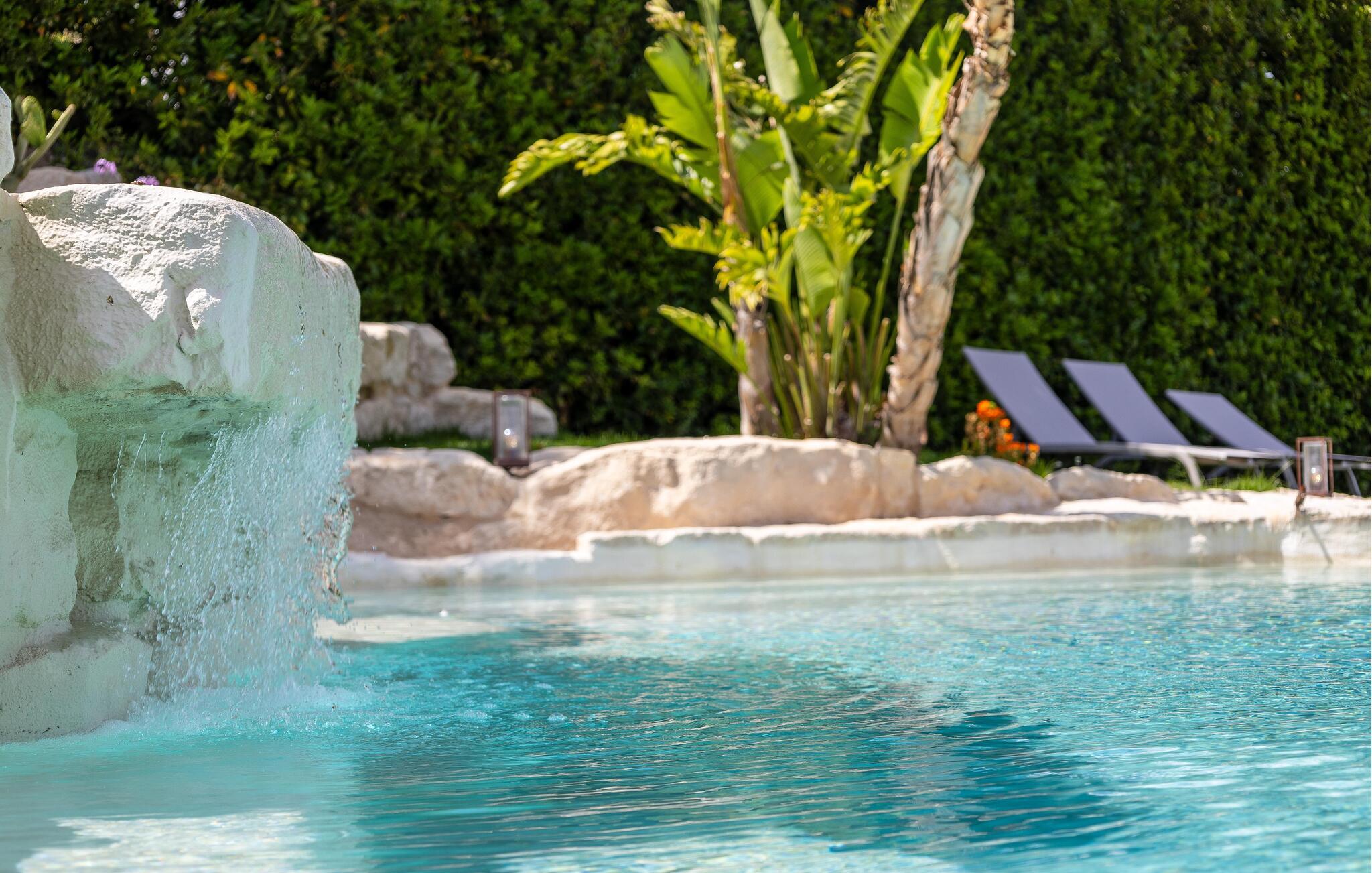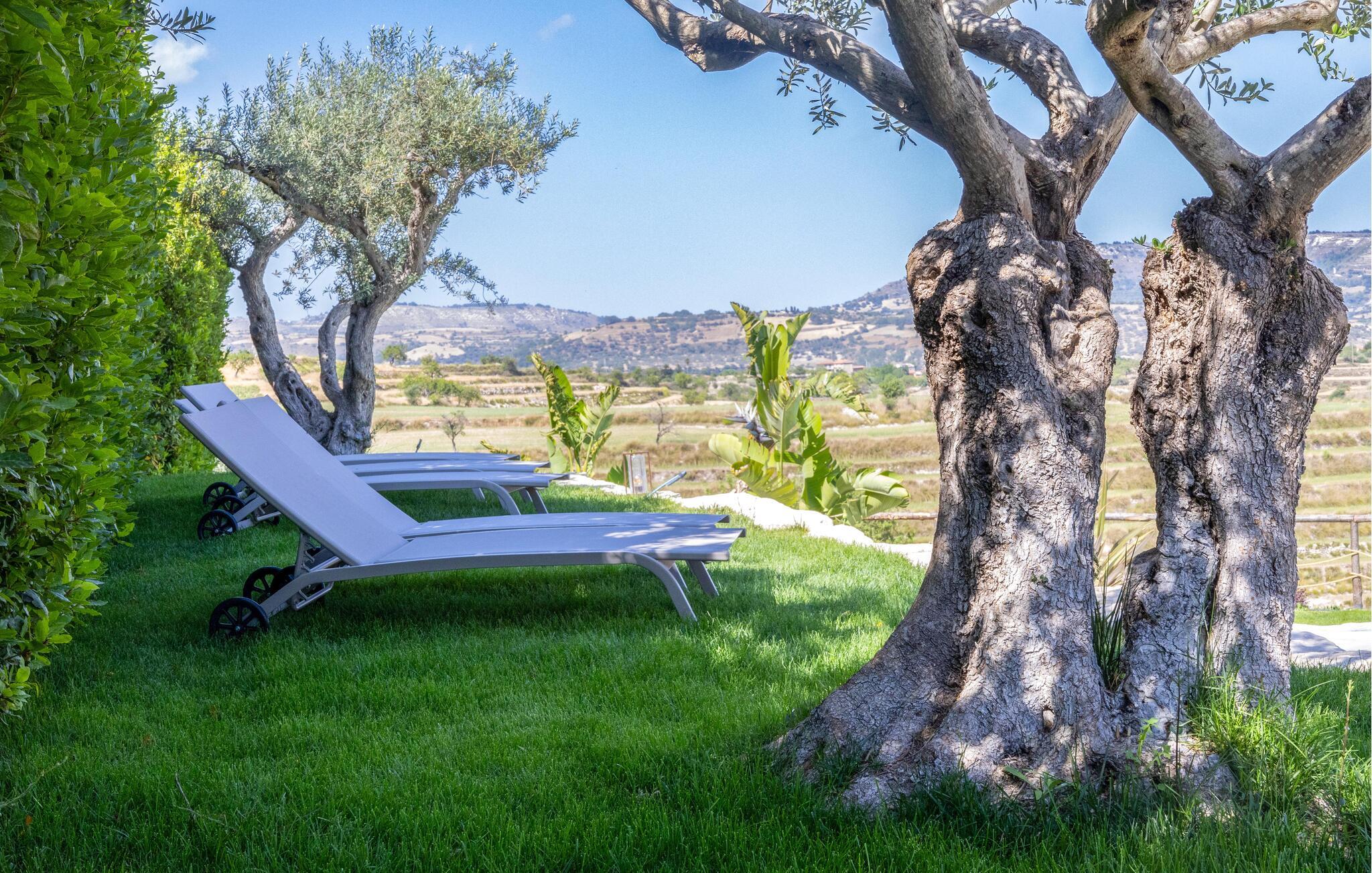 Udendørs venter et sandt paradis. Slap af i den rummelige have med udsigt over olivenlunde og palmer, mens børnene nyder sjove øjeblikke på rutsjebanen eller trampolinen. Dyk ned i den luksuriøse pool med vandfald, og nyd solen på de komfortable liggestole. Arrangér uforglemmelige grillaftener under åben himmel, eller afslut dagen med et glas vin i loungen, mens I betragter stjernehimlen.