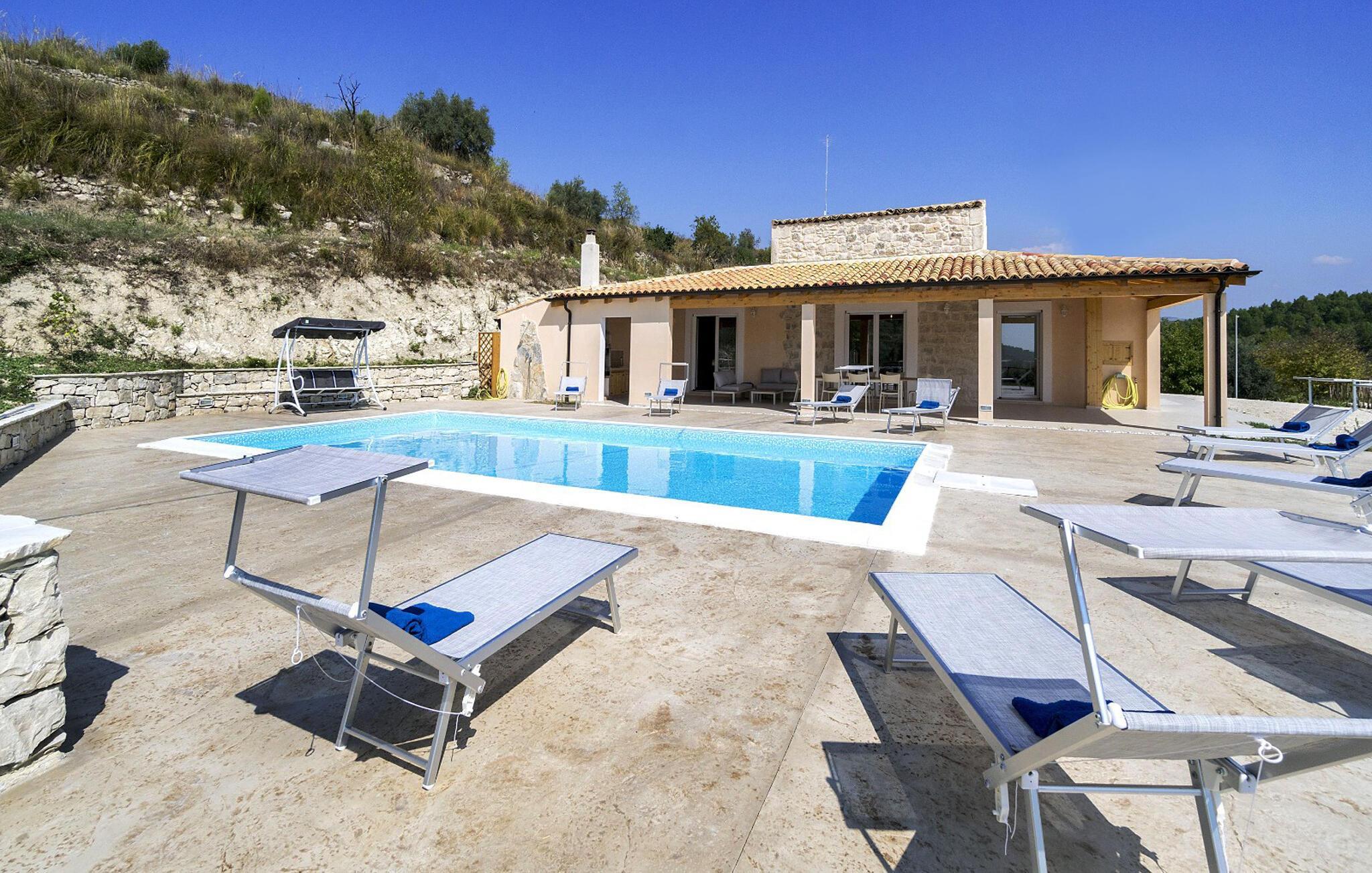 Tilbring en drømmeferie i dette rummelige feriehus med pool og panoramaudsigt over det omkringliggende landskab.