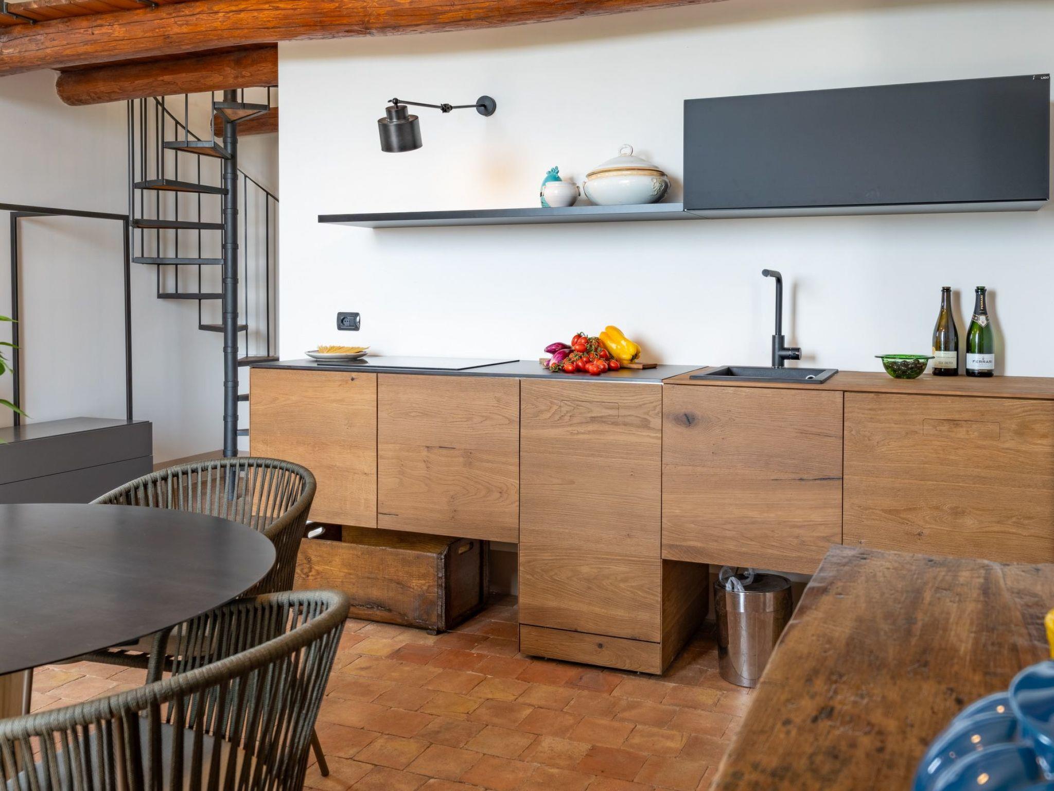 Kitchen: Perfectly equipped, the kitchen has a single bed and an open mezzanine with a French bed, ideal for accommodating additional guests or relaxing after a day of exploring.