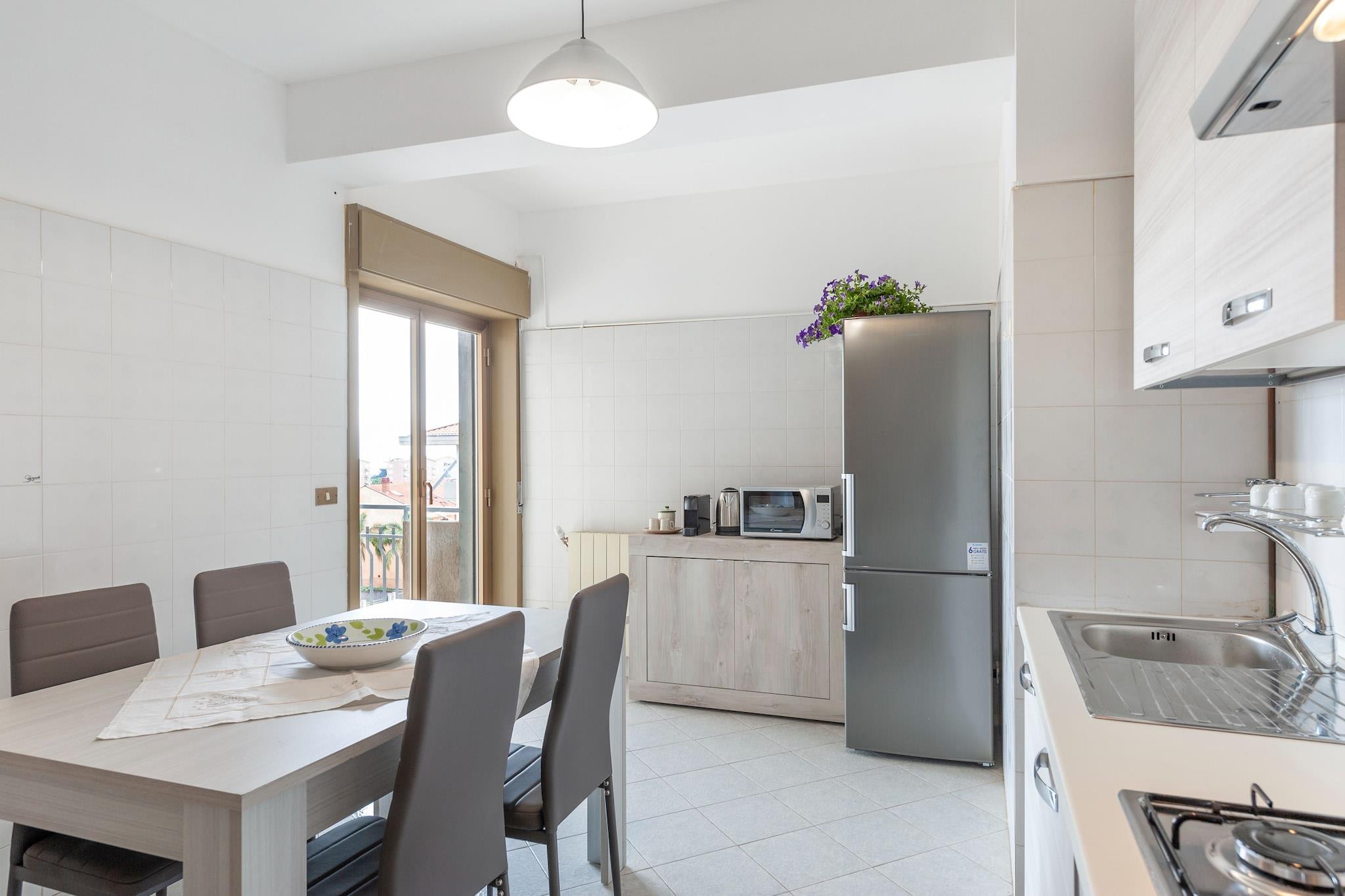 Denne lyse lejlighed med aircondition, beliggende på tredje sal, har en balkon med en fantastisk udsigt over Etna og havet, og er en fremragende indkvartering til en familieferie. Fra lejligheden kan du nemt nå havet for at tilbringe en afslappende dag, og det er også muligt at besøge nærliggende byer, såsom Catania, Acireale og Taormina. Boligen har en dejlig stue, 3 komfortable soveværelser og et køkken, som giver dig mulighed for at tilberede dine yndlingsretter. Nyd udsigten fra balkonen og slut dagen af med at slappe af med en drink efter eget valg. Lejligheden har en parkeringsplads Rig på kulturelle begivenheder og initiativer, men levende og vital hele året, nyder Giarre et vist turistomdømme både i sommermånederne, hvor det er begunstiget af klimaet og af nærheden til havet, og i juleperioden, hvor der er mellem kl. markeder, fester og jubilæet for den levende fødsel registrerer vigtige tilstrømninger af besøgende. Havet er kun 1 km væk med mulighed for en gratis strand eller strand - lido udstyret med parasoller, liggestole, restauranter. For elskere af mad- og vinspecialiteter er det muligt at besøge landsbyerne på Etnas skråninger fra Zafferana til Linguaglossa og også beundre de seneste lavastrømme For dem, der elsker kunst og kultur, er de vigtigste turiststeder inden for rækkevidde: Taormina 31 km, Giardini Naxos 23 km, Alcantara Gorges 34 km, Acireale 14 km, Catania 28 km, Messina 76 km, Syracuse 94 km