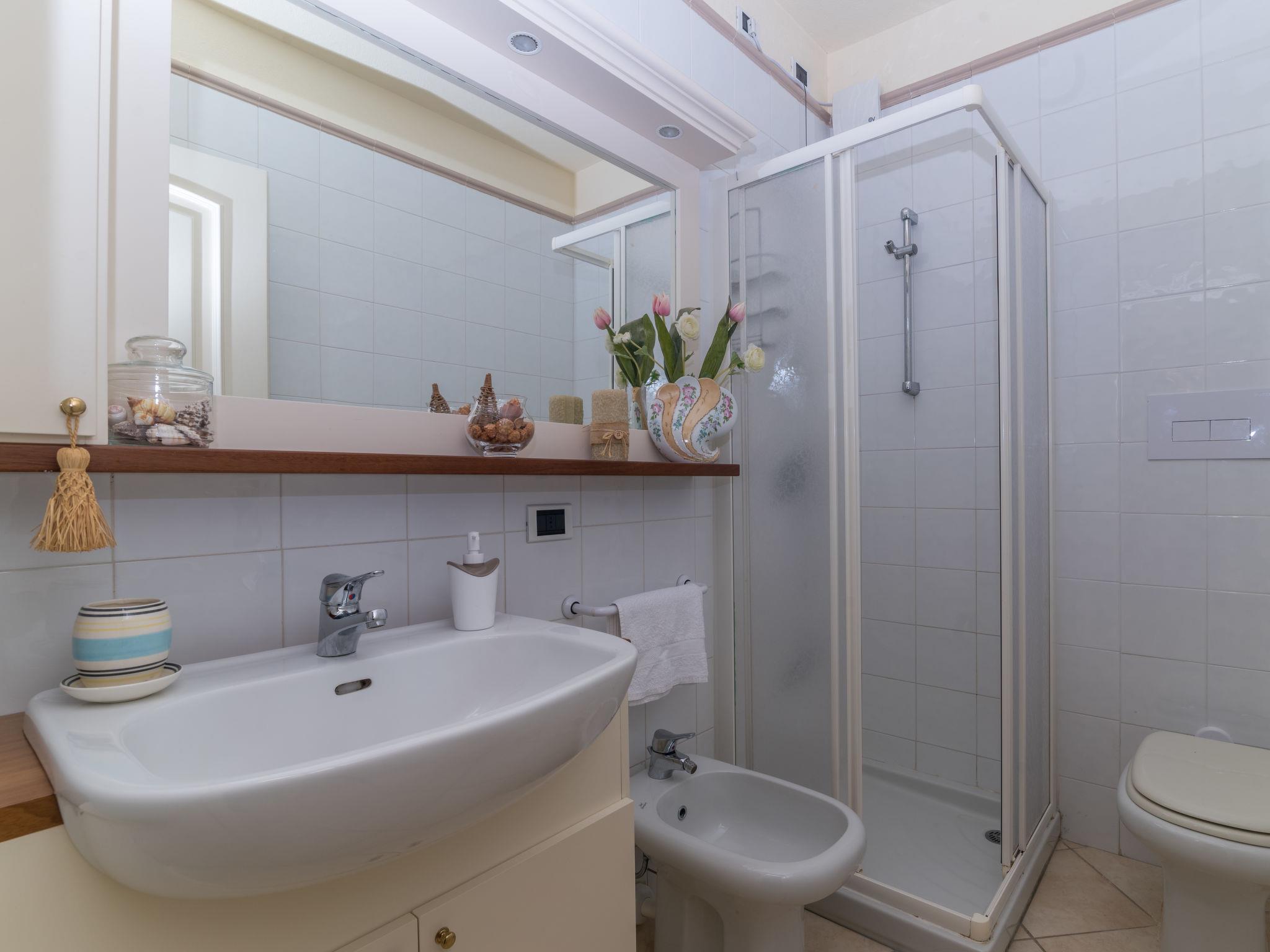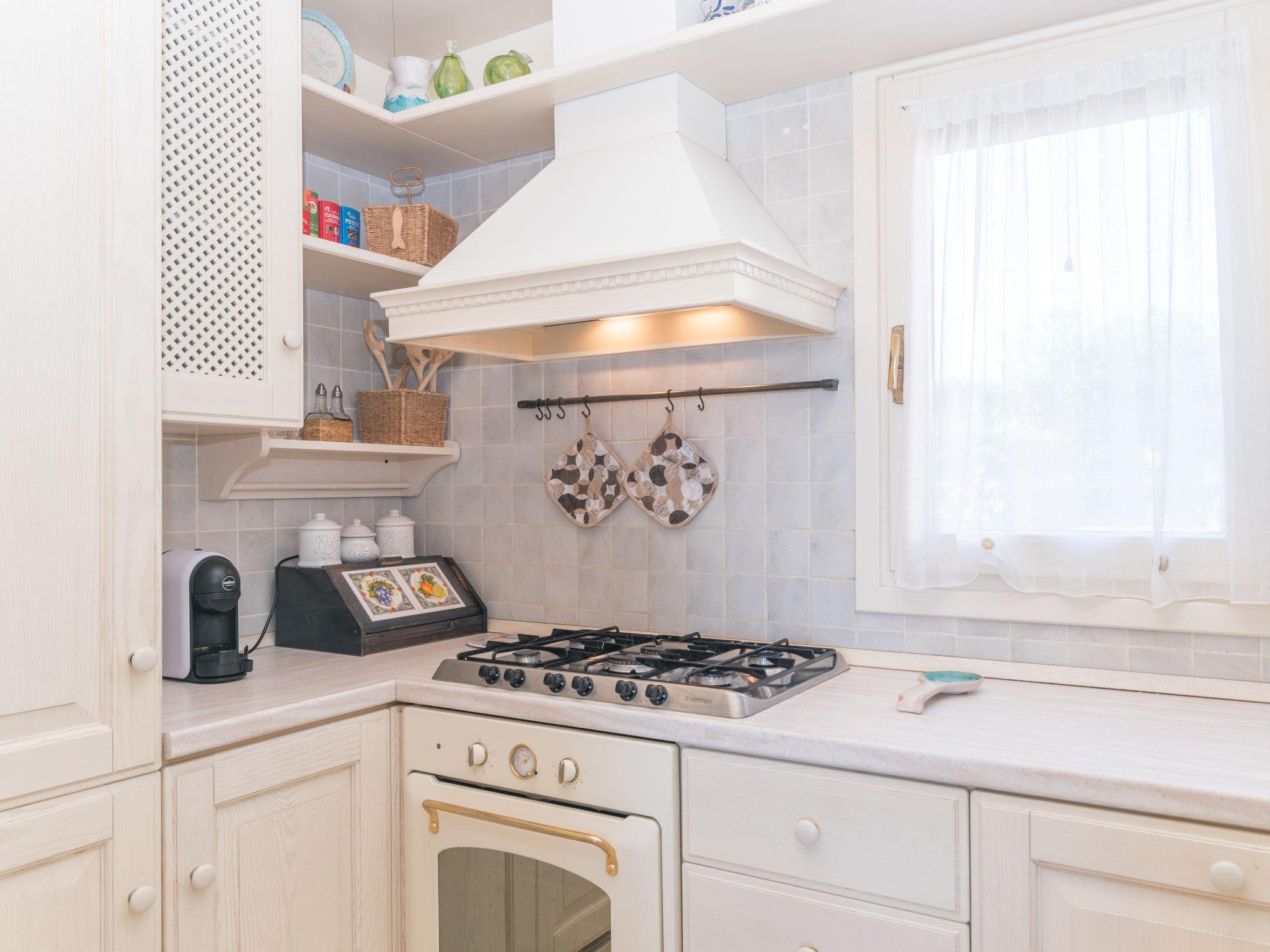 "Acacia", 3-room apartment 80 m2, on the ground floor. Bright, tasteful and cosy furnishings: large living/dining room with 1 bed and satellite TV. Exit to the terrace. 1 double bedroom. 1 room with 2 beds. Kitchen (oven, dishwasher, 4 gas rings, microwave, freezer). 2 showers/bidet/WC. Electric heating, air-conditioning (extra). Large terrace partly roofed, small garden, lawn. Terrace furniture. View of the sea and the countryside. Facilities: washing machine, iron, children's high chair, baby cot (extra), hair dryer. Maximum 1 pet/ dog allowed. IT090083B4000E2141